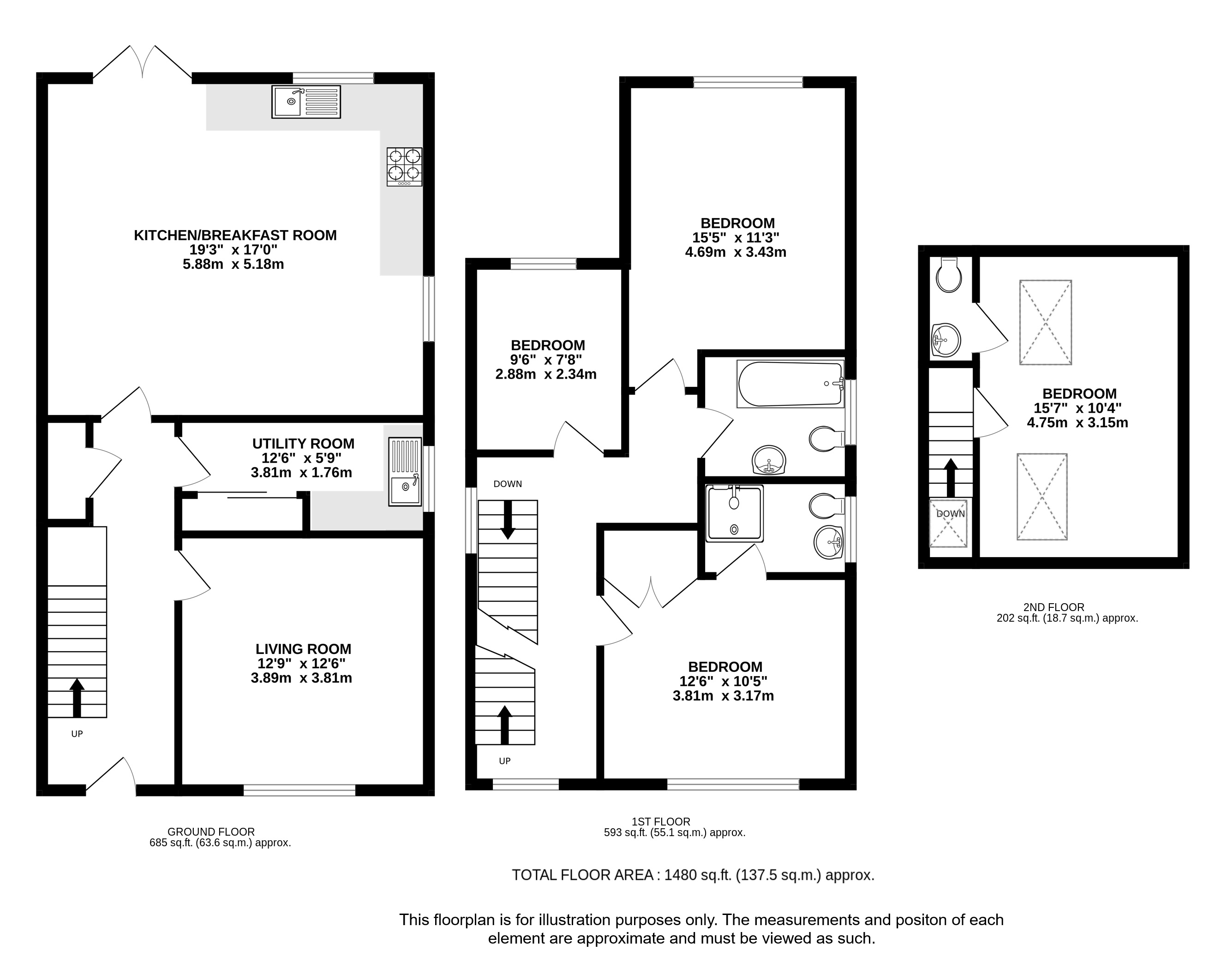 The ground floor also benefits from a separate utility room with a washer/dryer, additional sink, and ample storage cupboards throughout.