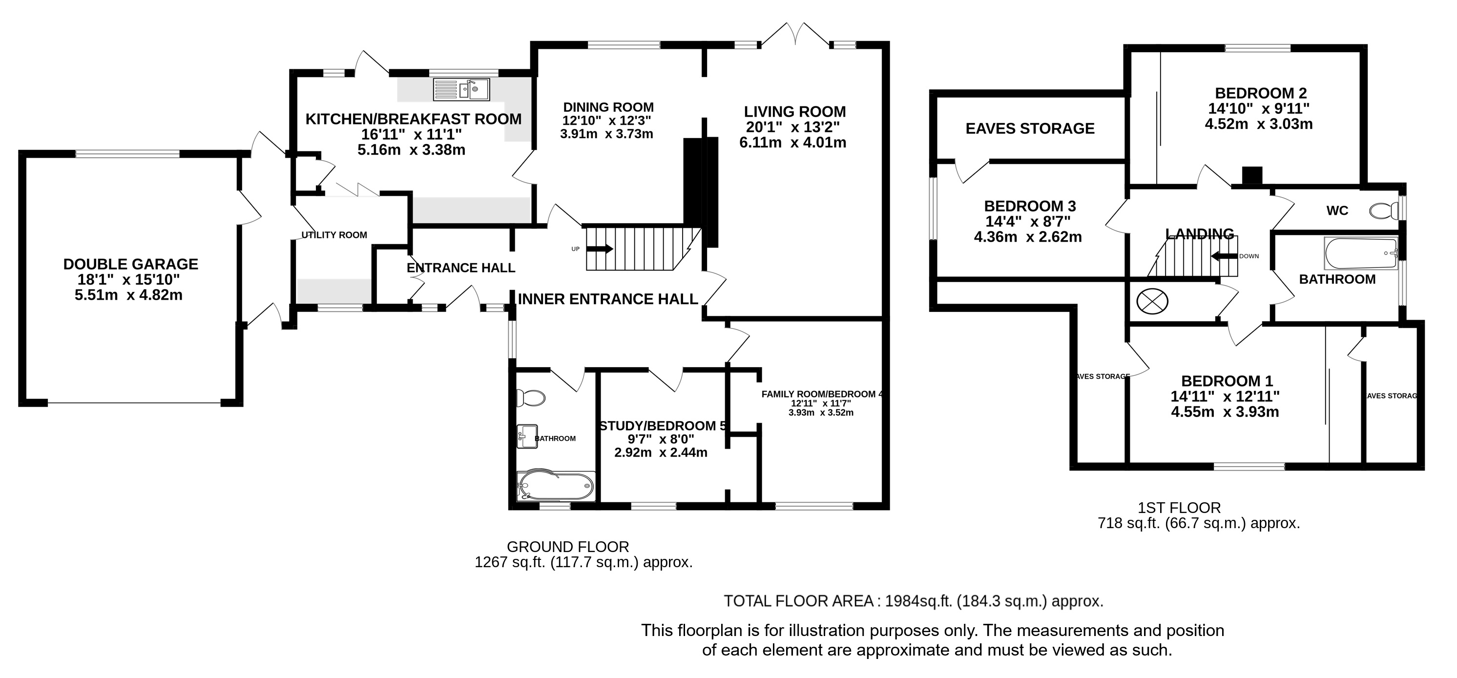 Downstairs there are two further spacious rooms which can be used as bedrooms and family bathroom.