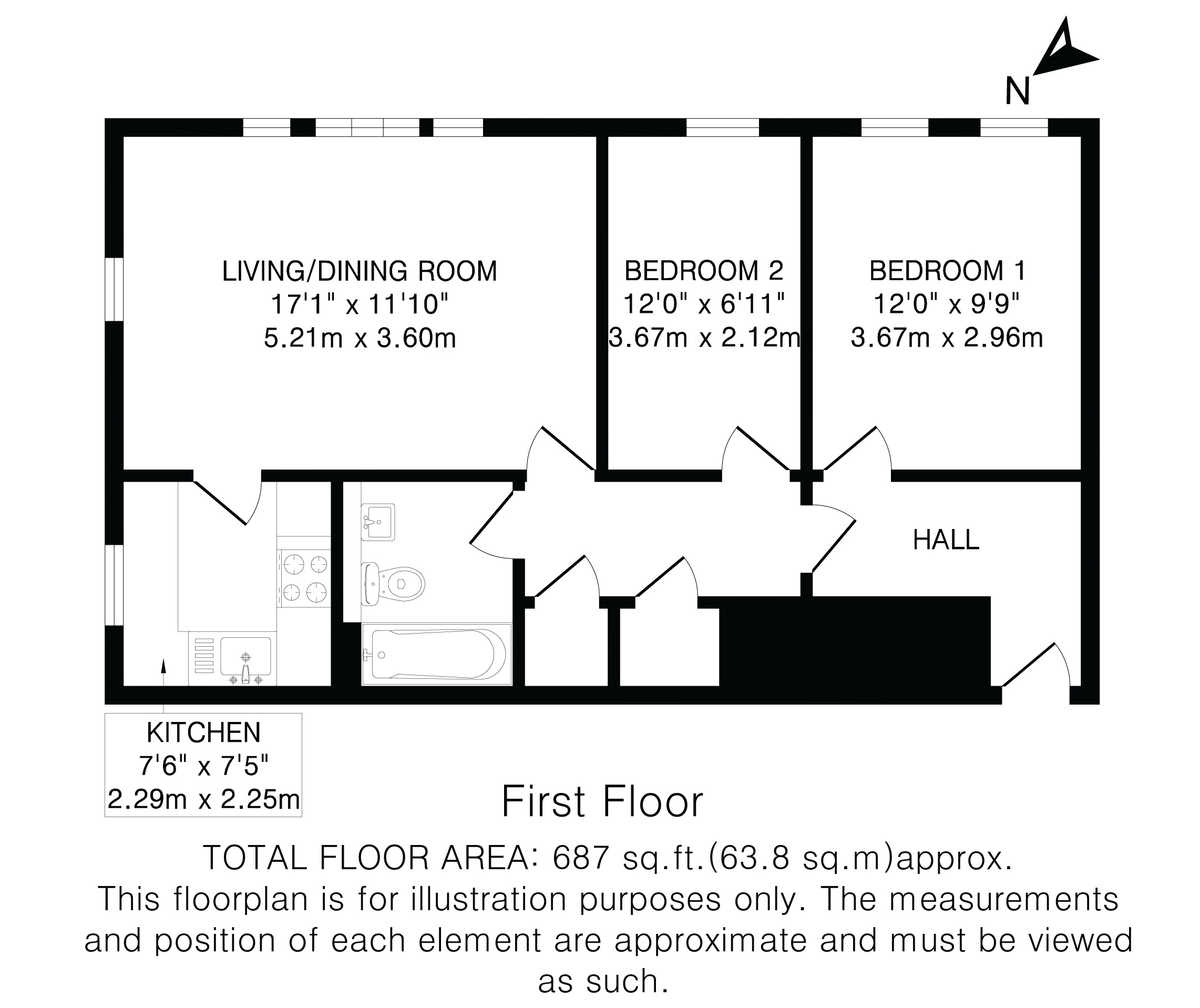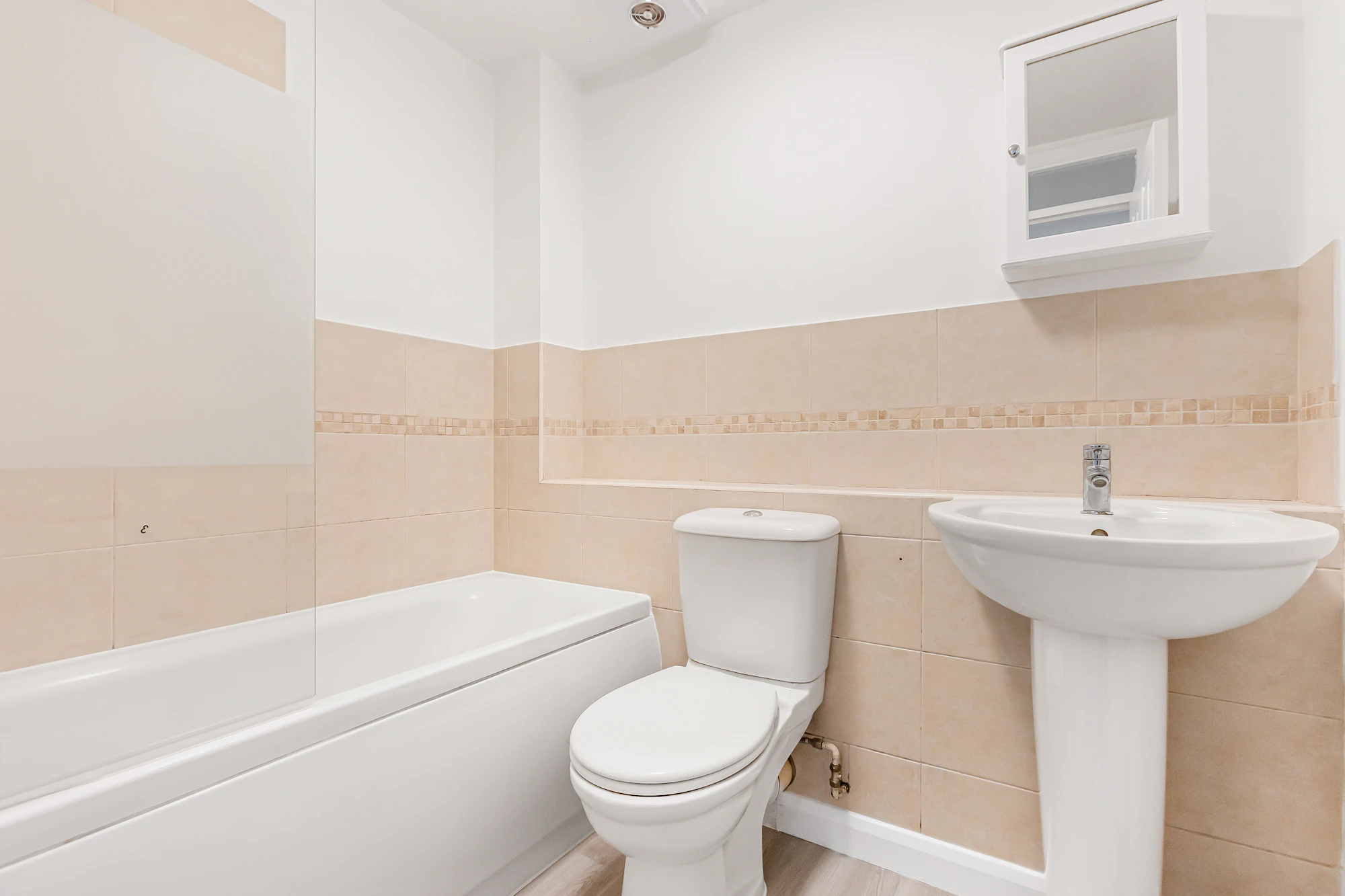 The apartment comprises of two bright and airy bedrooms, both carpeted, along with a family bathroom fitted with a bath and overhead shower.
