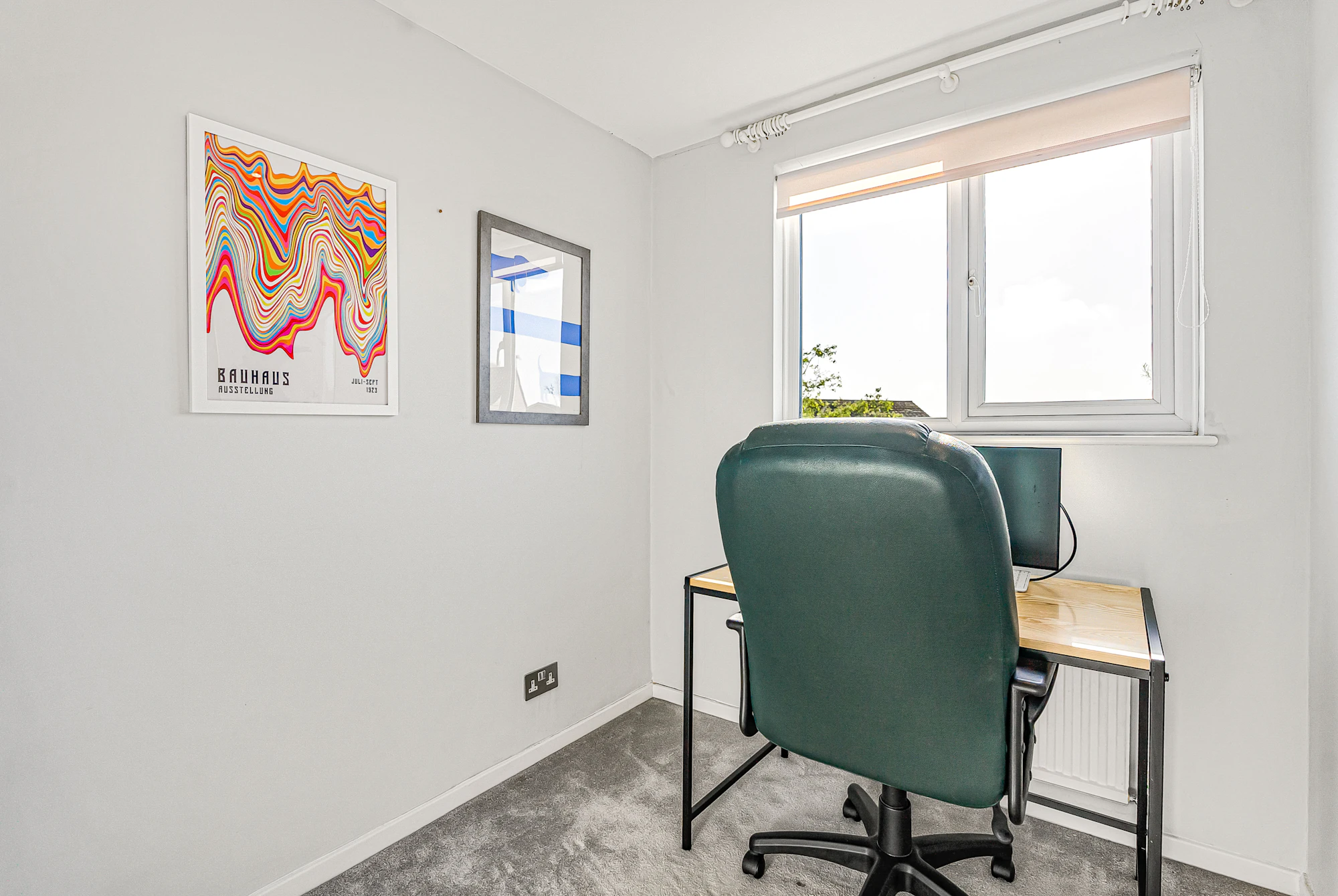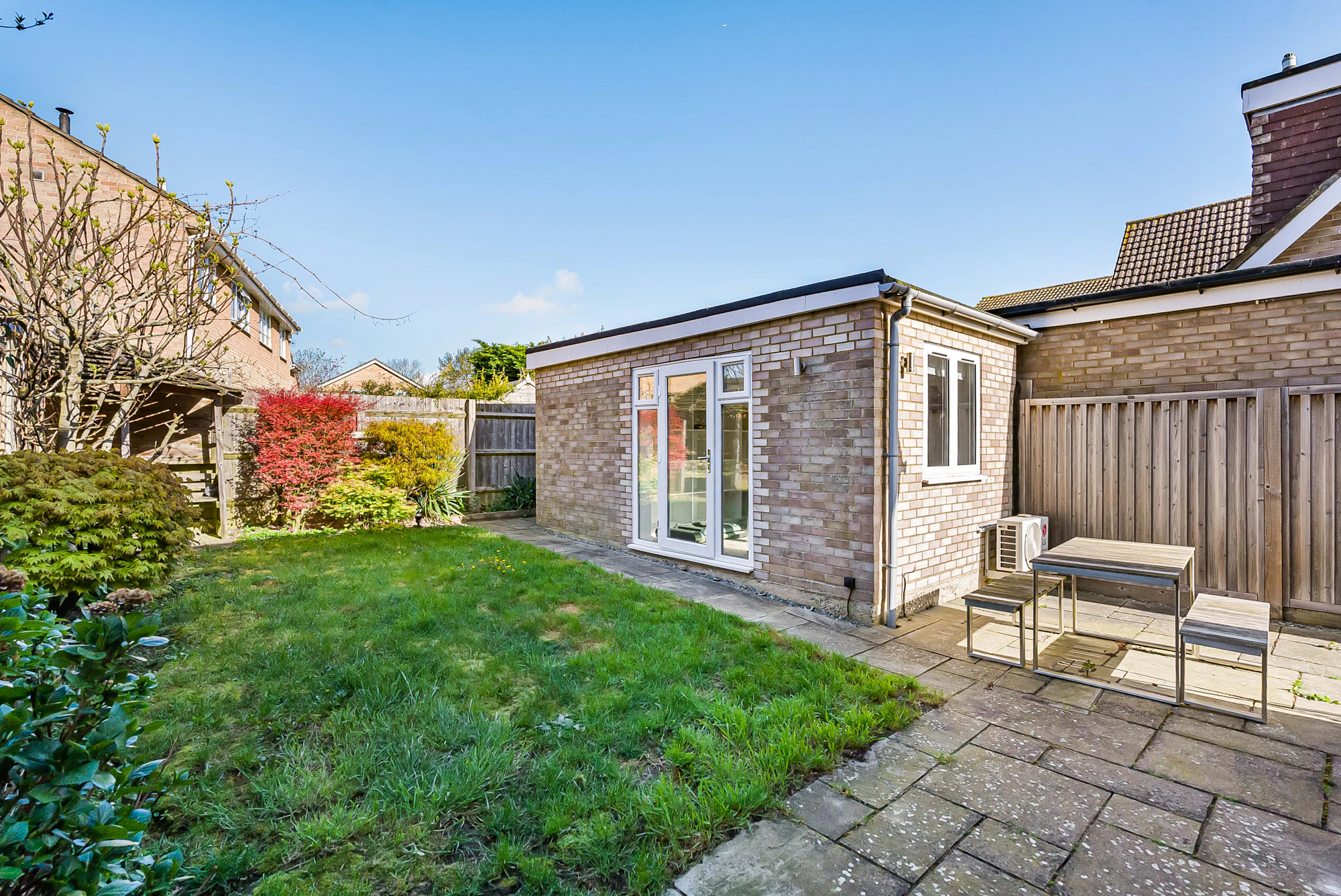 The property also benefits from a garden office, complete with electricity, heating, and air conditioning. To the rear, there is additional storage space, ideal for bikes.