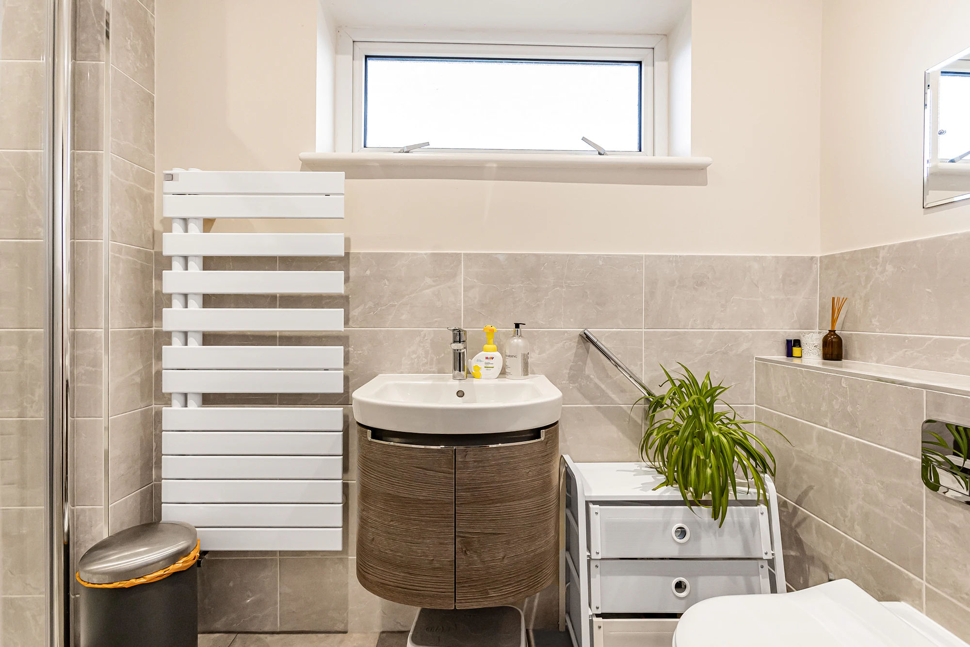 Upstairs, the property offers four well-proportioned bedrooms, all benefitting from fitted wardrobes. The principal bedroom enjoys views over the rear garden and features its own en suite. A family bathroom and ample storage cupboards complete the first floor.