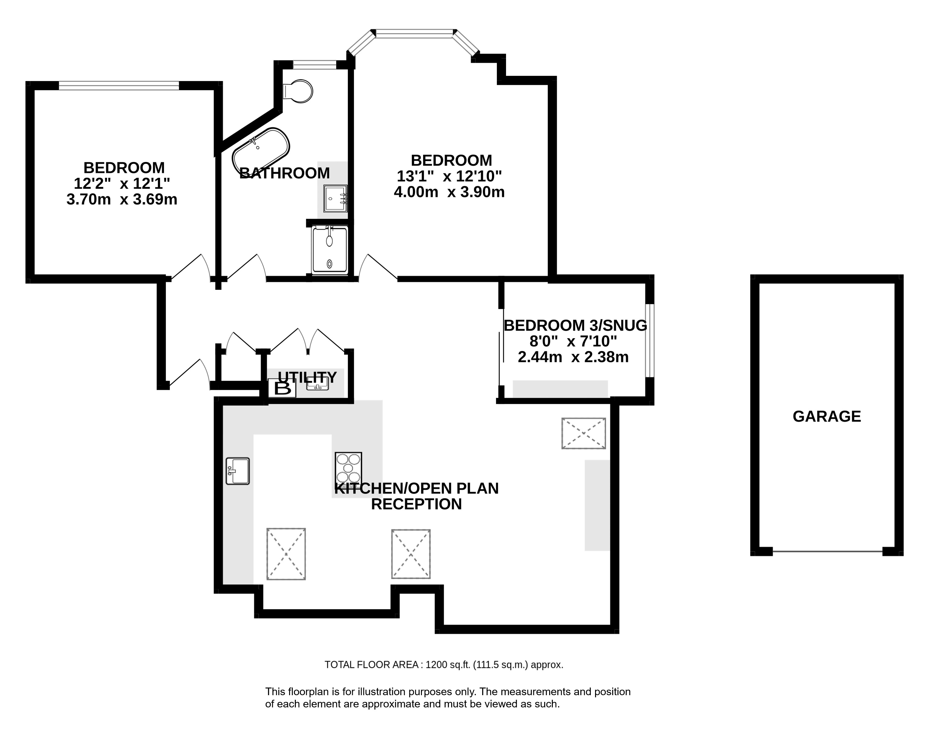 Additional features include a cleverly integrated utility cupboard, two well-proportioned bedrooms, and a sleek four-piece bathroom complete with a walk-in shower and freestanding bath bringing a touch of luxury.