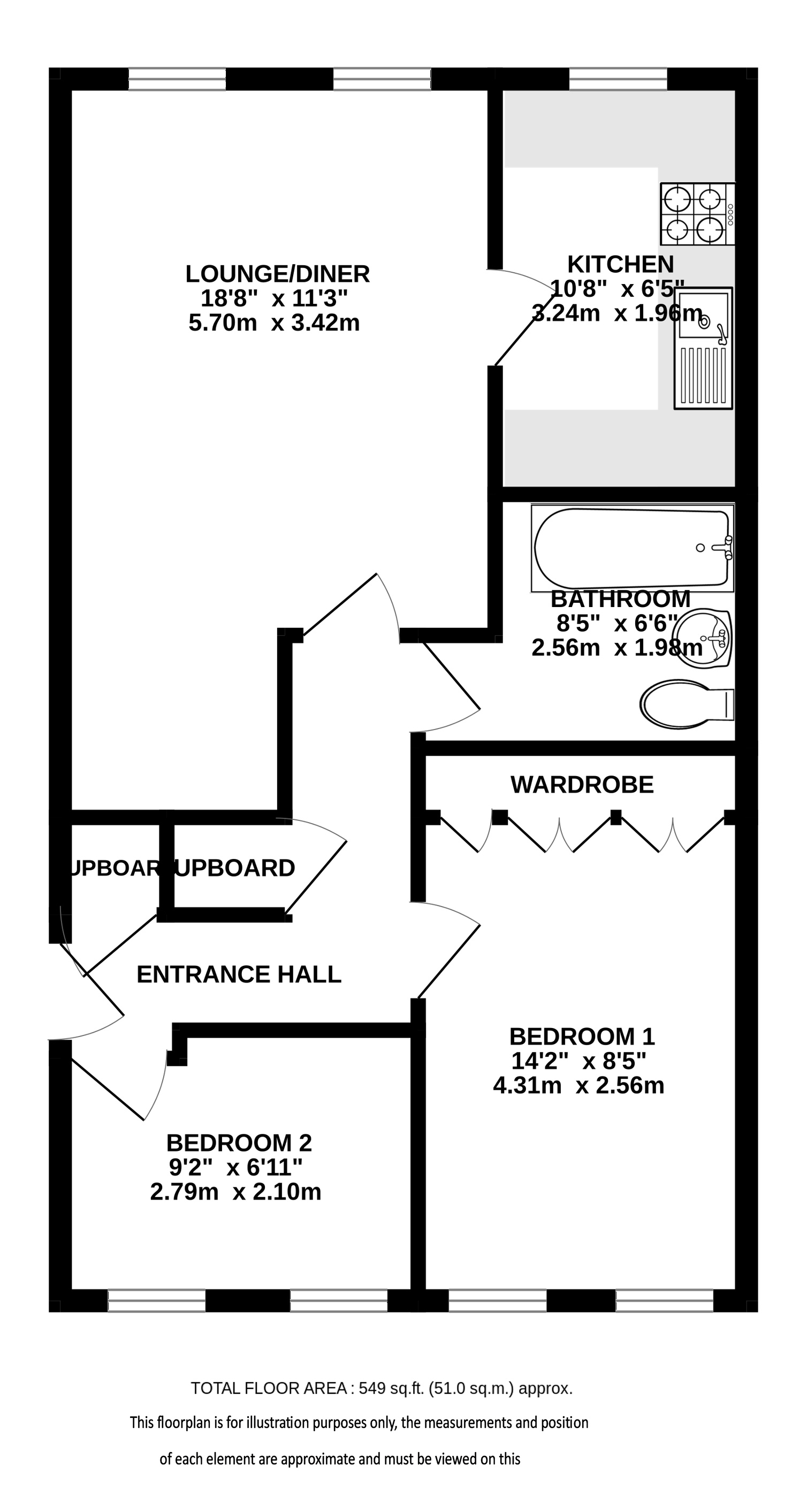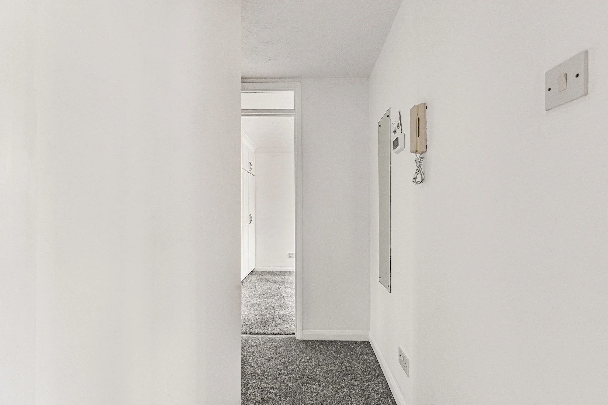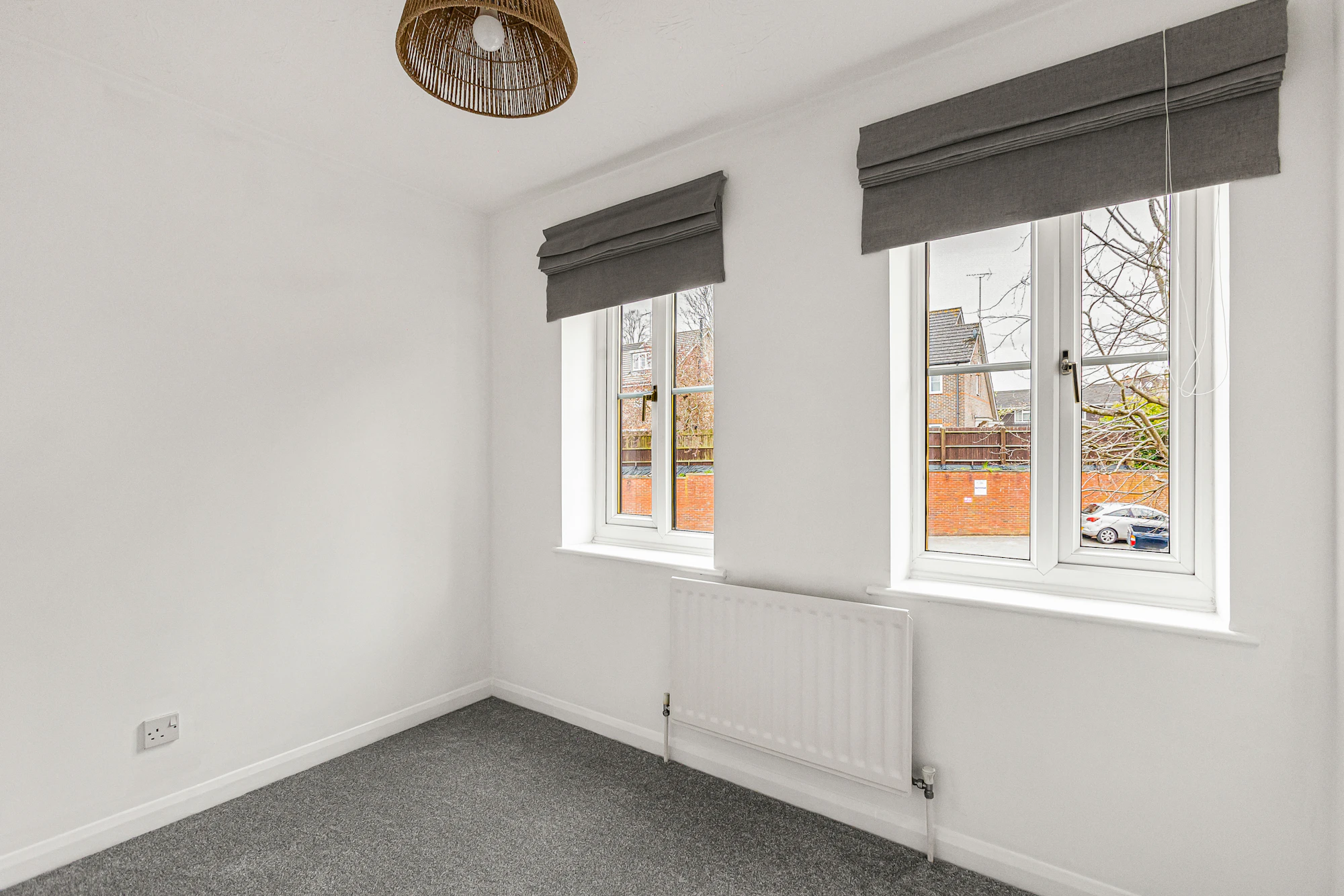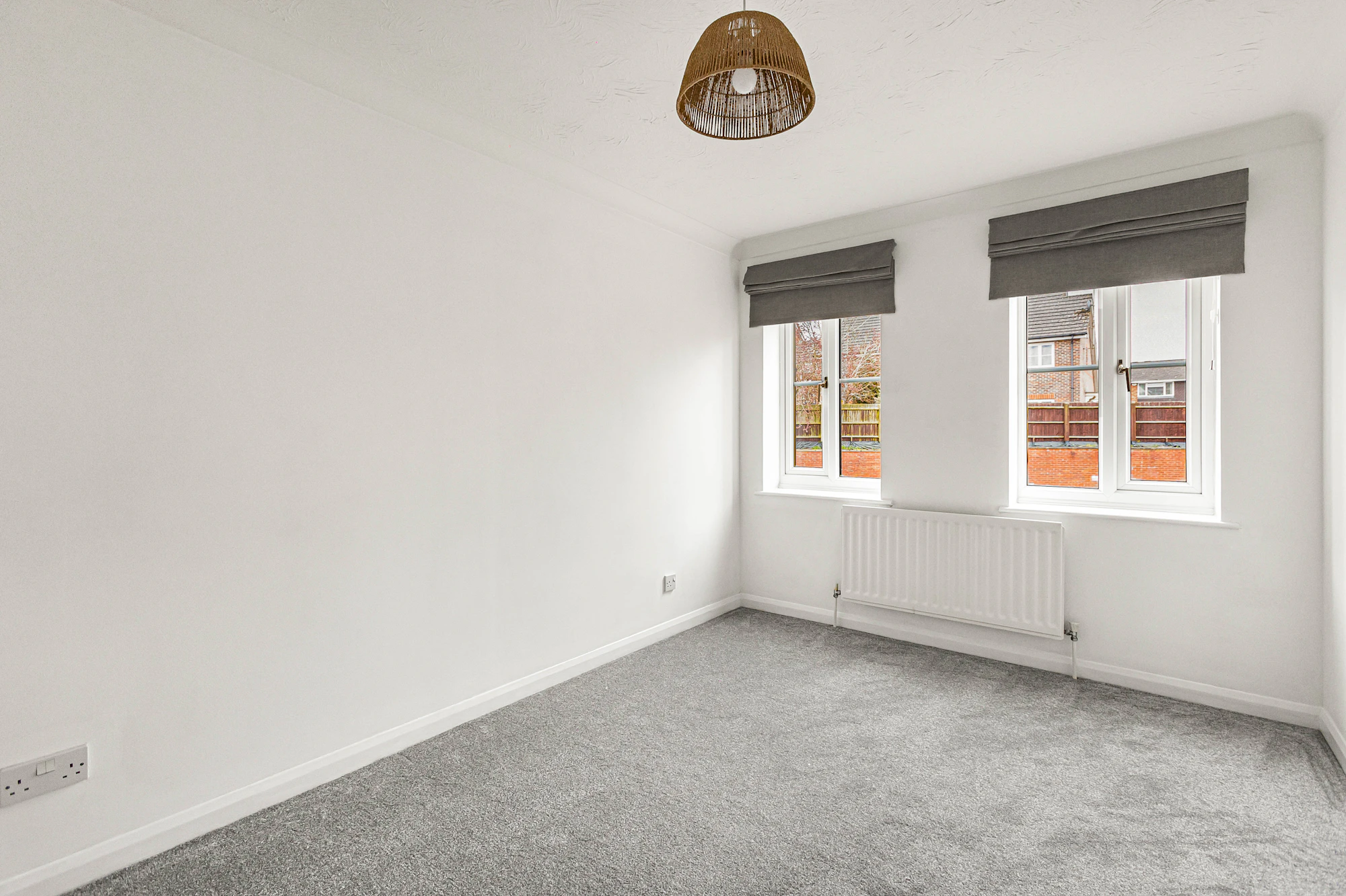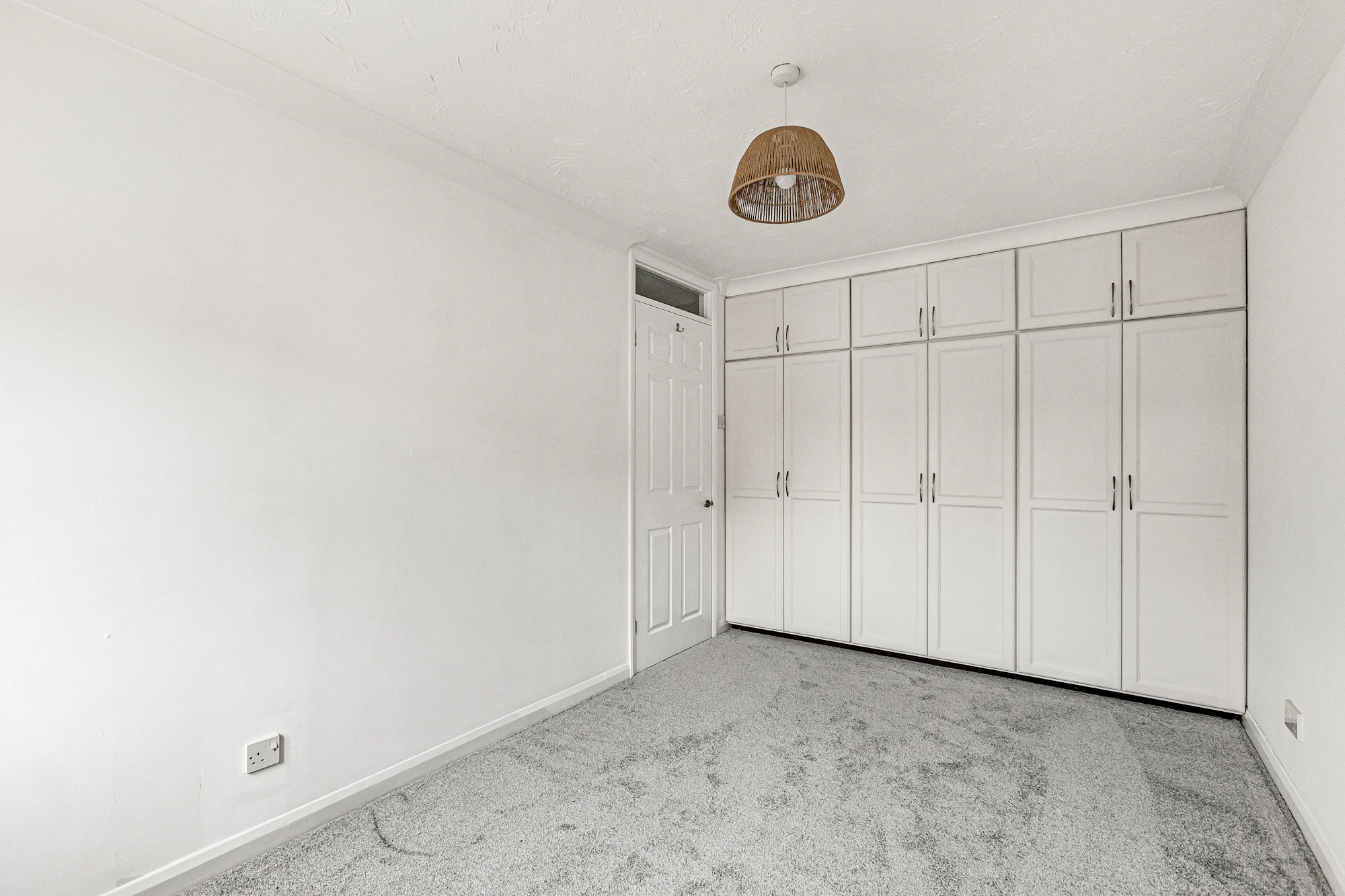 The main bedroom includes fitted wardrobes, complemented by a further good-sized single bedroom. The modern bathroom is equipped with a bath and overhead shower.