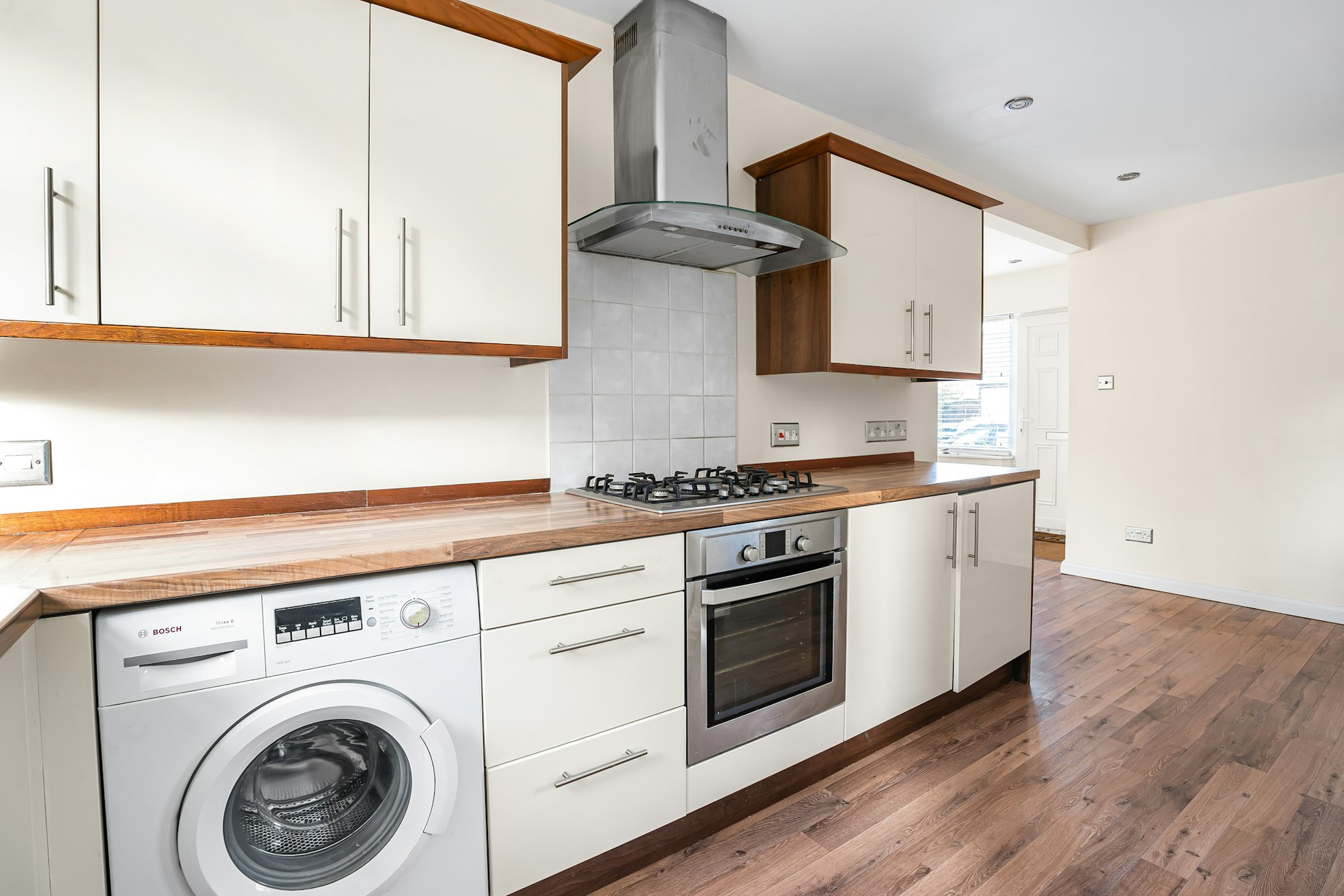 The ground floor features an open-plan reception and kitchen with wooden flooring, along with a modern kitchen/breakfast area offering a good range of units and appliances. The reception room opens onto a pretty garden via patio doors.