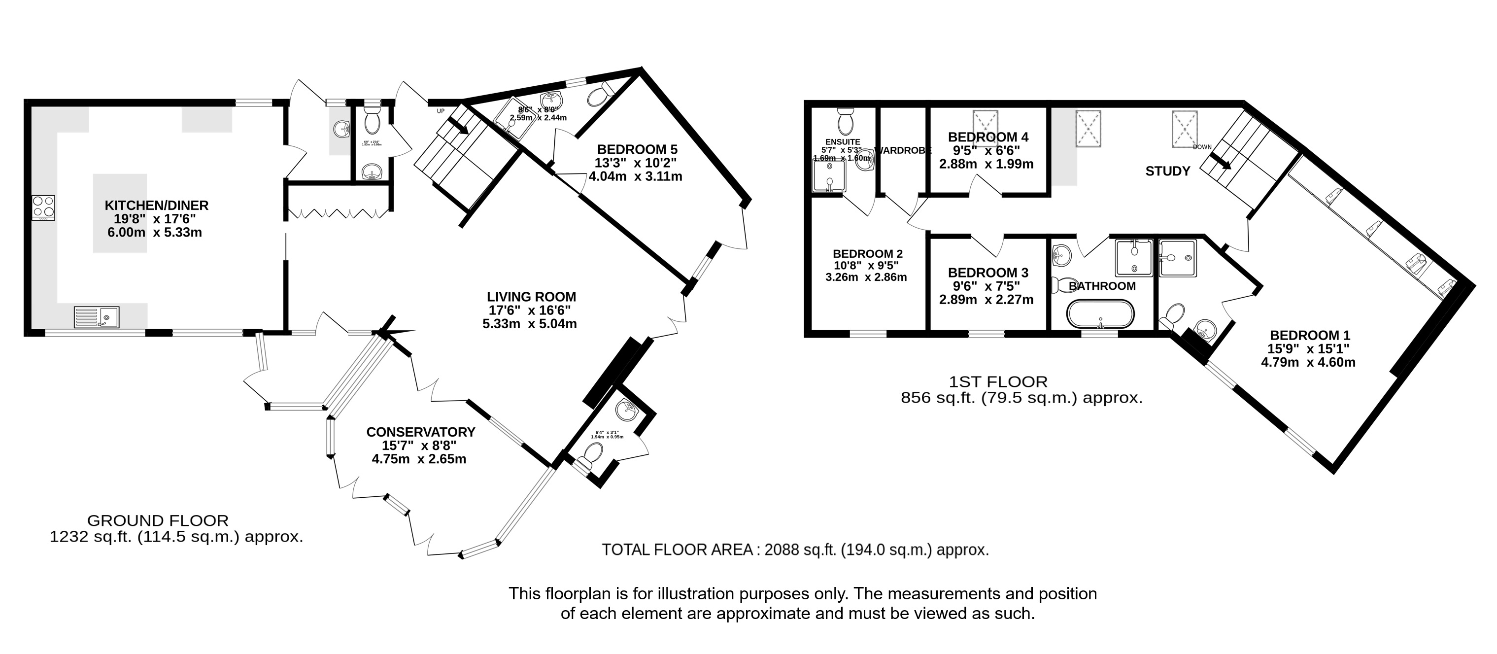 Upon entering the property, through the sizeable porch, there is a large welcoming hallway with ample storage cupboards for coats and shoes, which opens out into the spacious living room. From here there are patio doors both onto the south westerly garden and into the light filled conservatory. There is also a useful downstairs, fifth, bedroom with its own en-suite shower room. The real 'wow' factor of the property is undoubtedly the spectacular kitchen/dining room though, a wonderful light filled room, beautifully extended and finished by the current owners, with many built in appliances. From here there is also a utility room, with external access, and a cloakroom completing the downstairs.