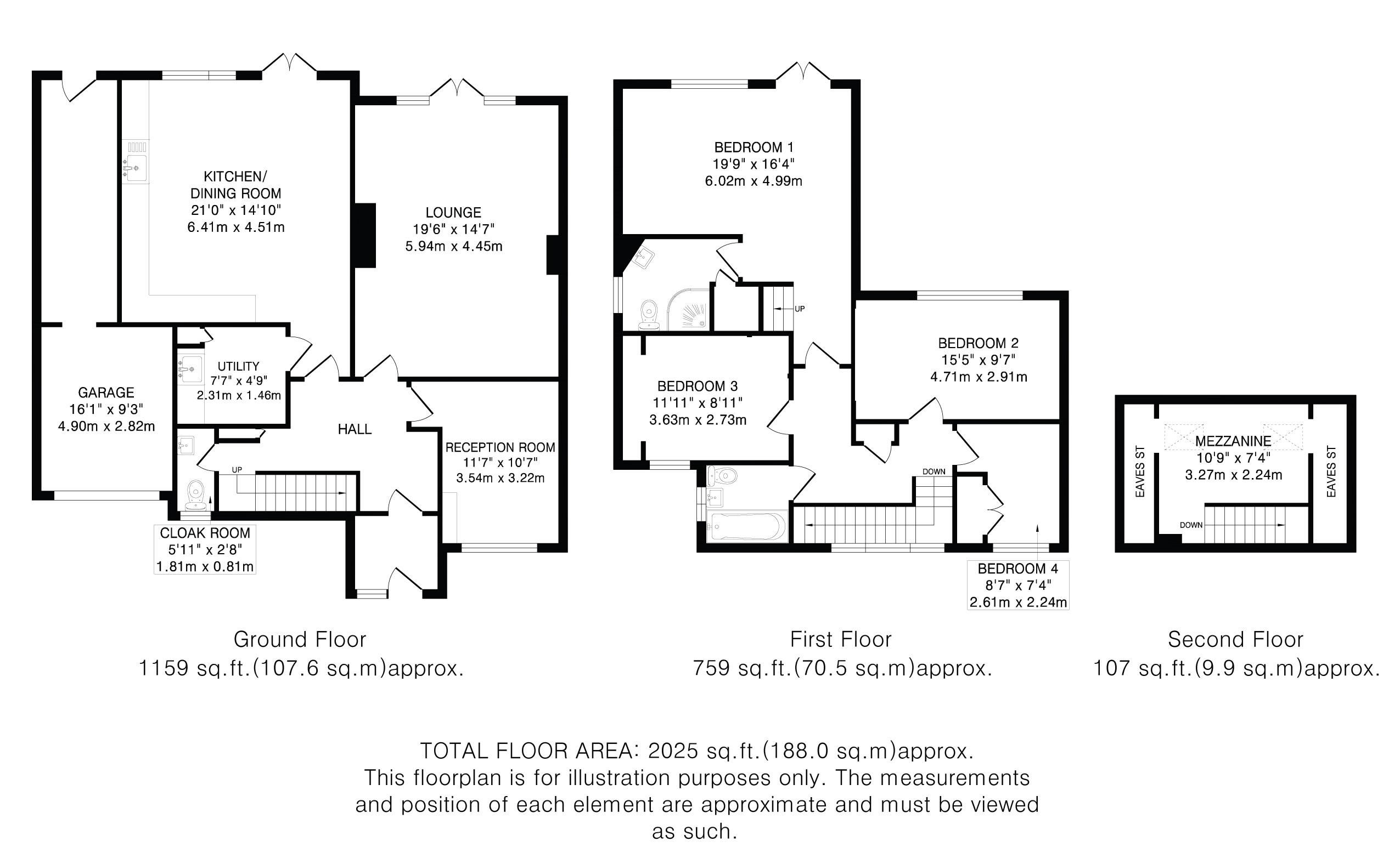 Upstairs, the property offers four bedrooms. The principal bedroom enjoys far-reaching countryside views and benefits from a useful mezzanine and a spacious en-suite. A separate family bathroom serves the remaining three bedrooms.