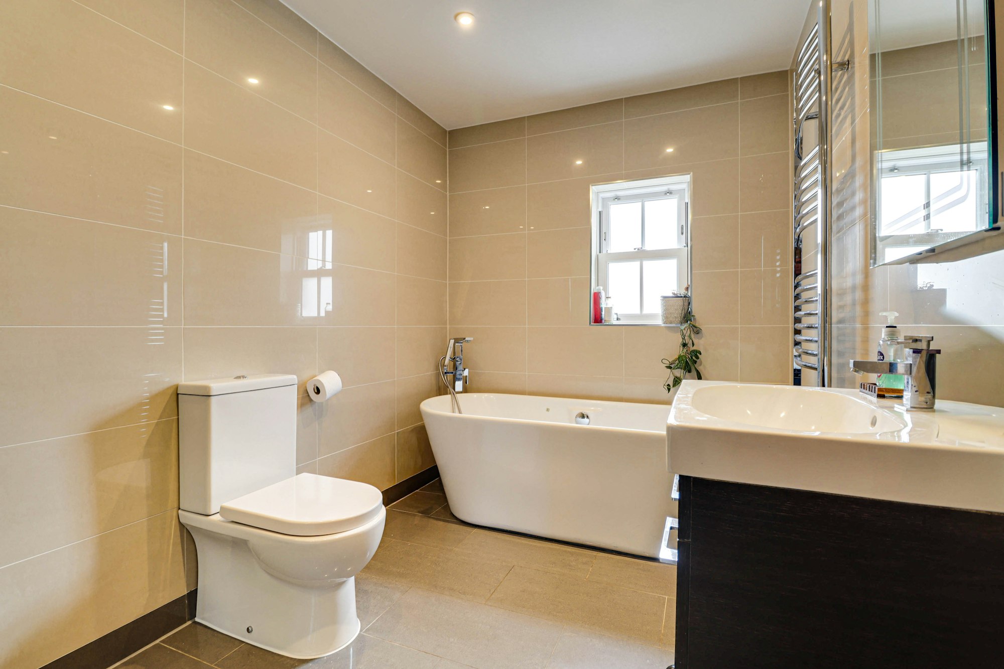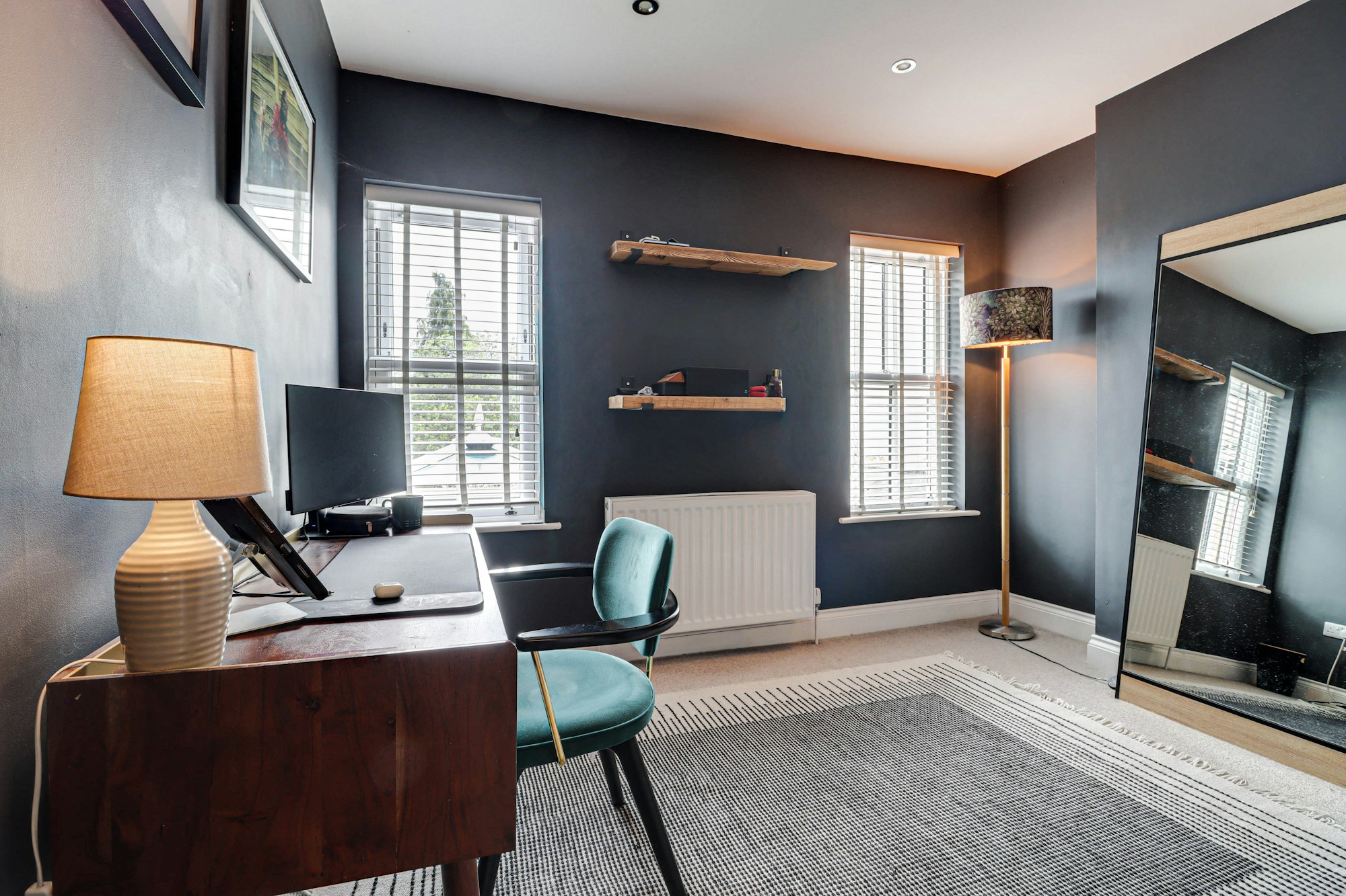 The first floor features two double bedrooms, one with an en suite shower room, complemented by a stylish family bathroom. The layout maximises space and light, offering a comfortable and functional arrangement for family members or guests.