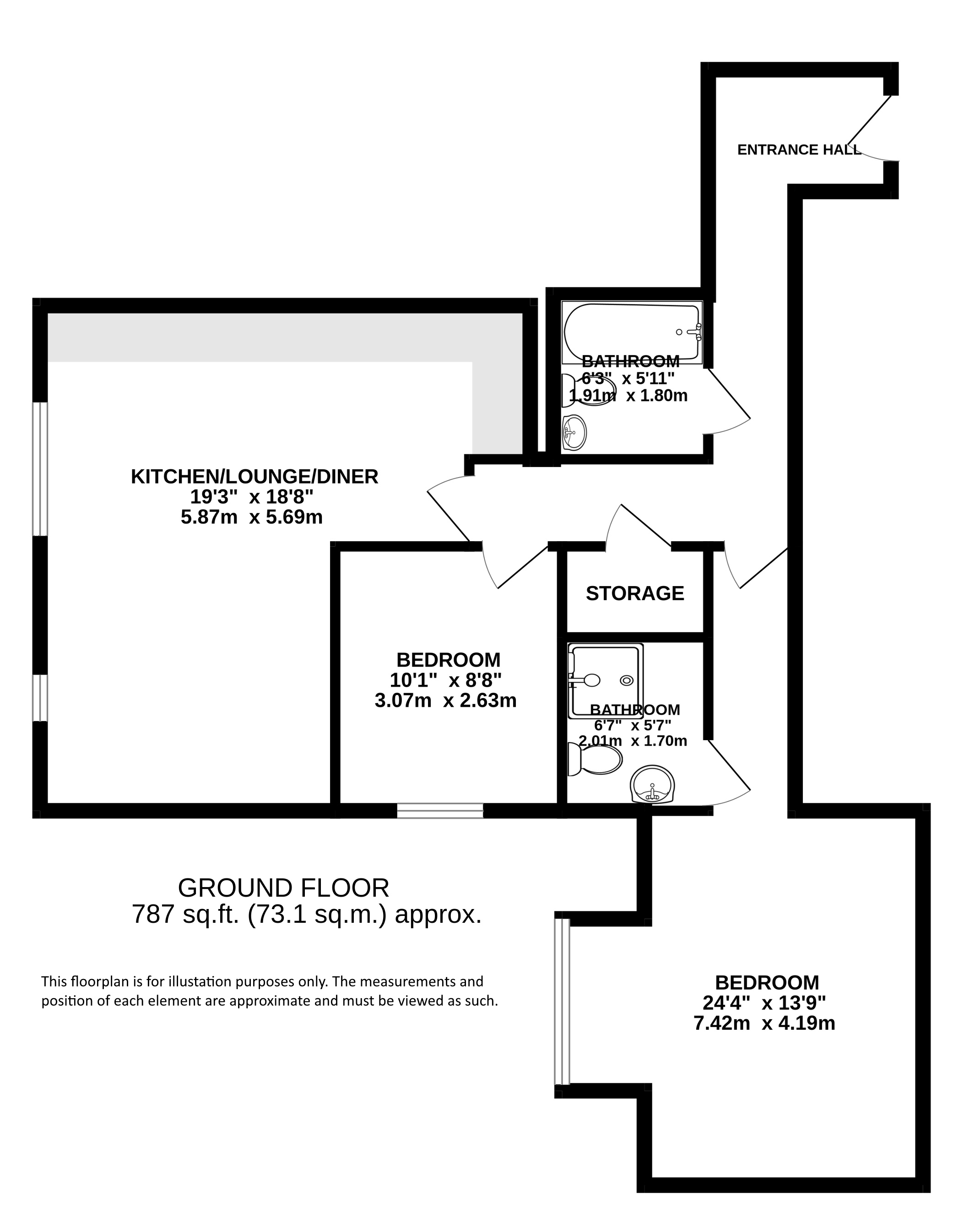 Accessible via a secure video entry system, operable by touchpad or key fob, the apartment is thoughtfully arranged around a generous entrance hall. The principal bedroom is spacious and bright, with ample storage and a contemporary en suite shower room. A well-proportioned second bedroom is served by a stylish family bathroom and there is a useful storage cupboard accessed via the hallway.