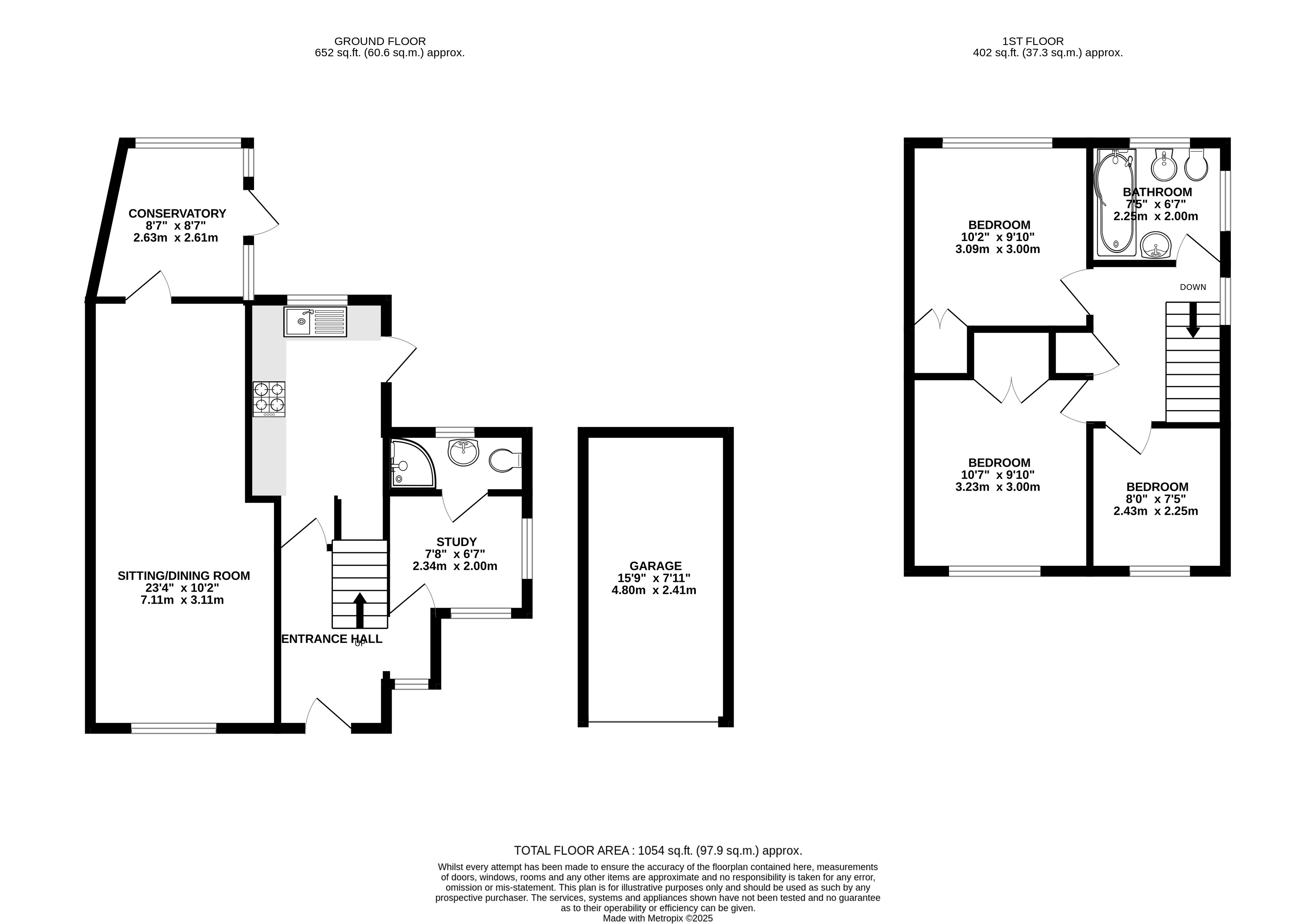 The ground floor is entered via a welcoming entrance hall with stairs rising to the first floor. From here, there is access to a useful study/home office and a downstairs bathroom, providing excellent practicality for home working or guest use. The main living accommodation is arranged as a spacious sitting/dining room, offering a bright and sociable space for everyday living and entertaining, and opening directly into the conservatory at the rear. The conservatory provides an additional reception space with views over the garden.