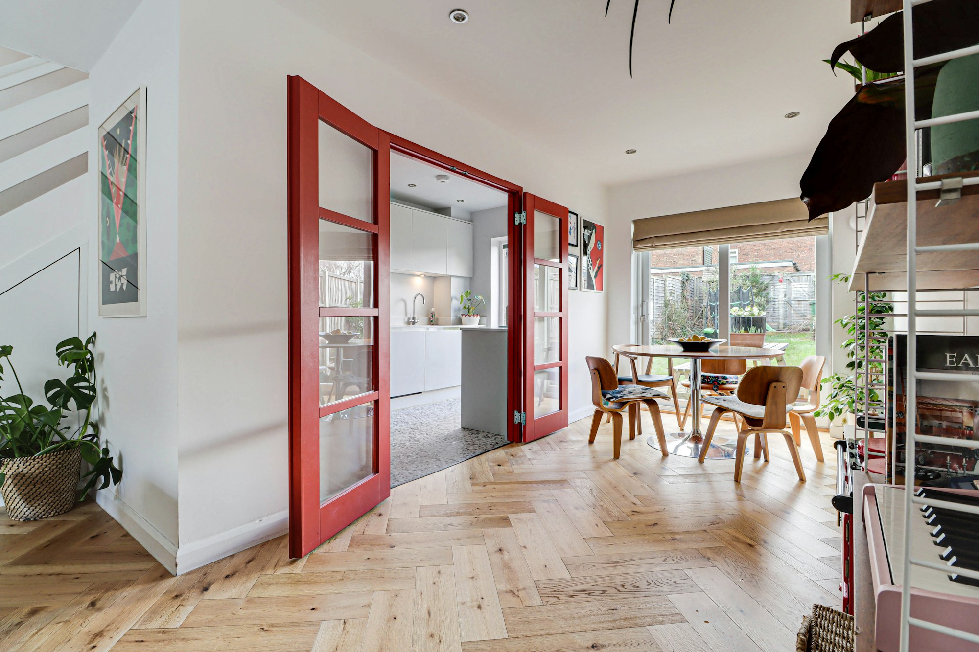 The current owners have meticulously refurbished the property to an exceptional standard, creating a stylish and contemporary home ready to move straight into. Upon entering, a generous hallway provides access to useful storage cupboards and a sleek downstairs WC. The ground floor offers wonderfully balanced living space, enhanced by stunning herringbone wood flooring and an abundance of natural light. The newly fitted kitchen, thoughtfully designed with modern cabinetry and quality finishes, flows seamlessly into the main living areas and out to the manicured rear garden — perfect for both everyday family living and entertaining.