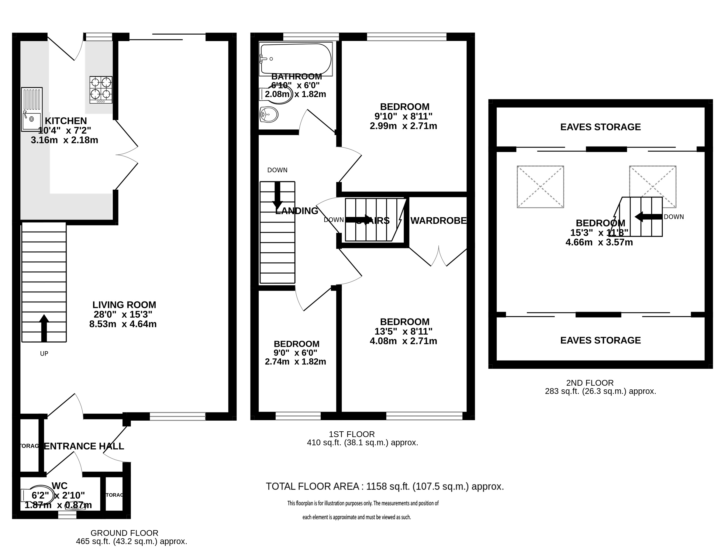 The upper floors comprise four well-proportioned bedrooms, including an impressive loft conversion which creates a generous fourth bedroom complete with useful eaves storage. The family bathroom suite has been refitted to a high specification, featuring a clean, elegant finish.