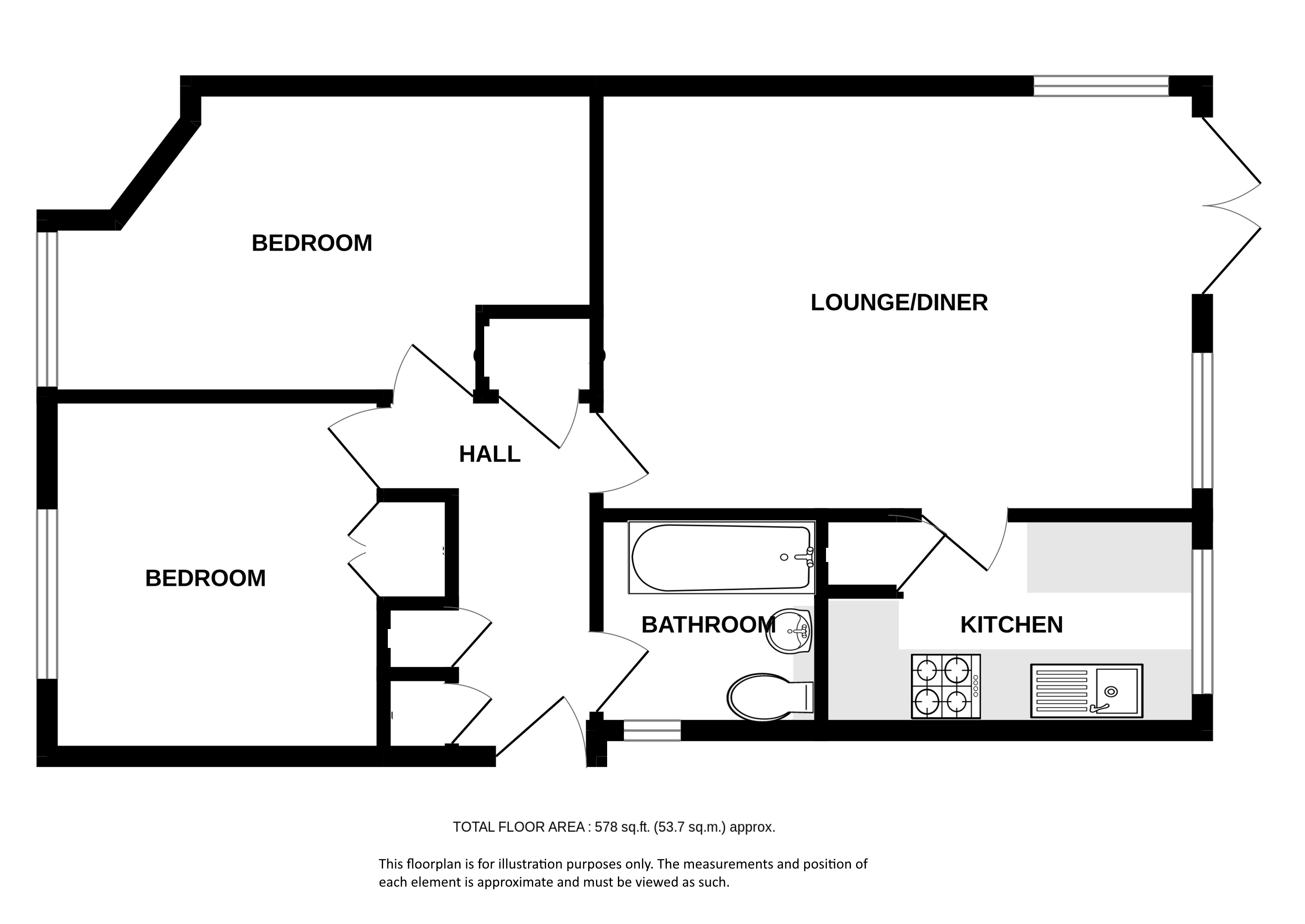 Accessed via an external staircase, the property offers generous accommodation comprising a spacious lounge/dining room, separate kitchen, two double bedrooms, and a family bathroom. While the property requires some modernisation, it presents a fantastic blank canvas for anyone looking to personalise their home.