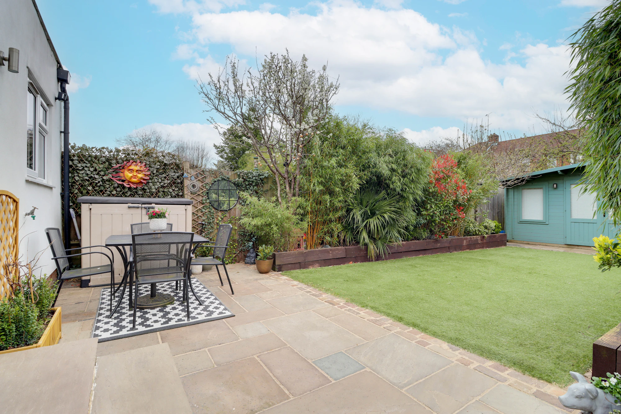 Externally, the property benefits from a thoughtfully landscaped rear garden, complete with a patio seating area, raised planting beds, a low-maintenance artificial lawn, and a newly installed garden studio/home office.