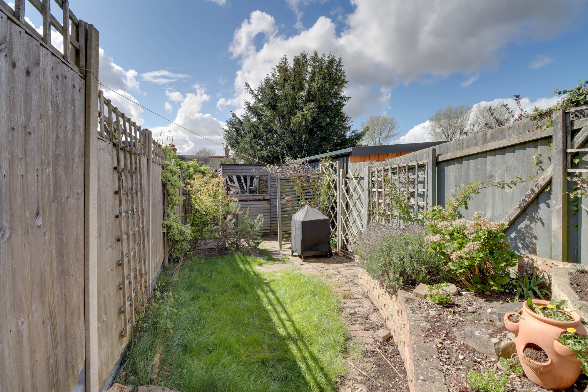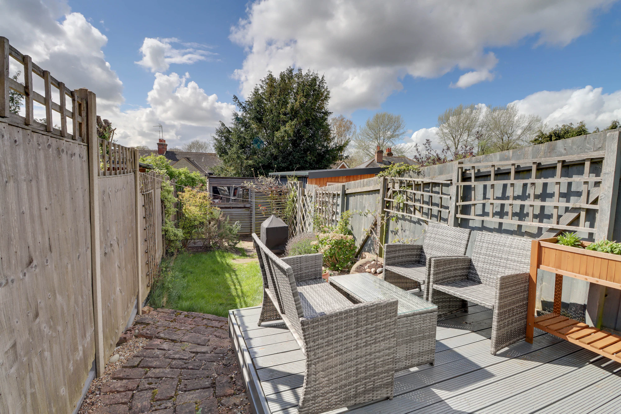 To the front, the cottage benefits from an attractive raised bed garden. The rear garden is private and thoughtfully landscaped, featuring a mix of rockery, lawn, and well-stocked flower beds, along with a paved patio area perfect for entertaining. With a desirable south-west aspect and useful rear access, the garden is both practical and inviting.