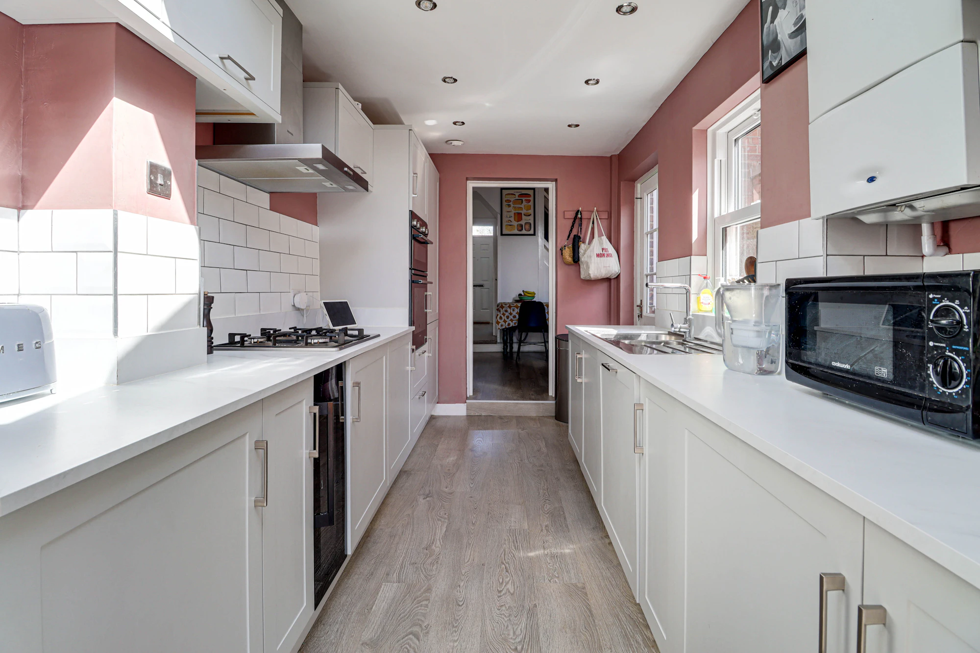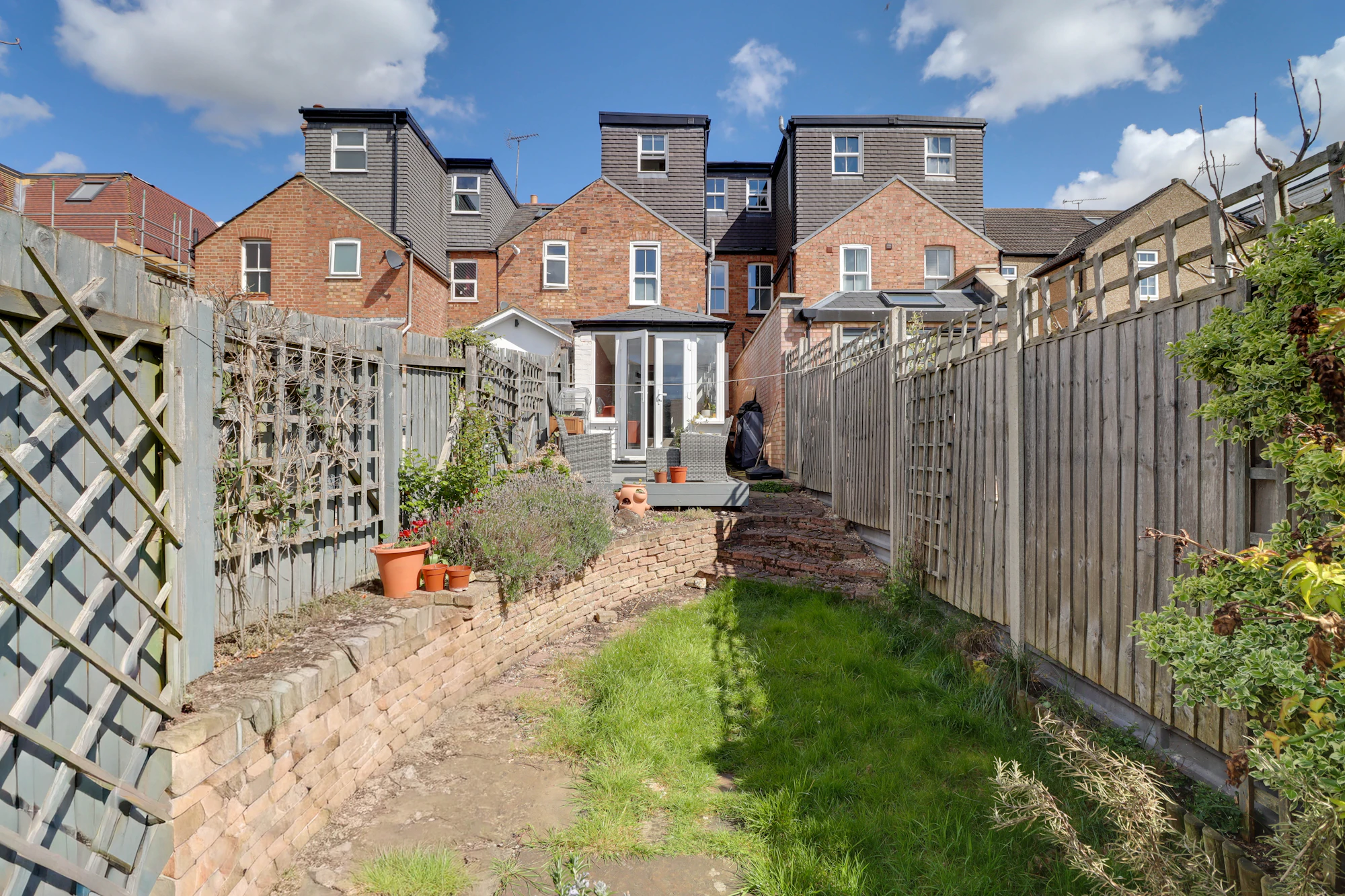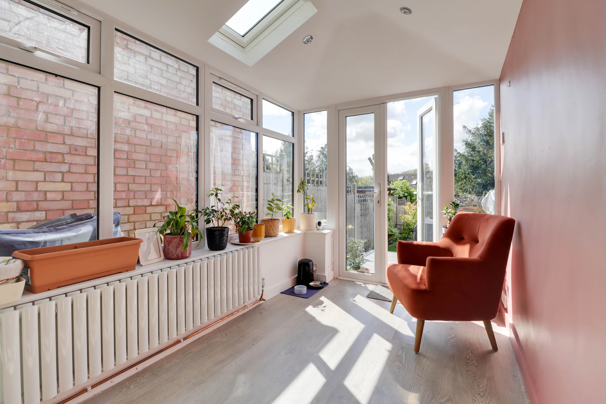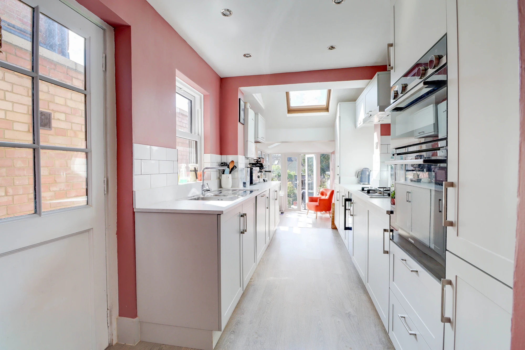 The kitchen is light-filled and well-appointed, offering ample storage and high-quality integrated appliances and flows seamlessly into a bright and versatile conservatory, where French doors open onto a terrace, ideal for outdoor dining and entertaining.