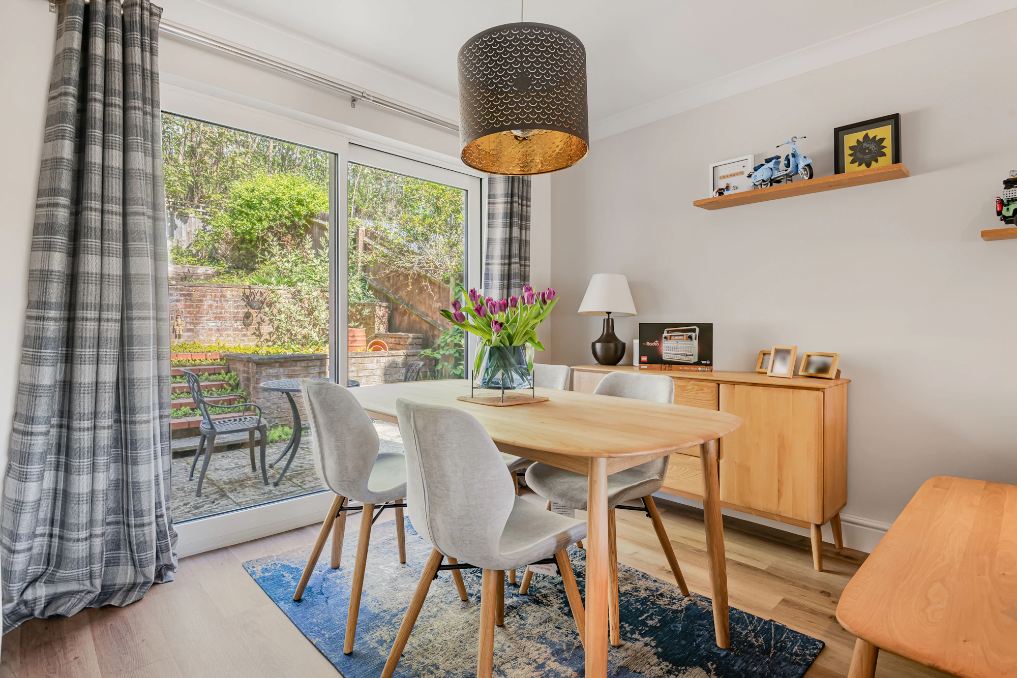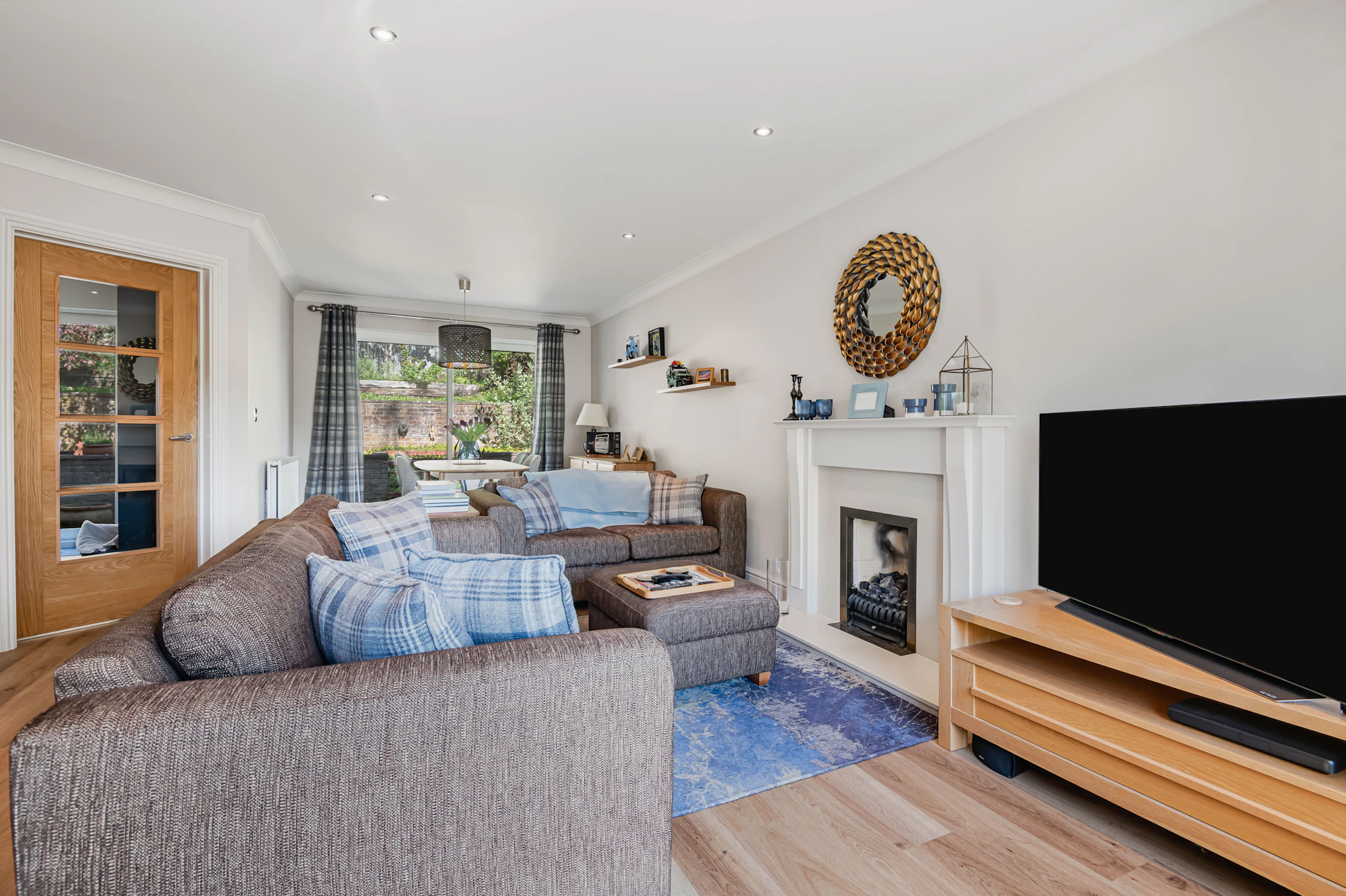 Downstairs is a large double aspect lounge/dining room with Invictus oak vinyl flooring, flame affect gas fire with ornamental surround and sliding patio doors to the rear garden.