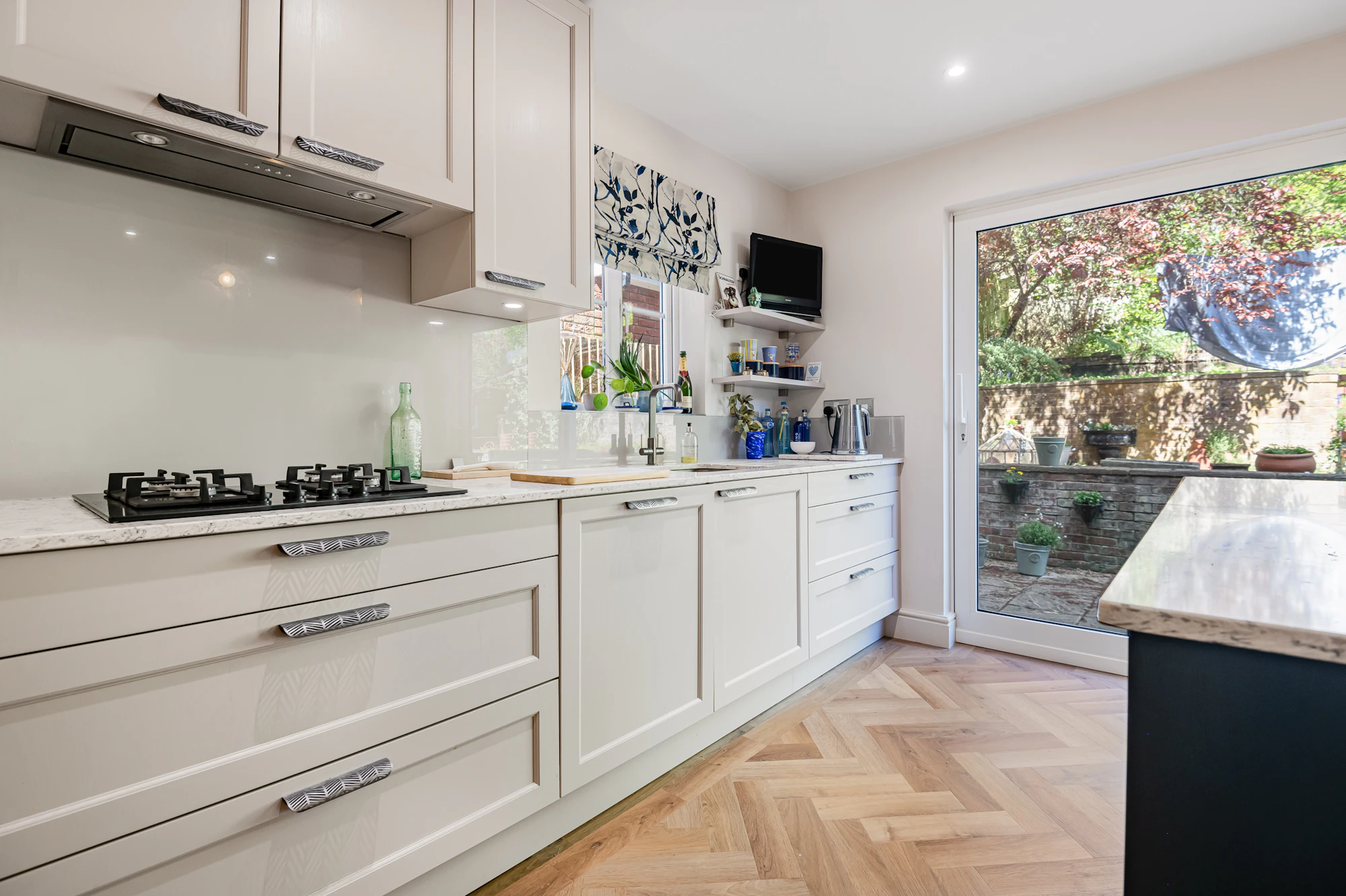 The fully fitted kitchen has sliding patio doors to the garden and a range of wall mounted and base storage cupboards, incorporating a number of built in appliances to include a fridge/freezer, four burner gas hob and extractor fan, eye level fan assisted oven, dishwasher and central island unit/breakfast bar. To complete the ground floor there is a utility/cloakroom.