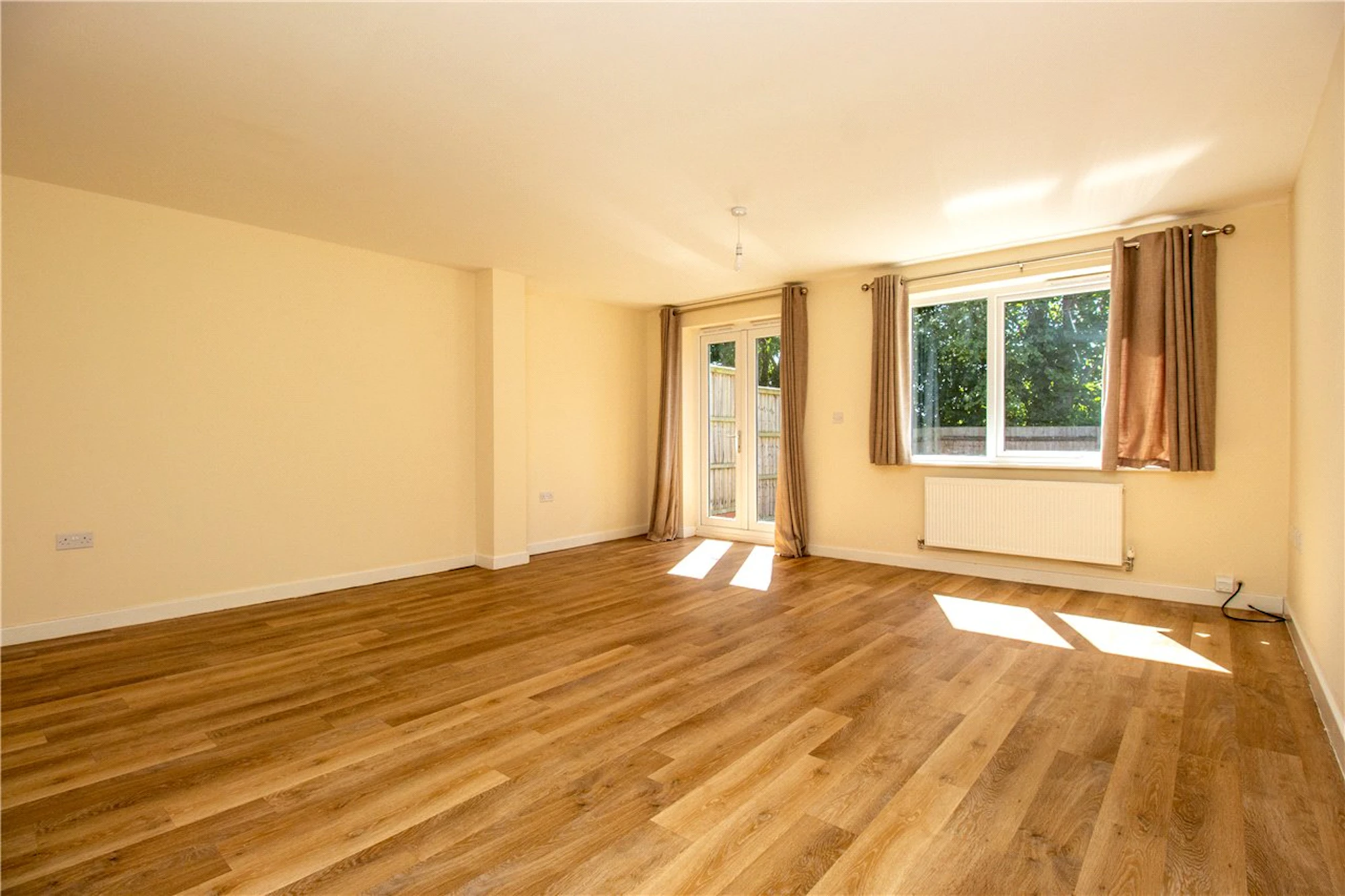 On the ground floor the large open plan living/dining room with French doors and large windows looks out onto the garden and patio. From the hallway there is also a downstairs guest w/c and a useful storage cupboard.