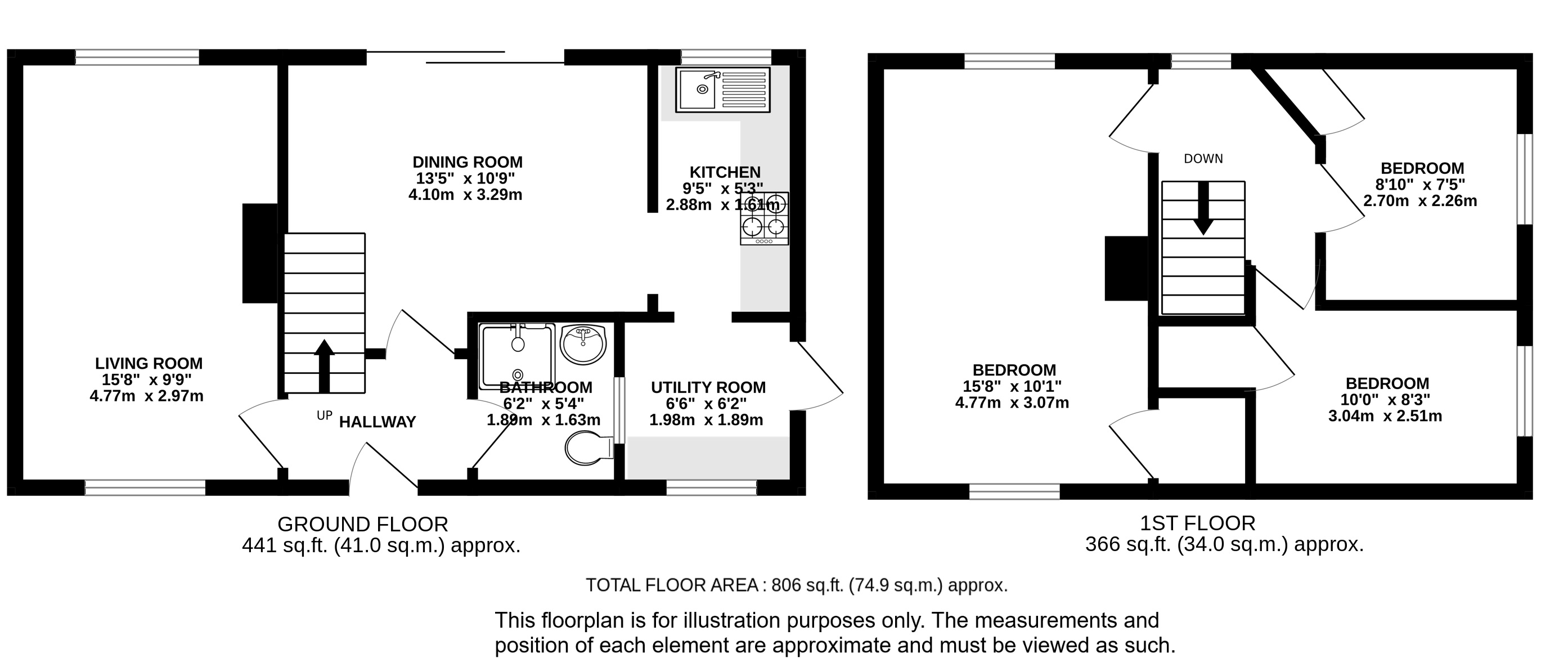 The ground floor welcomes you with an inviting entrance hall that leads through to a bright and spacious dining room with double-doors leading into the sunny gardens, perfect for entertaining. Located off the hallway is a large living room, ideal for relaxing. The kitchen is complemented by a separate utility area, with a family bathroom located on the ground floor for added convenience. Upstairs, you will find three well-proportioned bedrooms, each offering a light and airy feel.