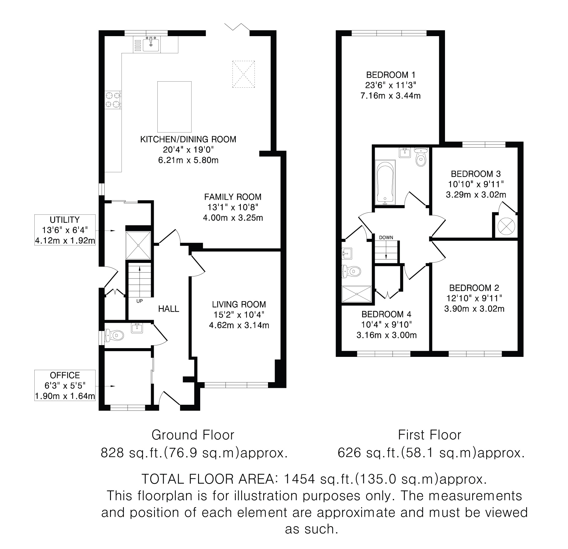 Upstairs, the first floor offers four well-proportioned bedrooms, a family bathroom, and a stylish en-suite to the principal bedroom, which has been thoughtfully extended. Outside, the secluded rear garden is mainly laid to lawn with a patio ideal for outdoor entertaining, while the front of the property provides ample off-road parking for multiple vehicles.
