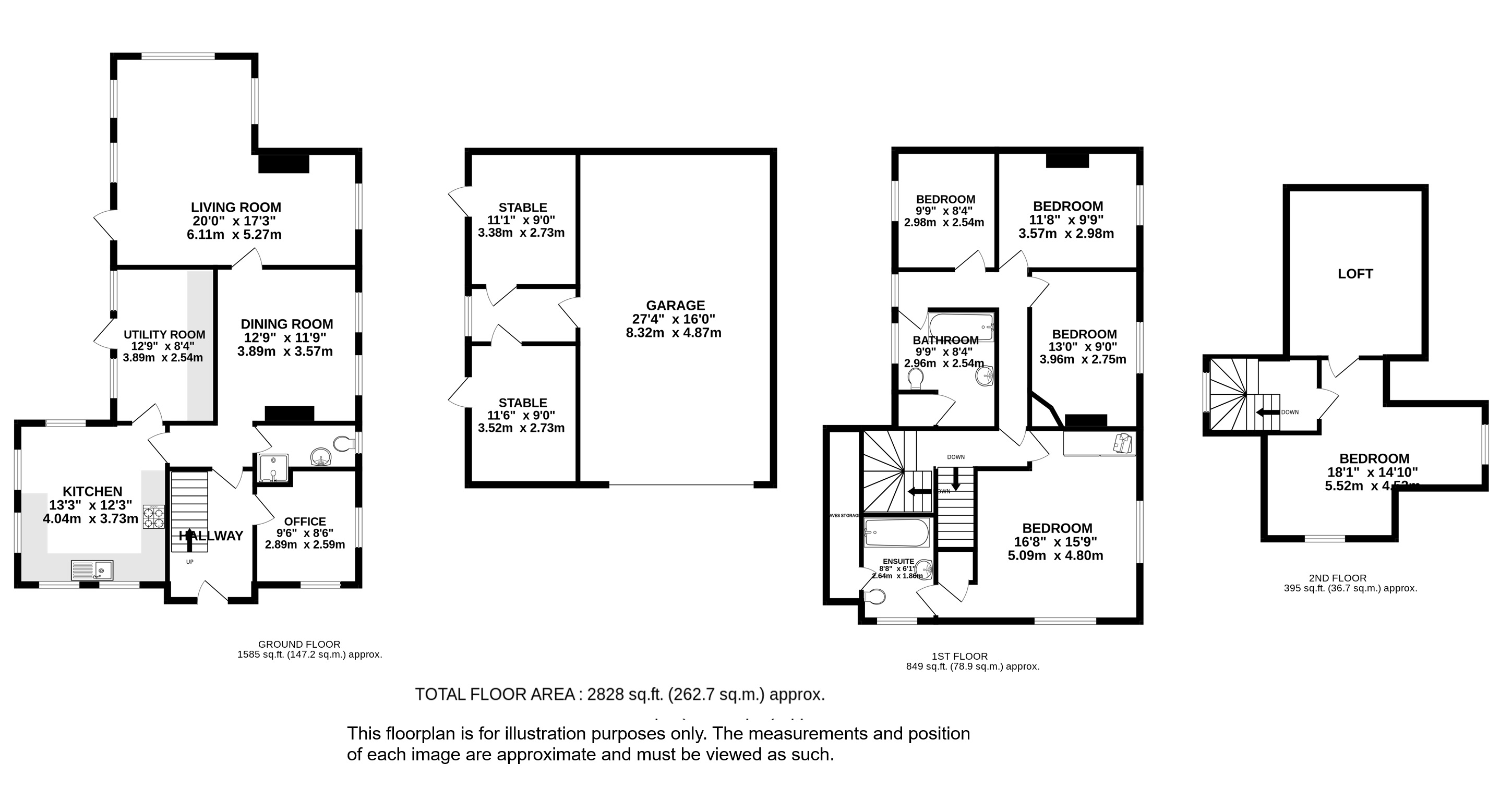 On the first floor there are four bedrooms all with lovely views one with ensuite and a modern family bathroom. Stairs lead to the top floor where there is a final sizeable bedroom with views toward the village.