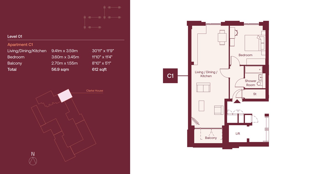 Apartment C1 is a one bedroom apartment with 612 sq ft of accommodation, private balcony and allocated parking * SHOW HOME AVAILABLE TO VIEW! *