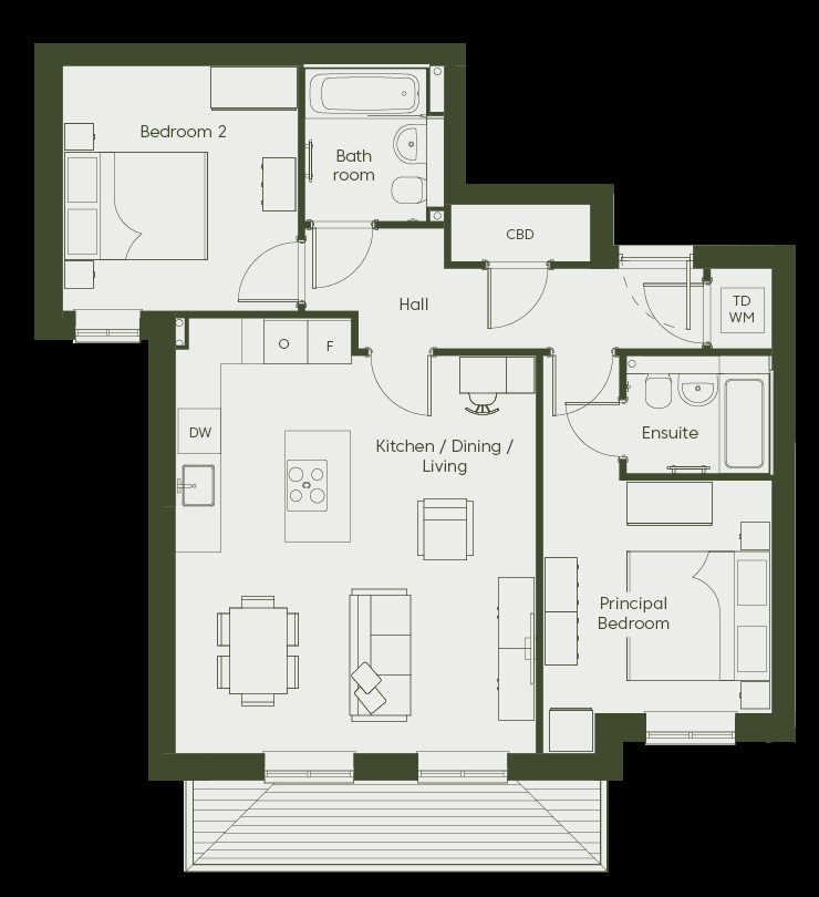 Apartment FIVE (RESERVED) is a two bedroom, two bathroom first floor apartment with 788 sq ft of accommodation and allocated parking space.