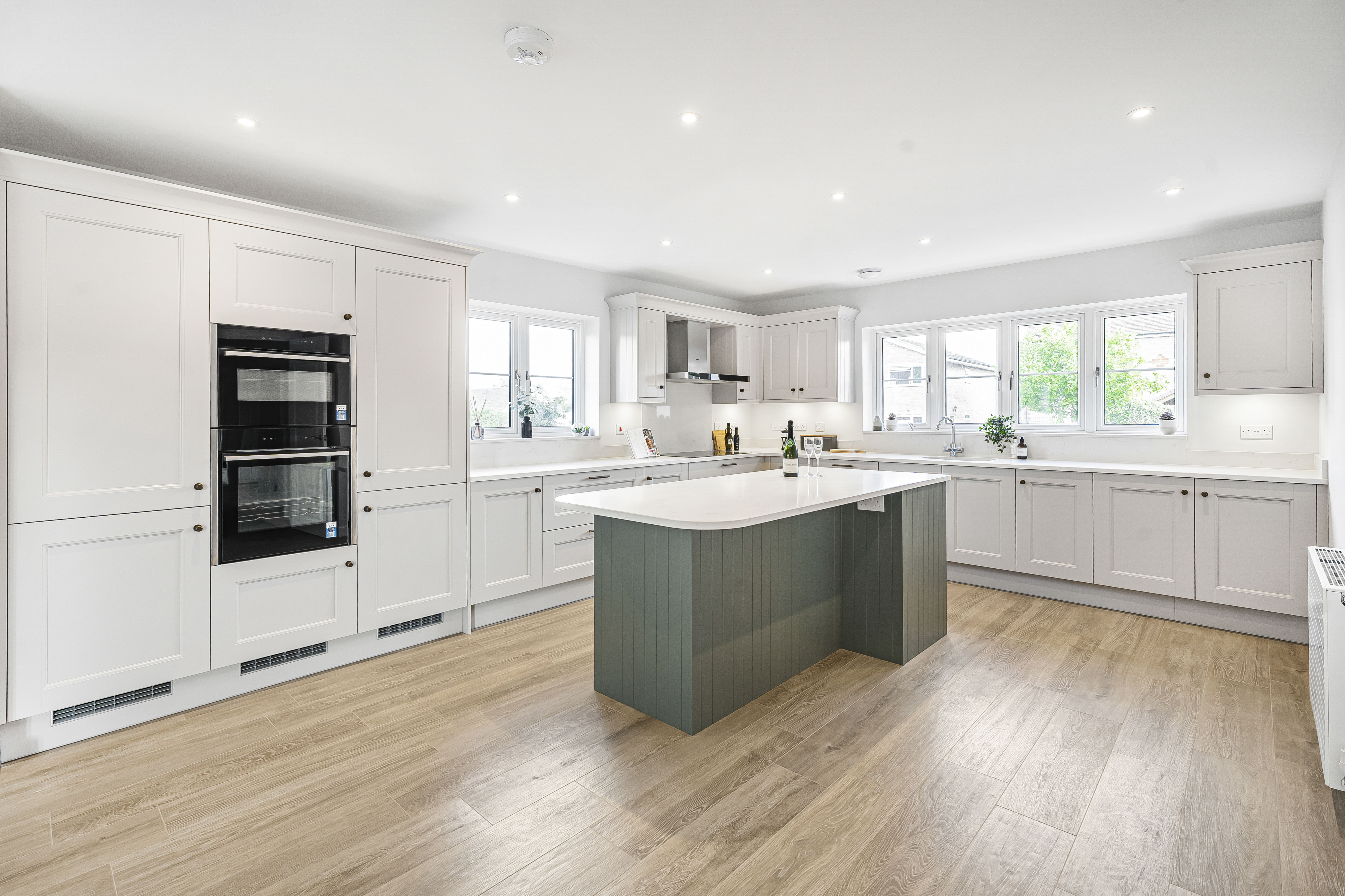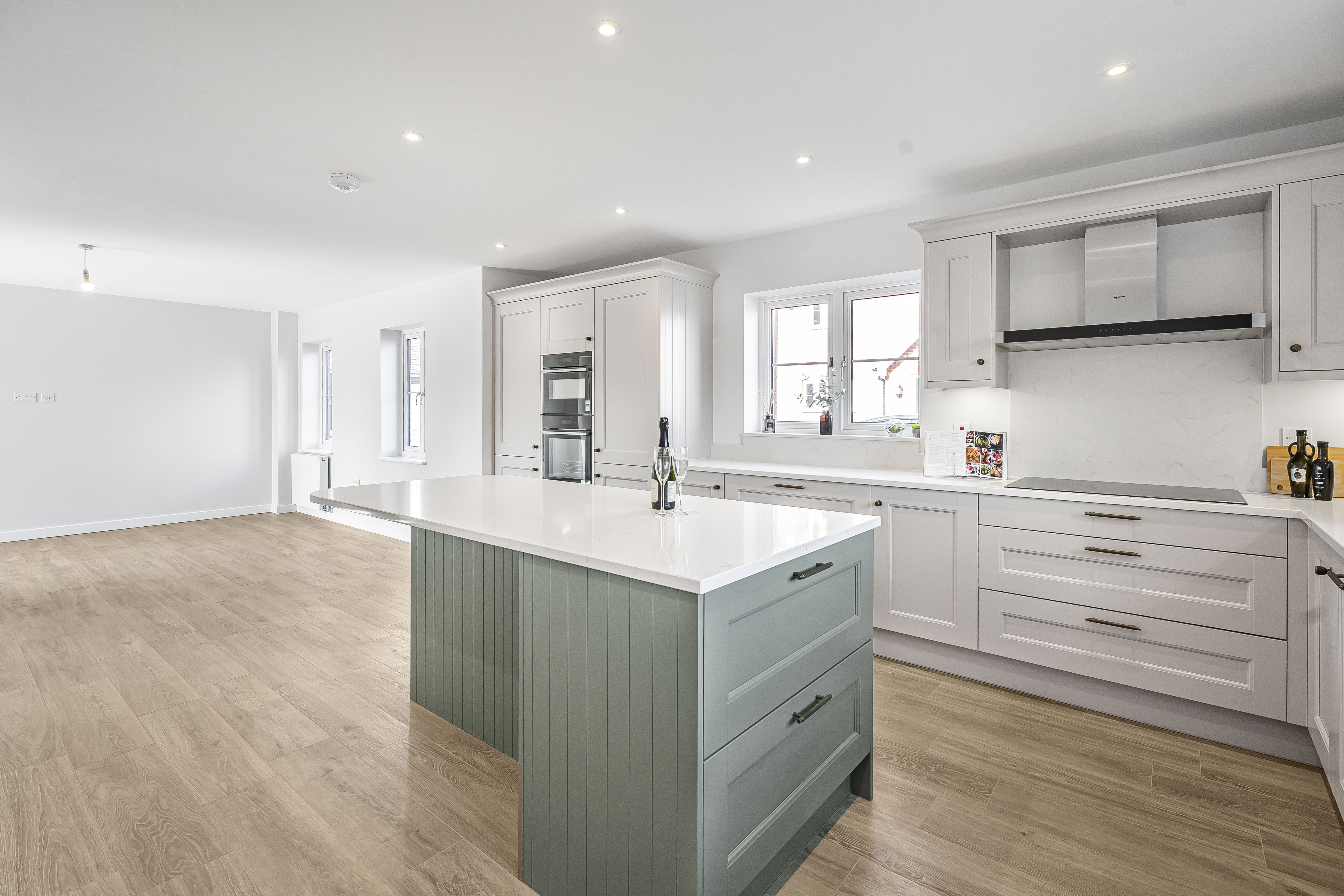 - The photos of the kitchen show other plots, to demonstrate typical finish available. With this particular plot, the purchaser will have the opportunity to visit the kitchen show room and choose/design a kitchen from a fabulous range at Loline interiors of Biggleswade. The specification would include feature Island, quartz worktops & NEFF integrated appliances including combi oven, slide & hide oven, induction hob, large separate fridge and freezer. Ceramic tiled flooring.