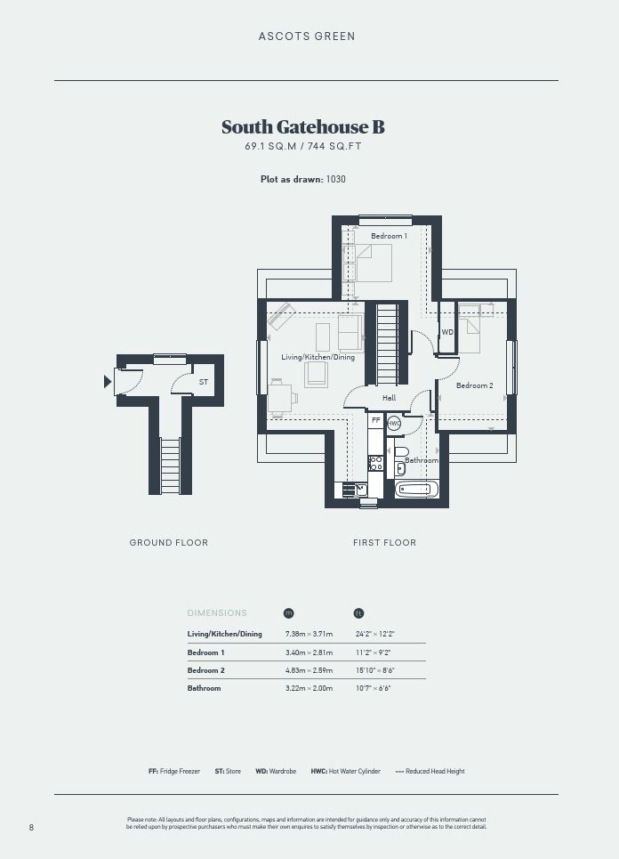Plot 1030, South Gatehouse B is a 2 bedroom first floor maisonette measuring 744 sq ft with private garden.