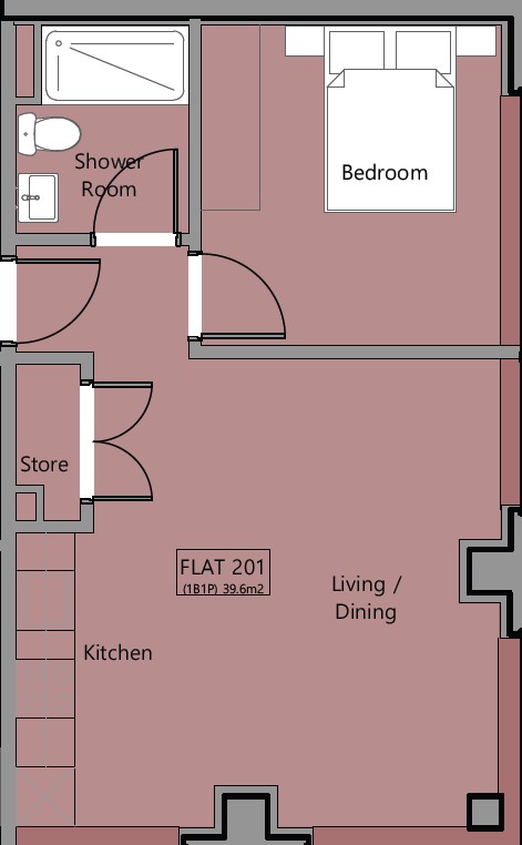 Plot 201 is a one bedroom second floor apartment with 426 sq ft of accommodation.