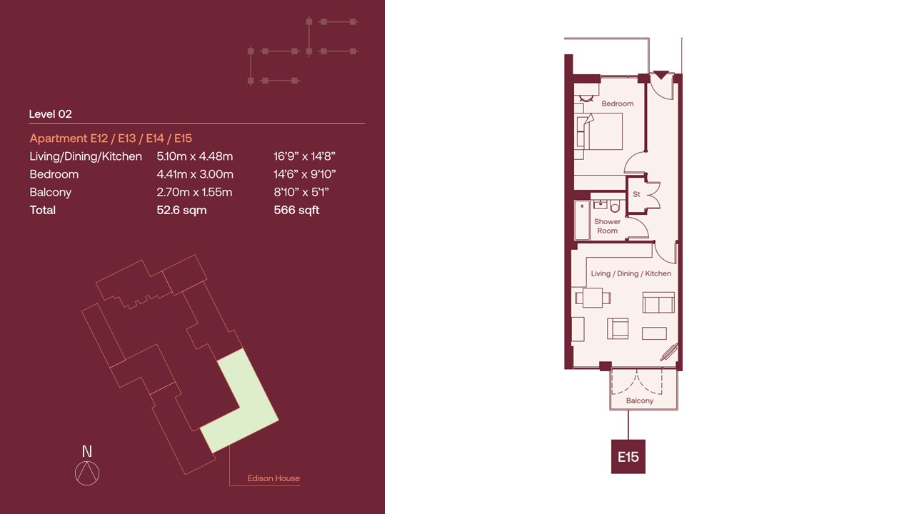14 Edison House is a one bedroom apartment with 560 sq ft of accommodation and private terrace. Show Home Available to View By Appointment!