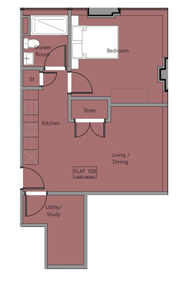 Plot 108 is a brand new one bedroom first floor apartment with separate study and 483 sq ft of accommodation, located in a fantastic city centre location close to the station