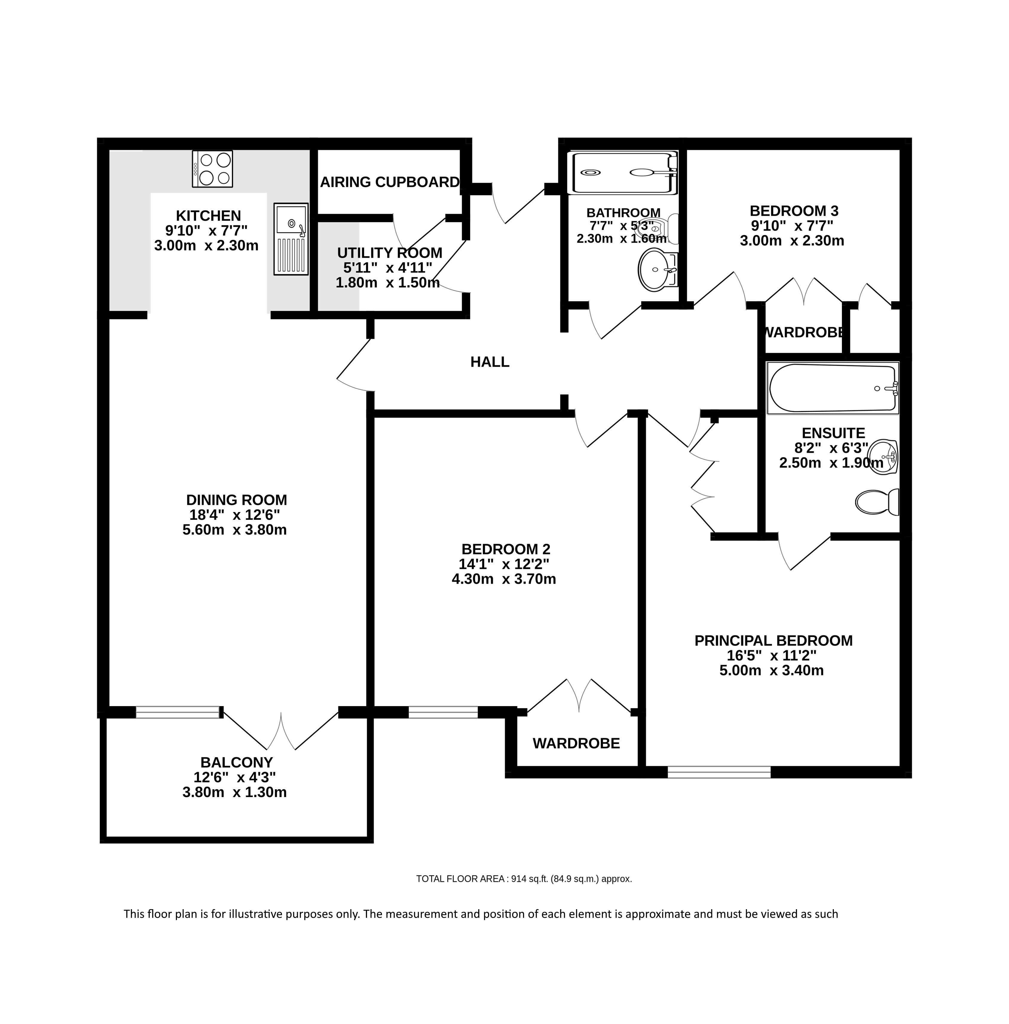The apartment features three generously sized bedrooms, including a principal bedroom with built-in wardrobes and a private en-suite bathroom. The remaining two double bedrooms also benefit from built-in storage and large windows that flood the space in natural light. There is an additional contemporary bathroom suite accessed via the bright and spacious hallway.