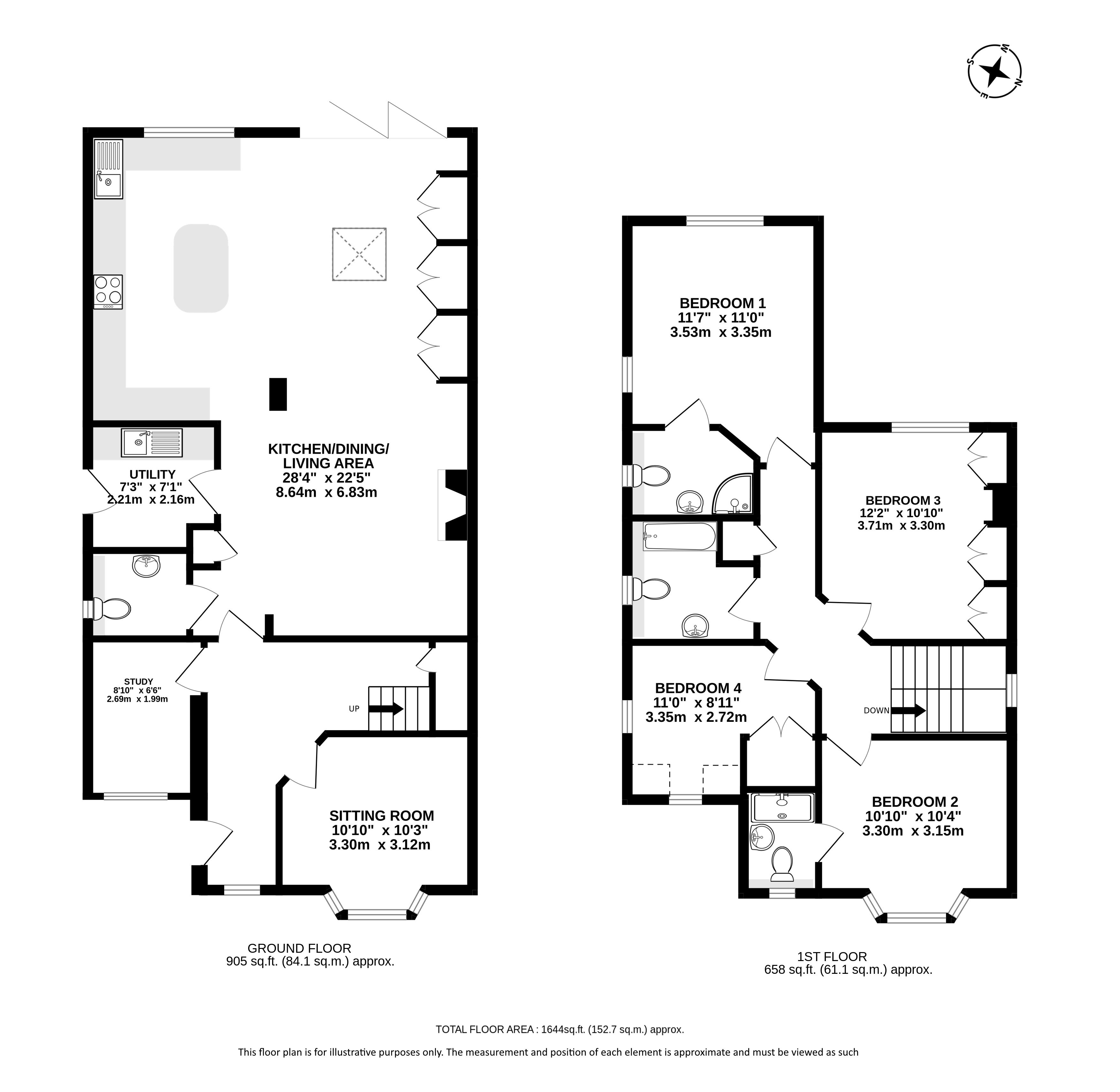 Further highlights include a cosy snug, a dedicated study, and a well-appointed utility room. The ground floor also benefits from a cloakroom.
