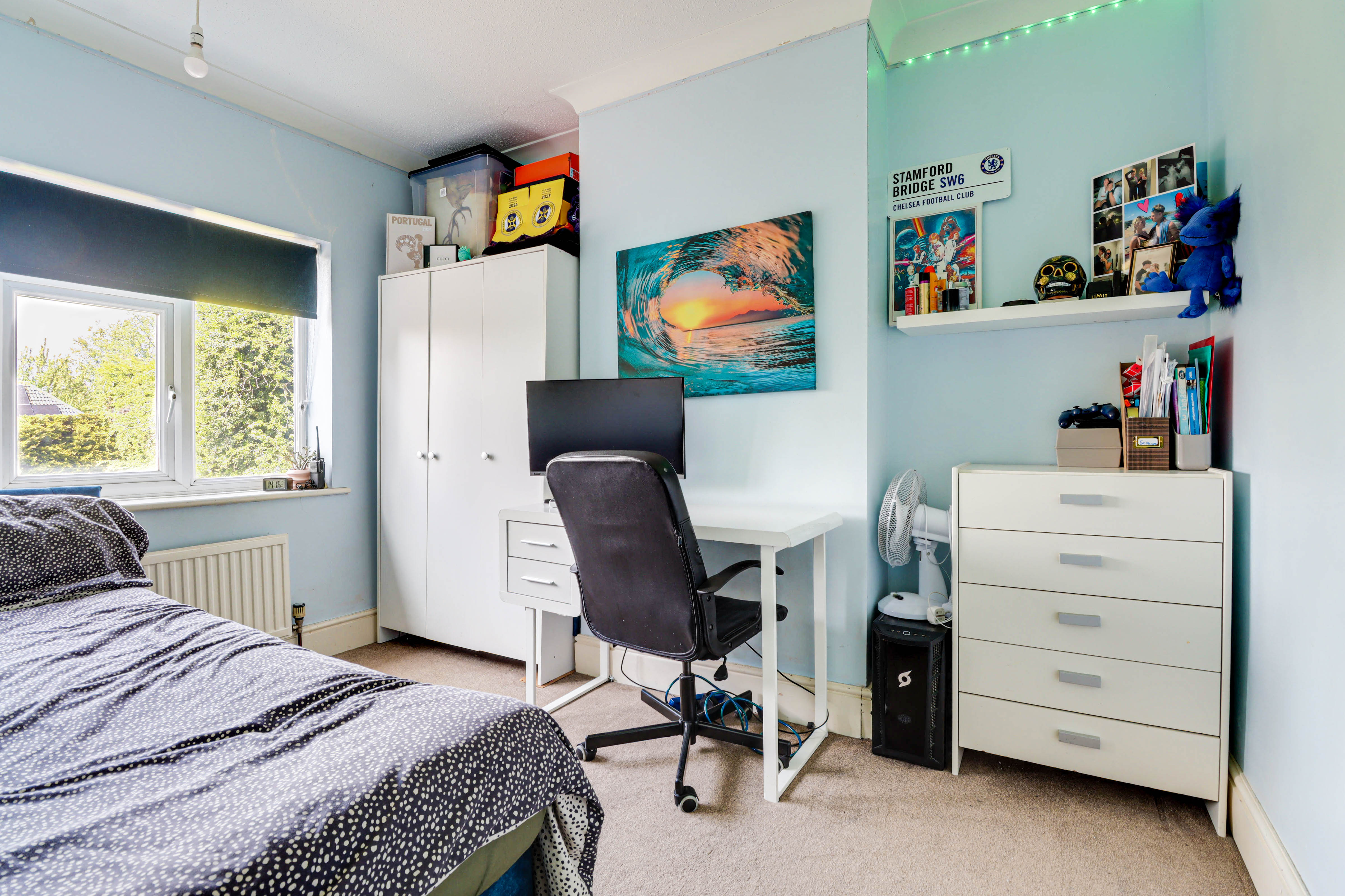Upstairs, the first floor comprises three well-proportioned bedrooms and a contemporary family bathroom. Planning permission was previously approved for a substantial loft conversion creating a principal bedroom and ensuite shower room.