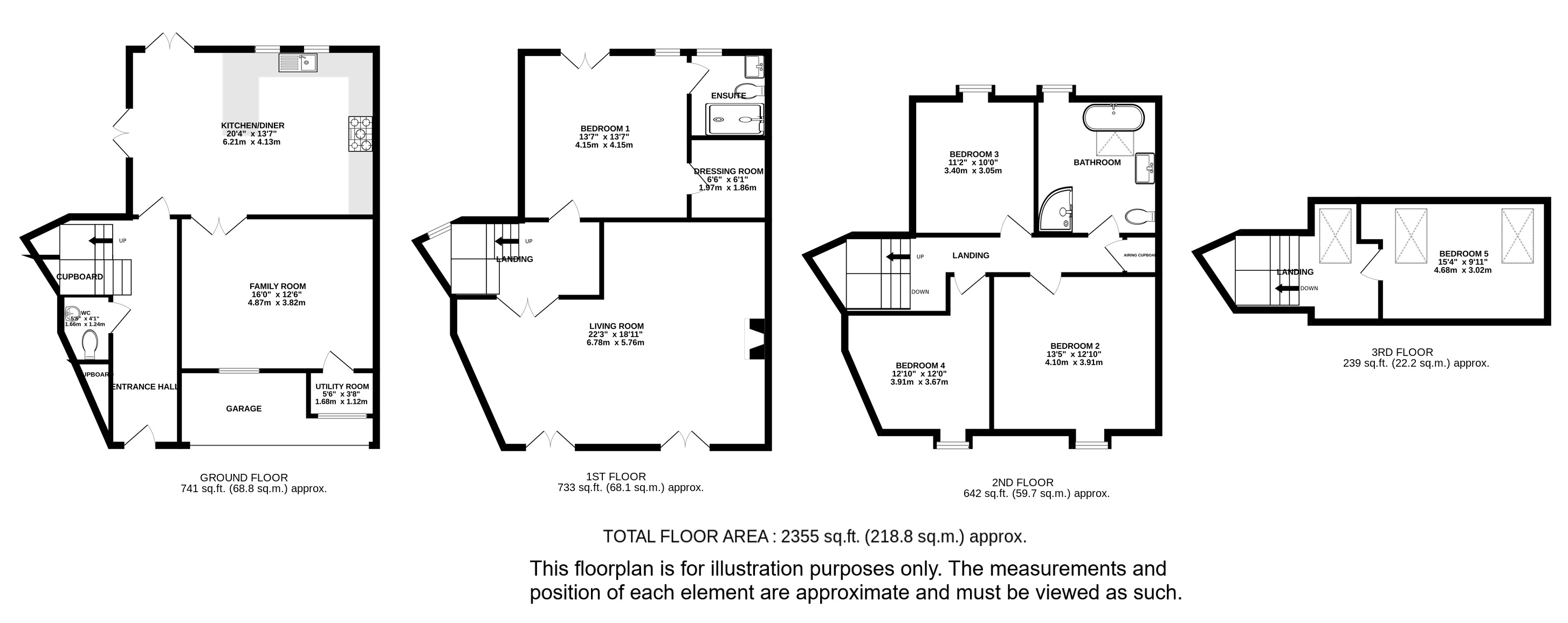 There are three further double bedrooms on the second floor, as well as a sizeable family bathroom with freestanding bath, and a conversion of the loft space has created a further double room on the third floor, flooded with light through large rooflights.