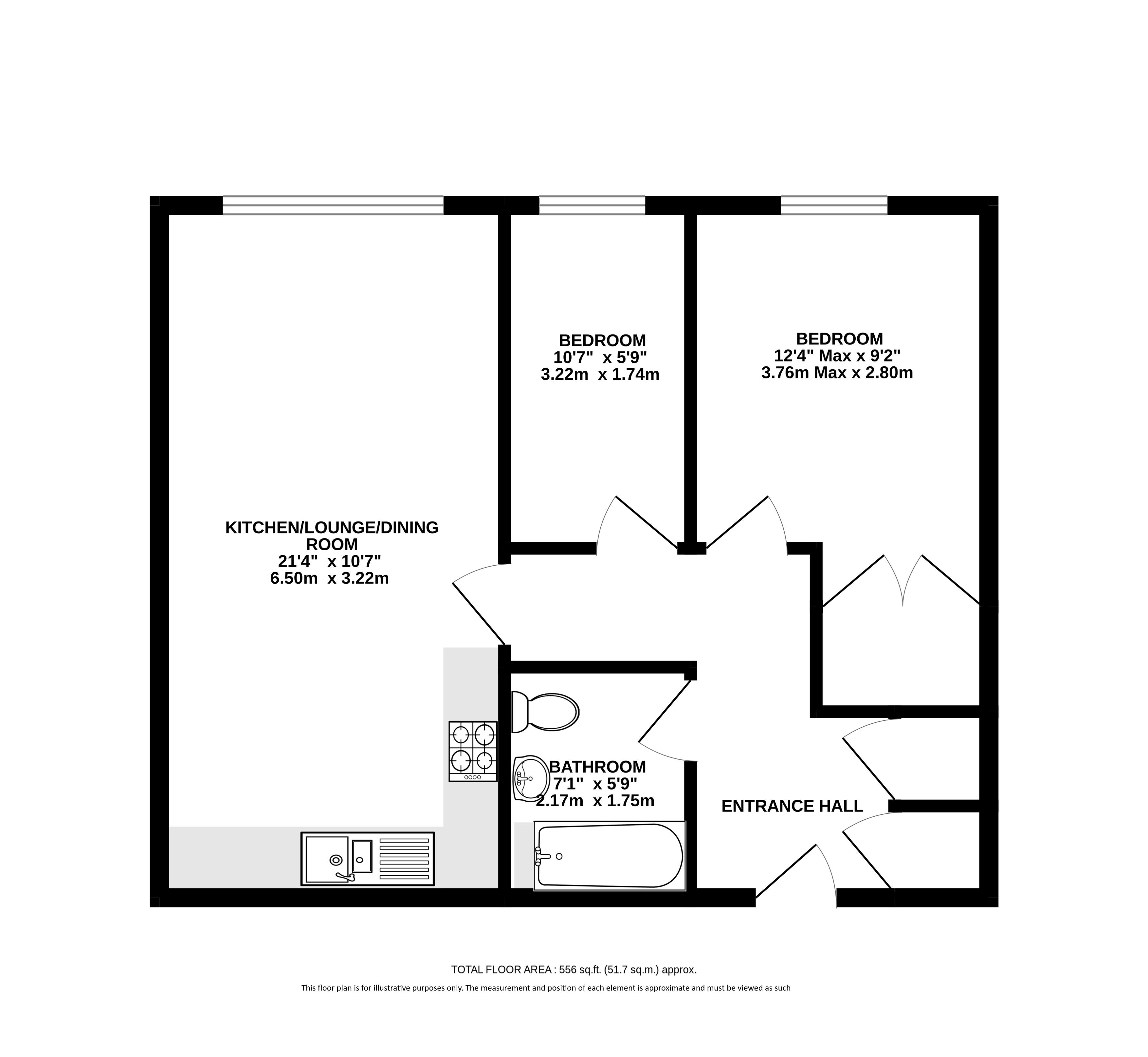 The property boasts two well-proportioned bedrooms, each offering flexibility to accommodate a variety of lifestyle needs'whether as restful sleeping quarters, a home office, or guest space. A sleek, contemporary family bathroom completes the interior, featuring a bath with overhead shower, washbasin, and W.C.