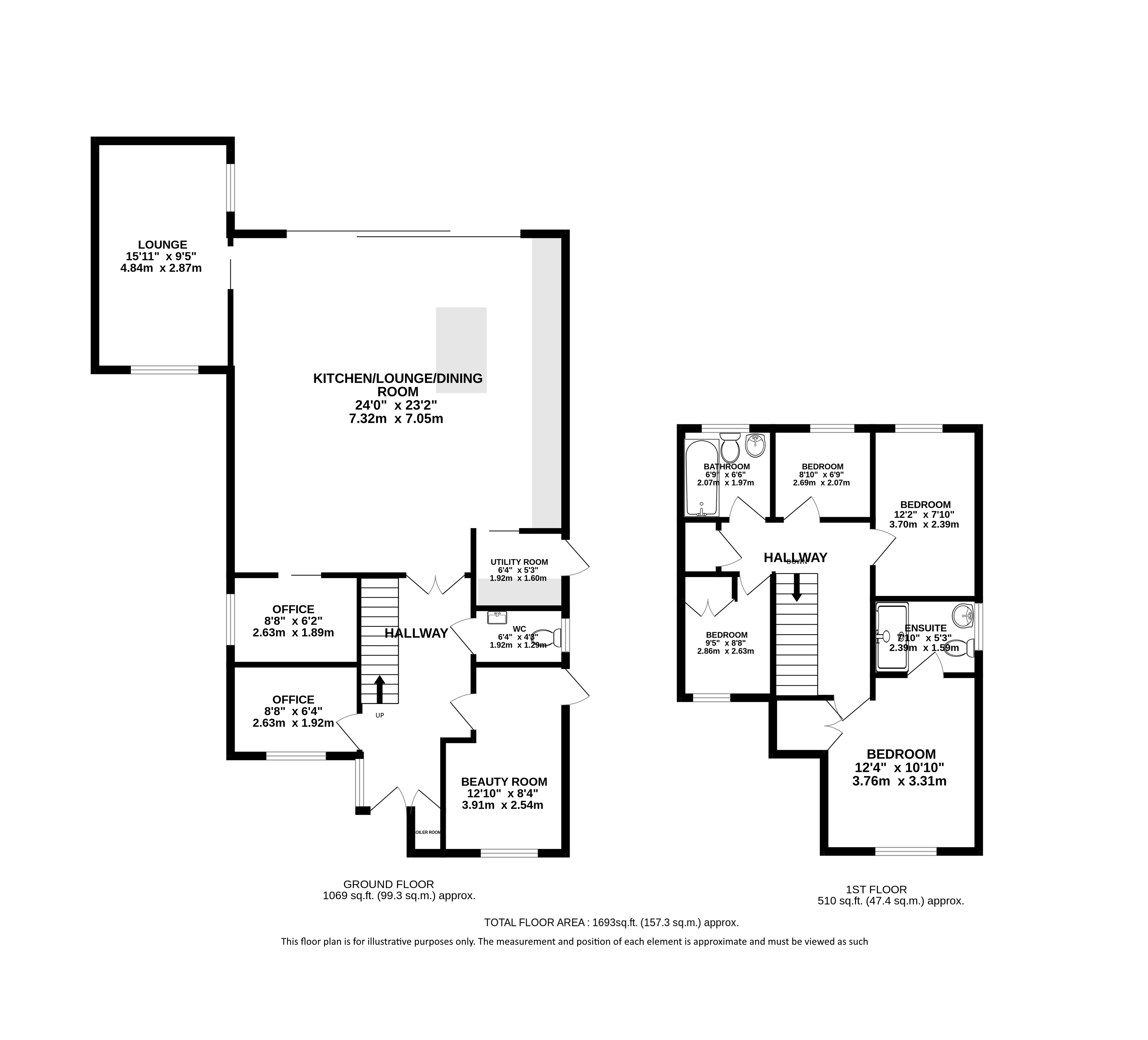 The ground floor also benefits from underfloor heating and two versatile office rooms, making it perfectly suited for those working from home or in need of additional hobby or study spaces. A dedicated utility room, downstairs WC and a beauty room add further convenience and flexibility to the layout, ensuring the home is as practical as it is stylish.