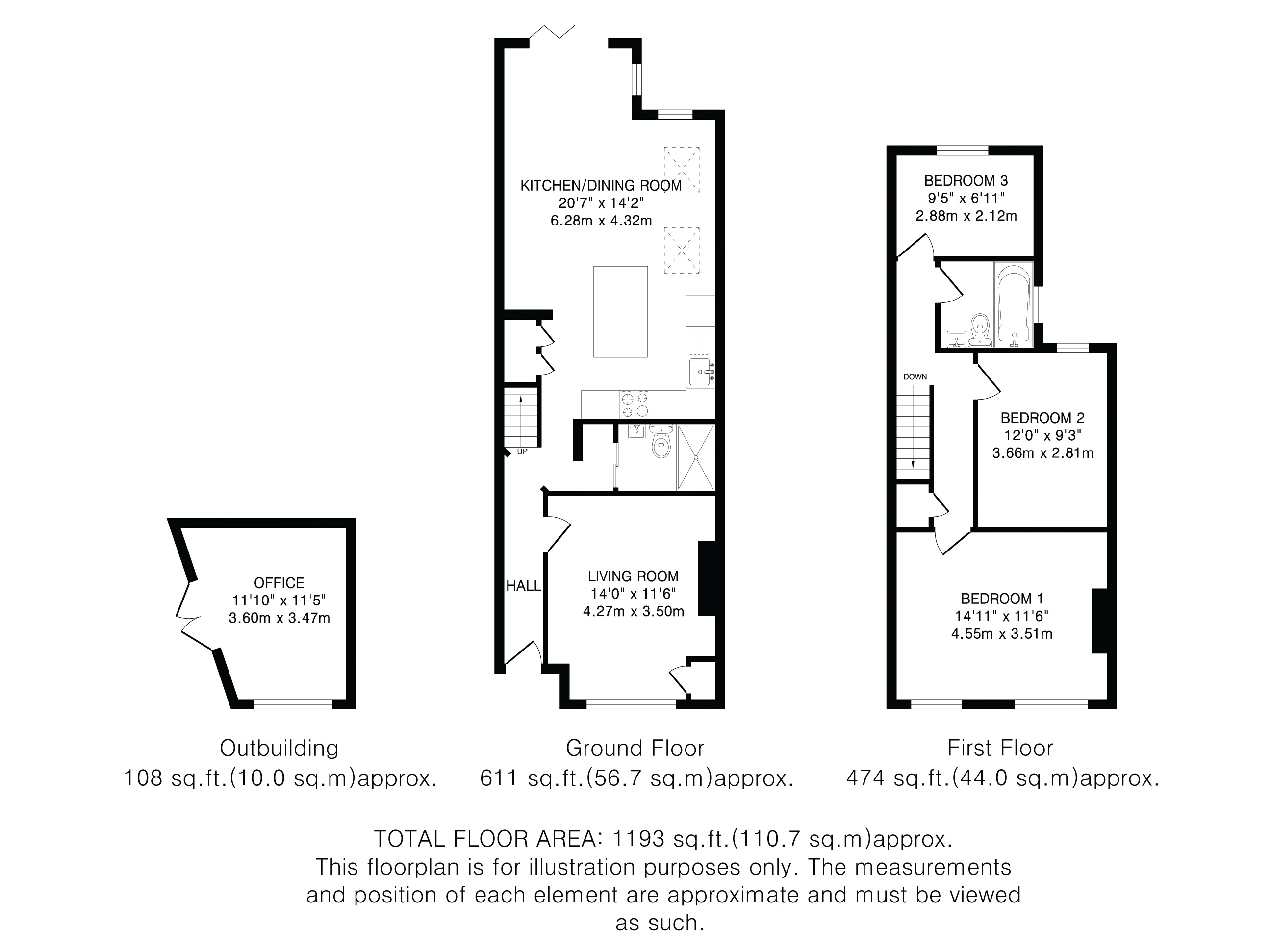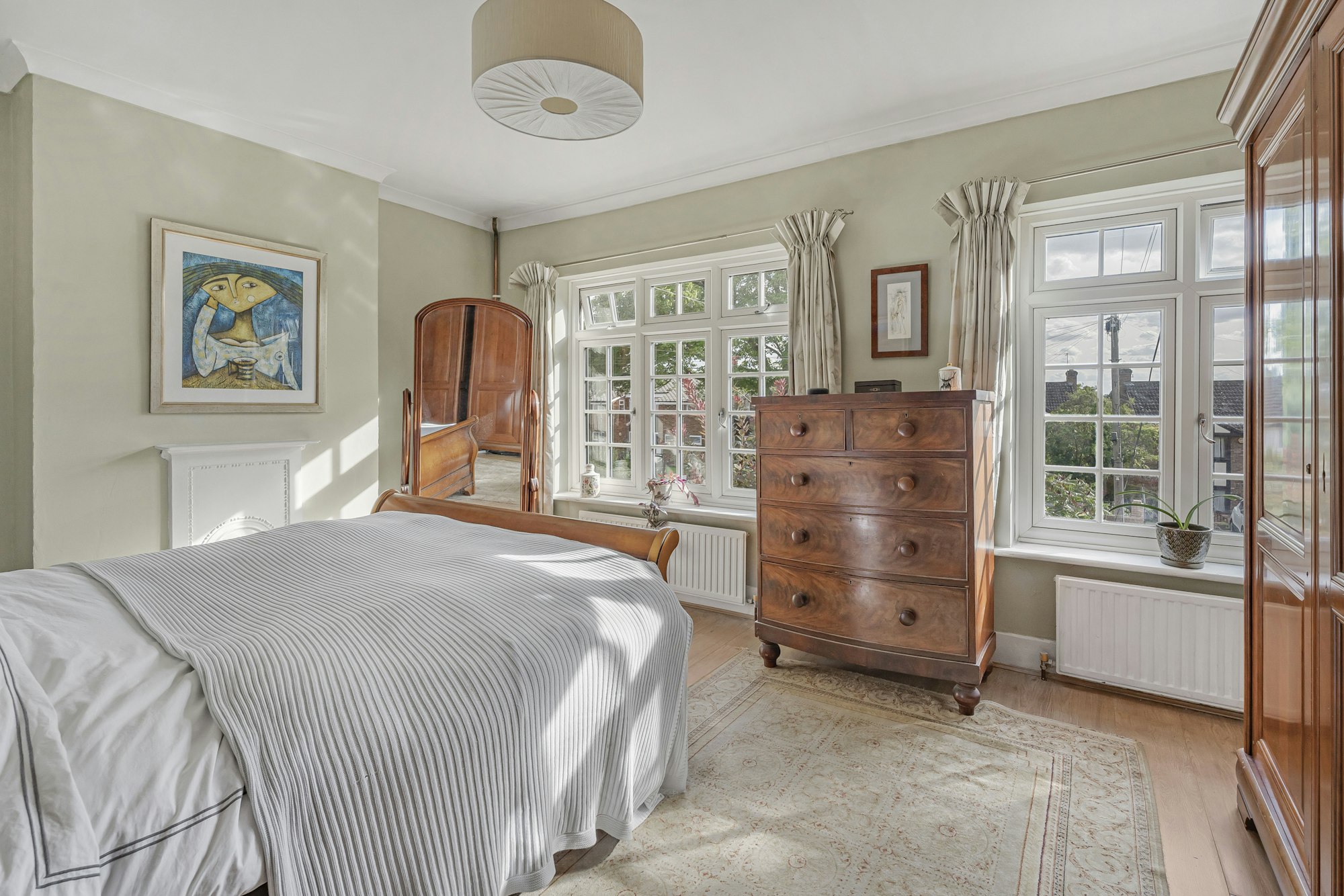 There are three bedrooms on the first floor, the largest of which spans the full width of the property, with two large, low-silled windows admitting plenty of natural light. All three bedrooms can accommodate a double bed and there is a recently refitted family bathroom with a window to the rear. The loft space is currently used for storage, but offers exciting potential for further extension, with the current owners having secured planning approval for conversion to create a fourth bedroom, if required.