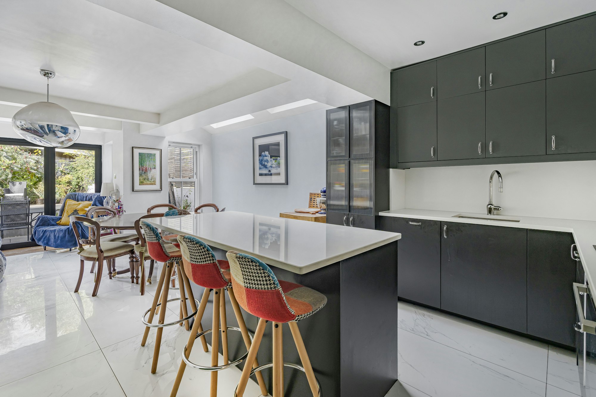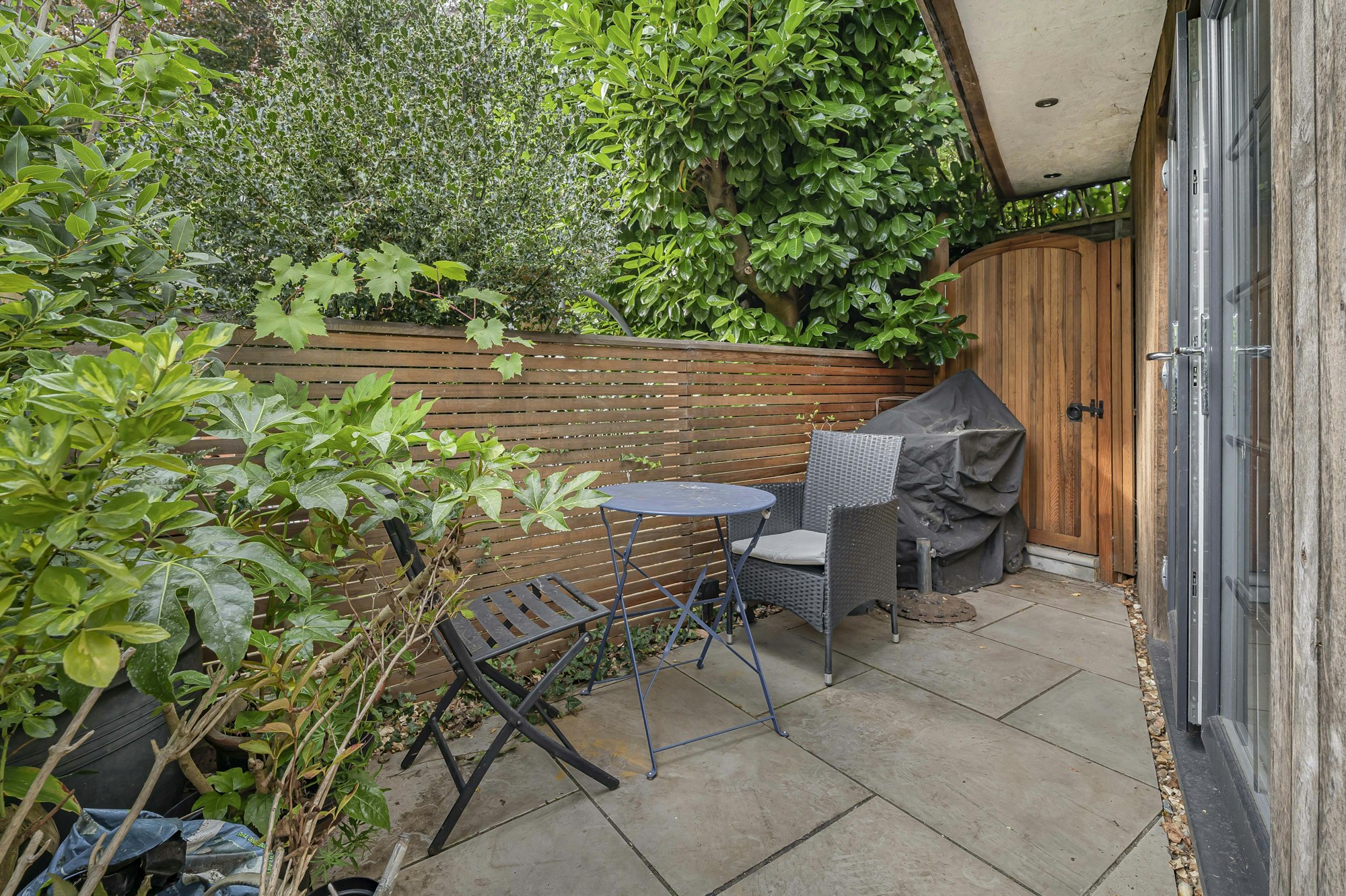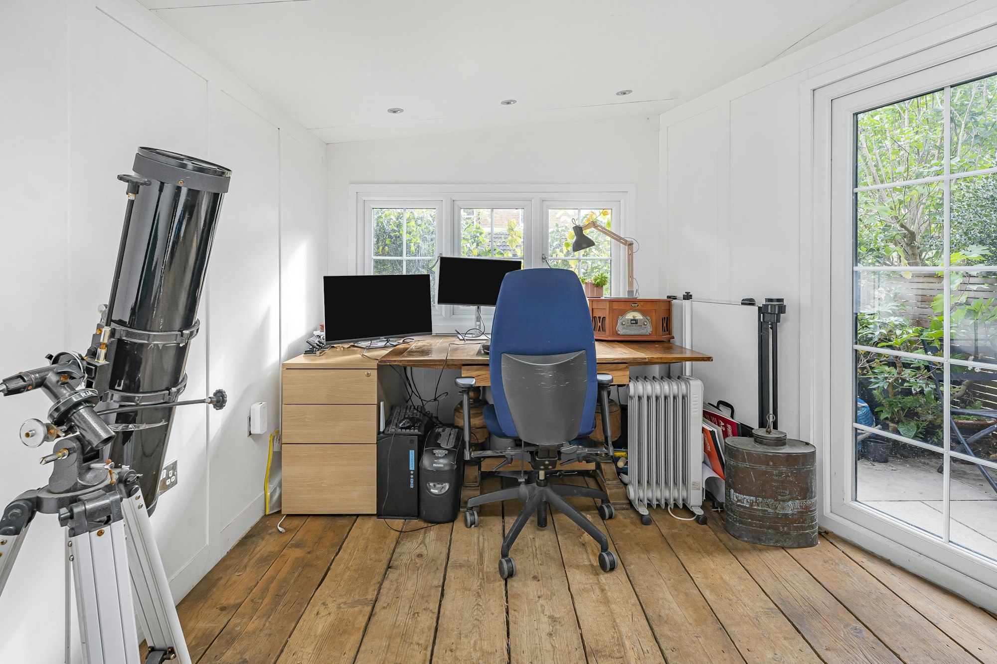 The garden is an especially attractive feature, having been completely redesigned and landscaped with lovely remote- controlled lighting. Stepping up from the house, there are several seating areas and a range of mature plants providing a good level of privacy, and there is a separate studio at the rear which provides an excellent additional space which currently serves as a home office and also benefits from remote control outside lights and external double plug socket.