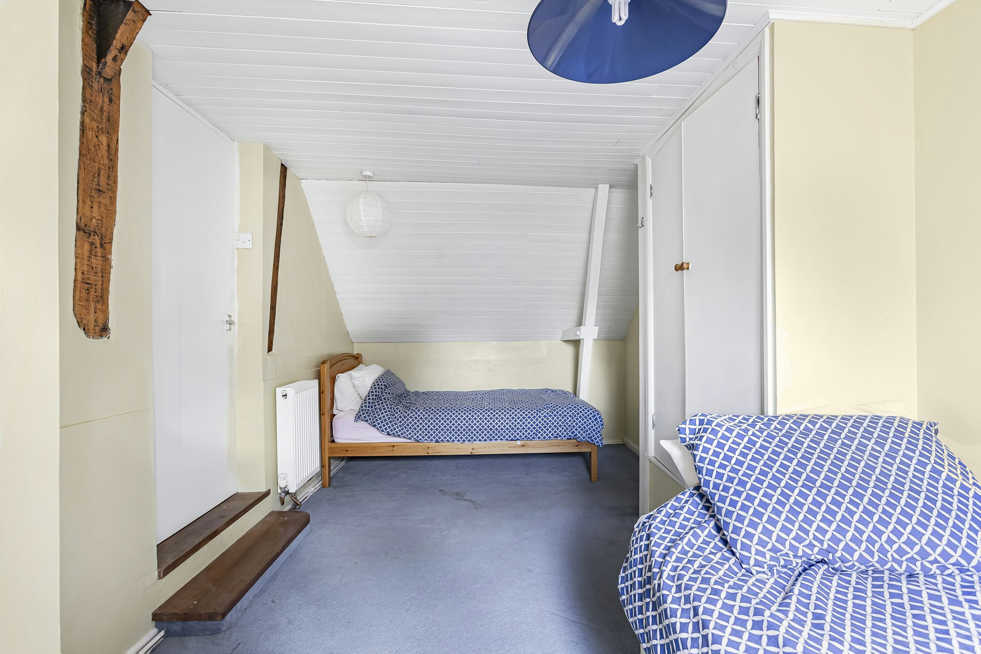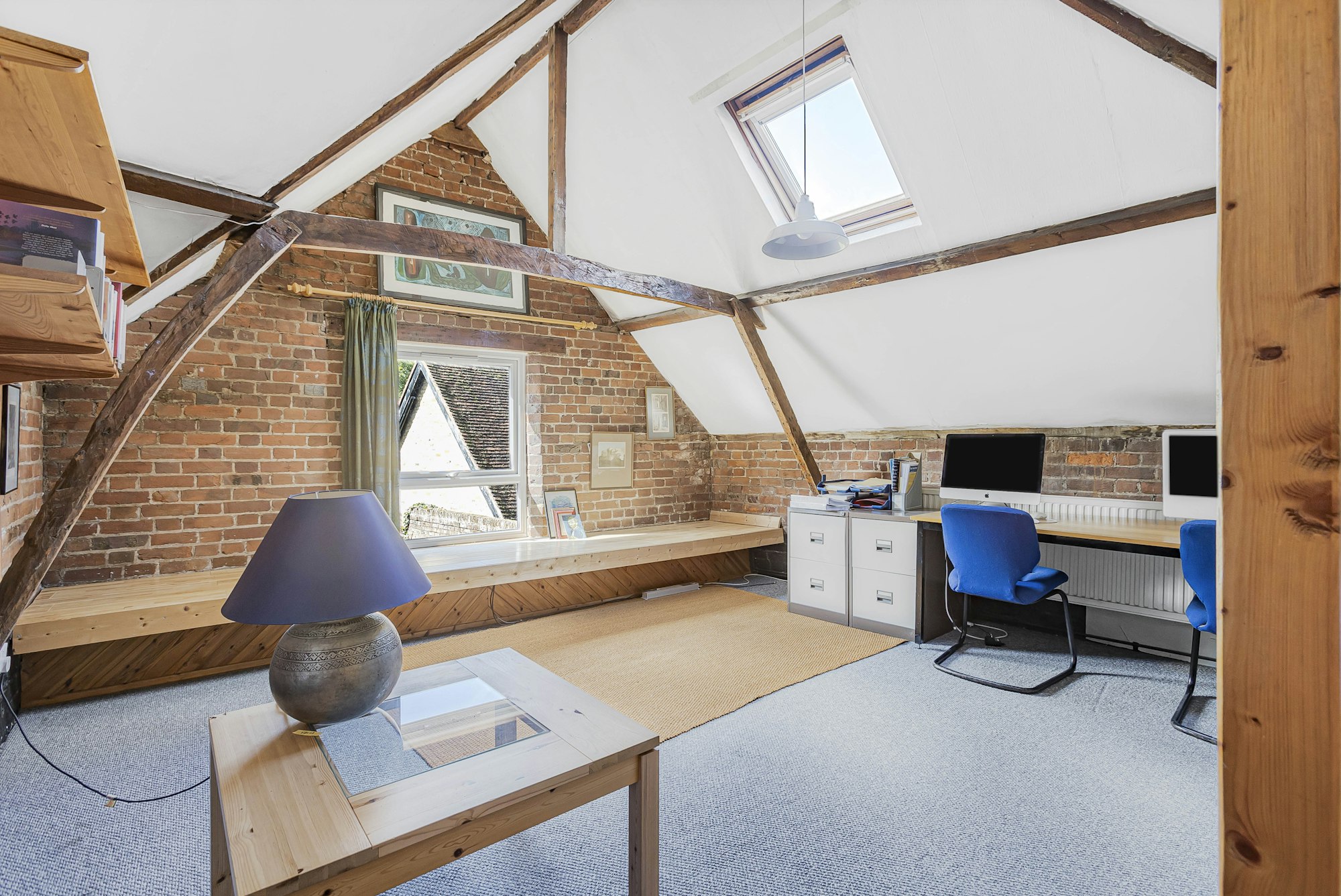 The charming layout of the property means that it has three separate staircases leading upstairs, where there are five further bedrooms, all overlooking the garden and each with their own character, with notable features including lofty ceilings, exposed timbers, a Juliet balcony and a window seat. There are two separate bathrooms on the first floor and two further rooms, one of which has a shower, and another which is currently in use as a bedroom, but which has access through to both ends of the property.