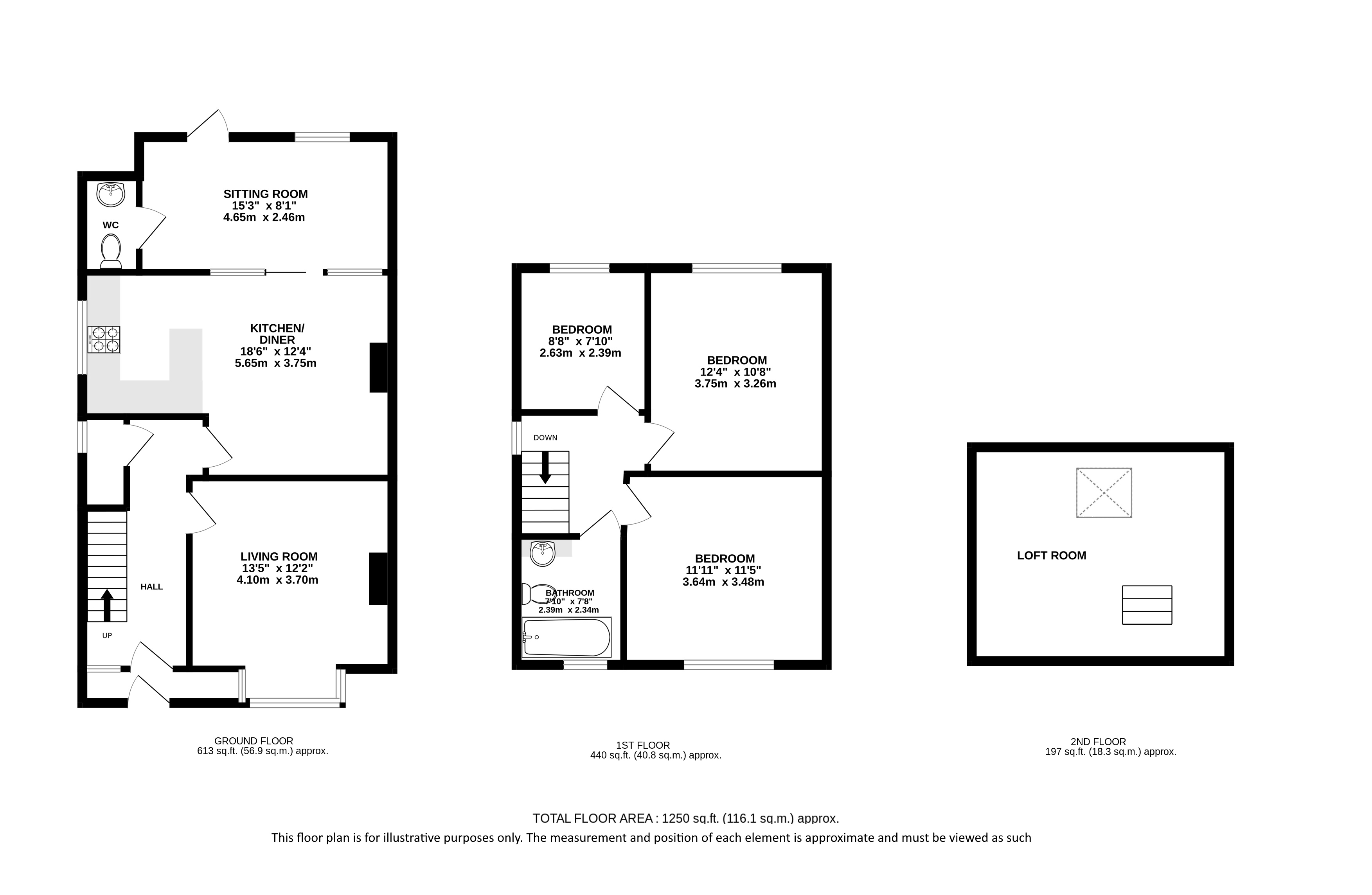 Upstairs, three well-proportioned bedrooms are served by a family bathroom with a three-piece suite. The property further benefits from a converted loft, providing an additional versatile room ideal for a home office, playroom, or extra storage.