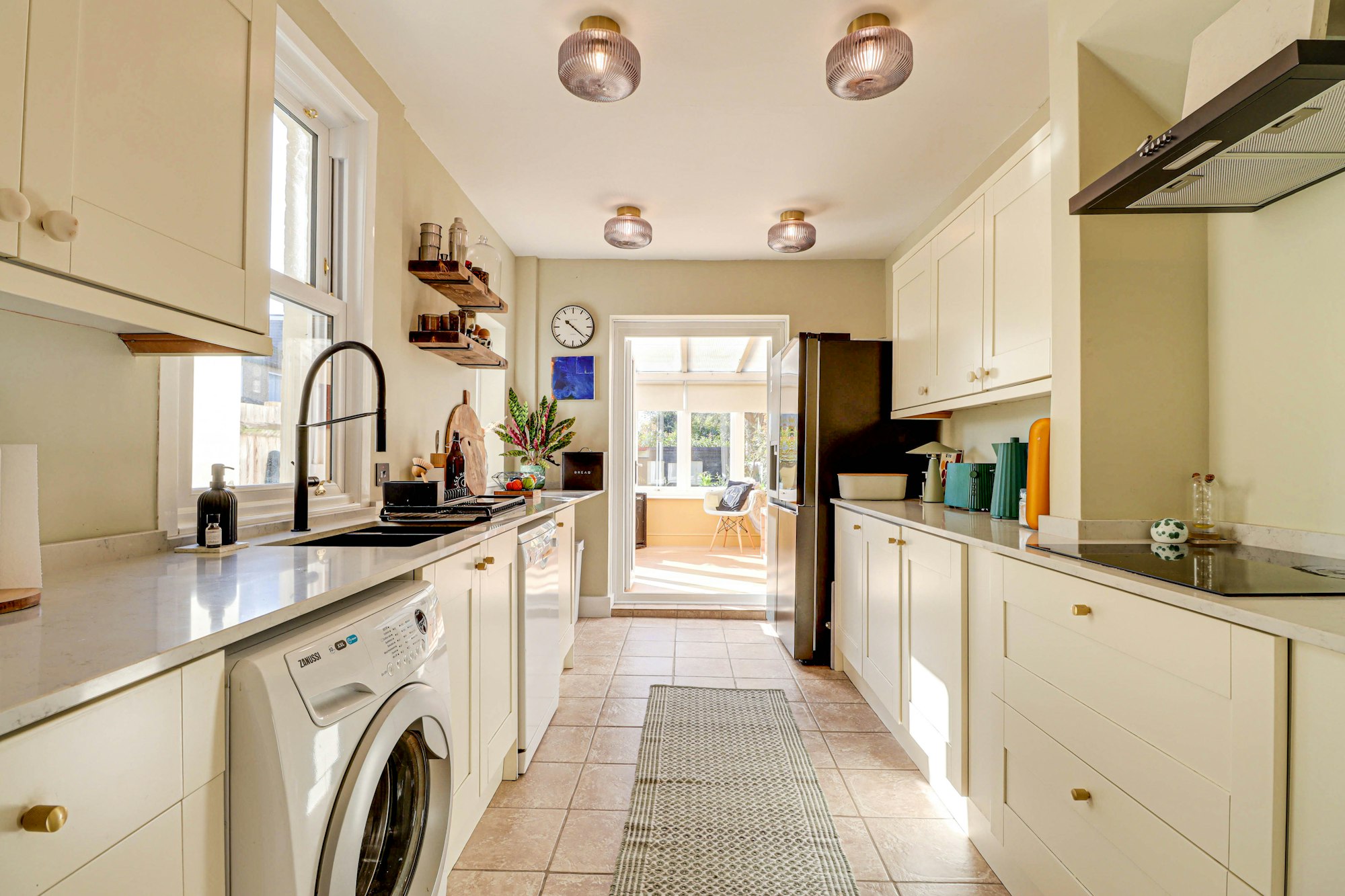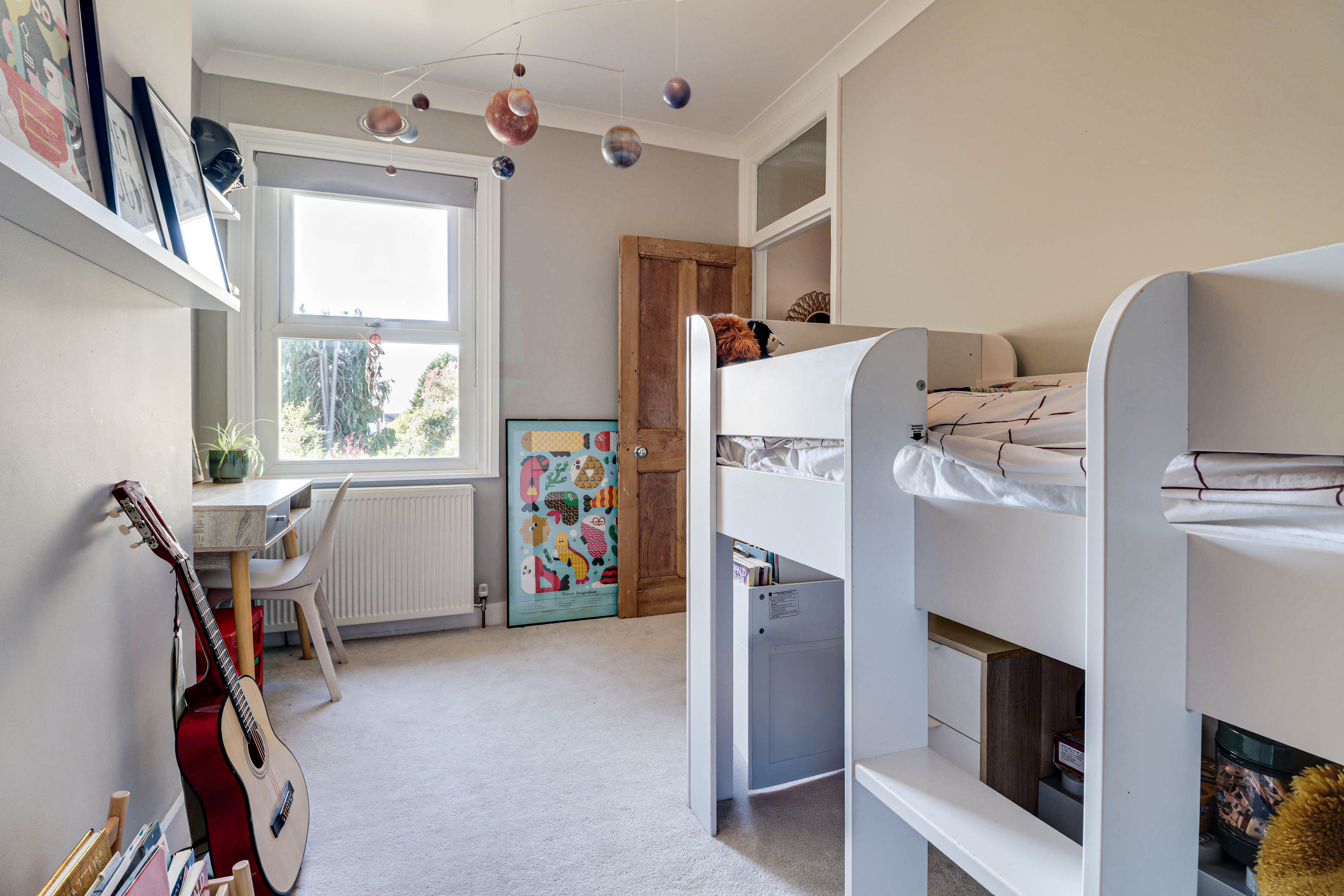 The smart finish continues upstairs, where there are three bedrooms, the largest of which spans the full width of the front of the house and has excellent fitted storage and the first floor also accommodates the family bathroom. The loft currently provides useful additional storage space, but may offer potential for the creation of a further bedroom, subject to the usual consents.