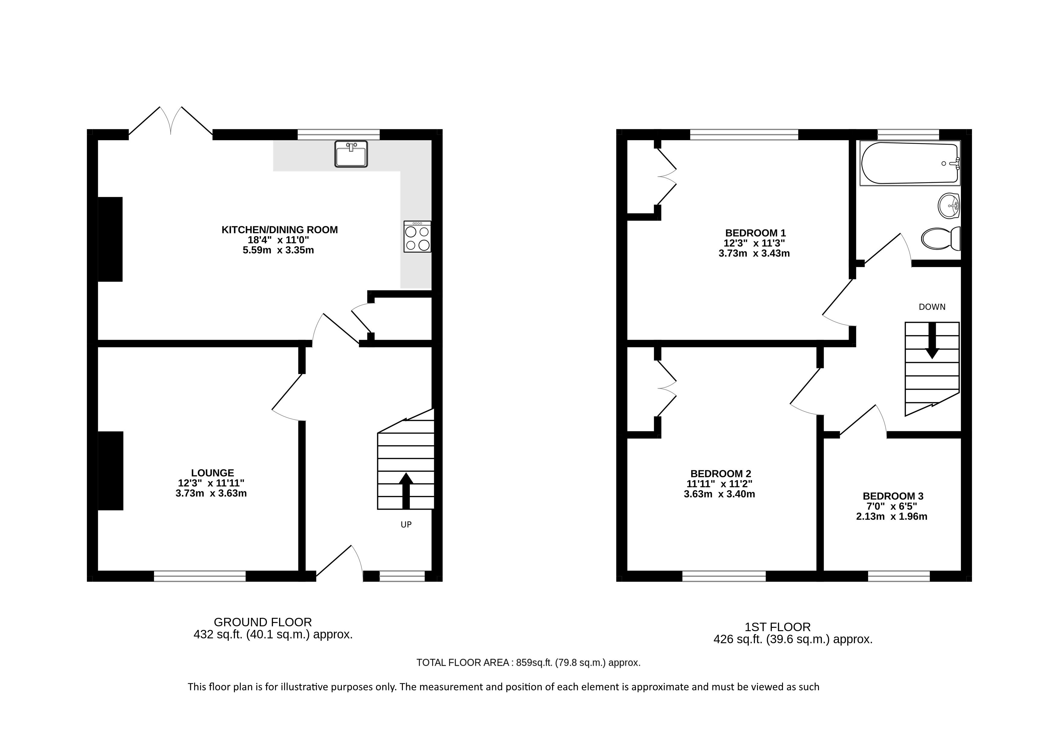 Upstairs three well-proportioned bedrooms are served by a modern bathroom with white three-piece suite.