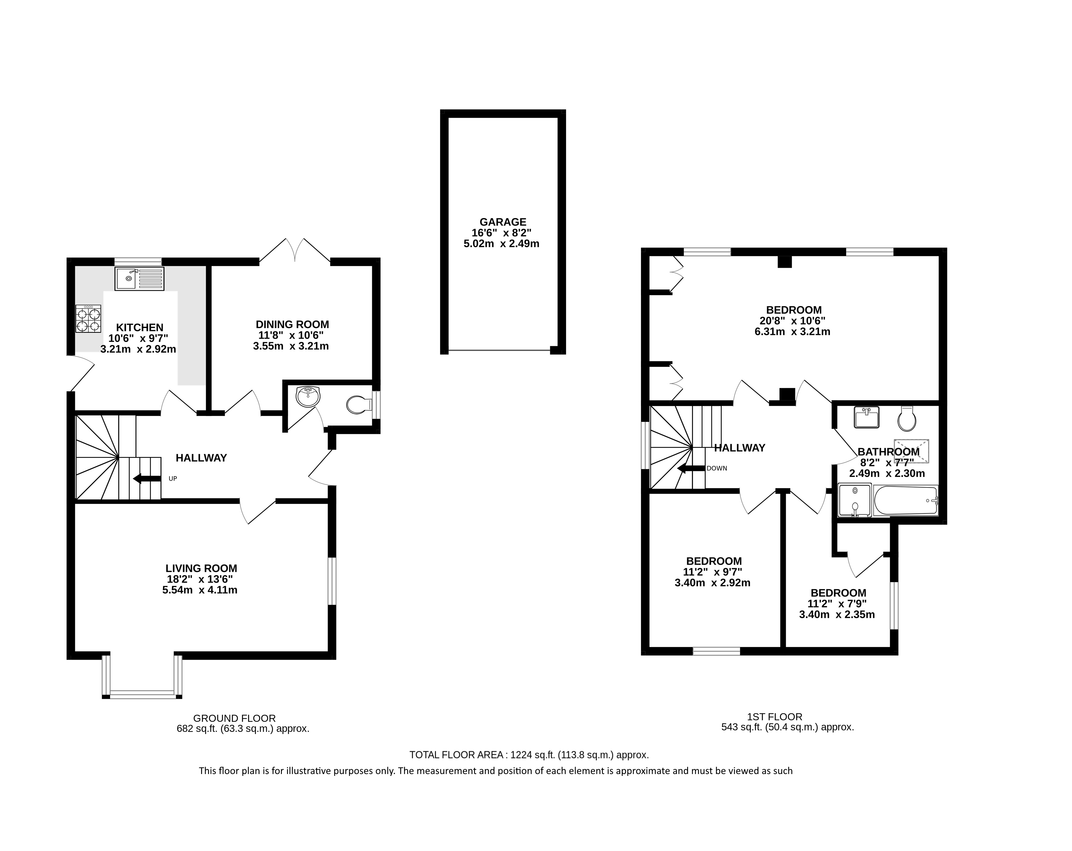 The ground floor boasts a generous living room, enhanced by a charming bay window and dual aspect, bathing the space in natural light. A well-appointed kitchen provides ample storage and convenient side access, while the separate dining room, perfect for family meals and entertaining, features French doors leading to the rear garden. A guest WC completes the ground floor accommodation.