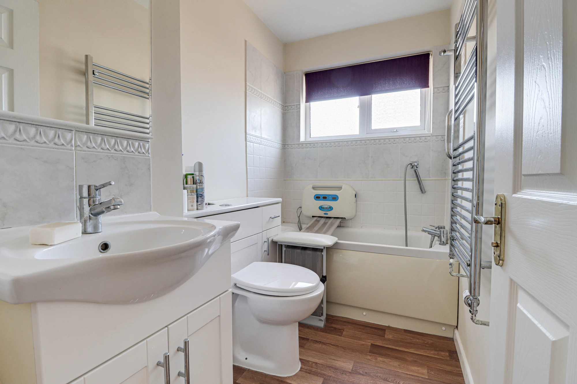 A lovely two bedroom detached bungalow with a south-facing garden. This property has off street parking and a garage and is offered for sale chain free.