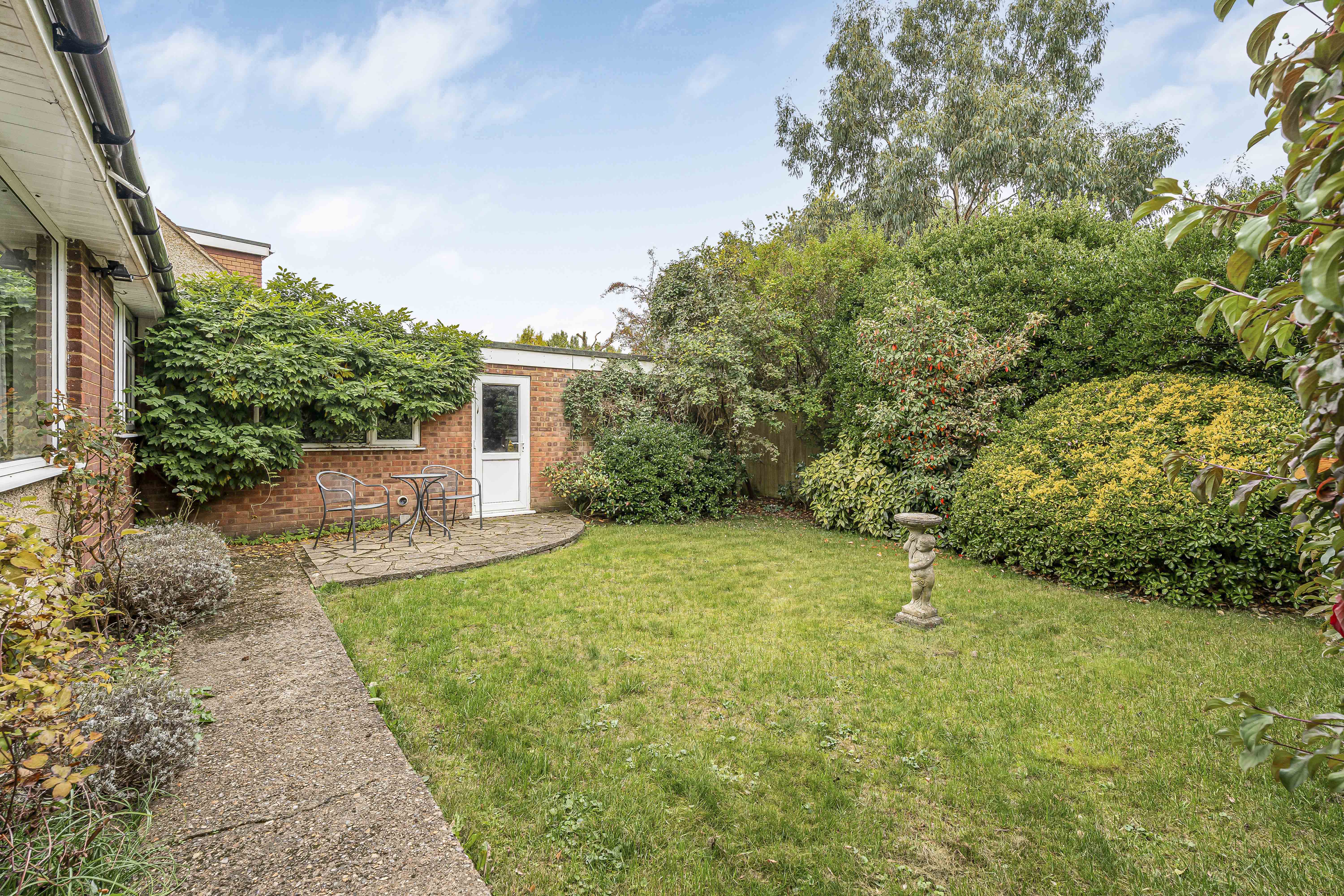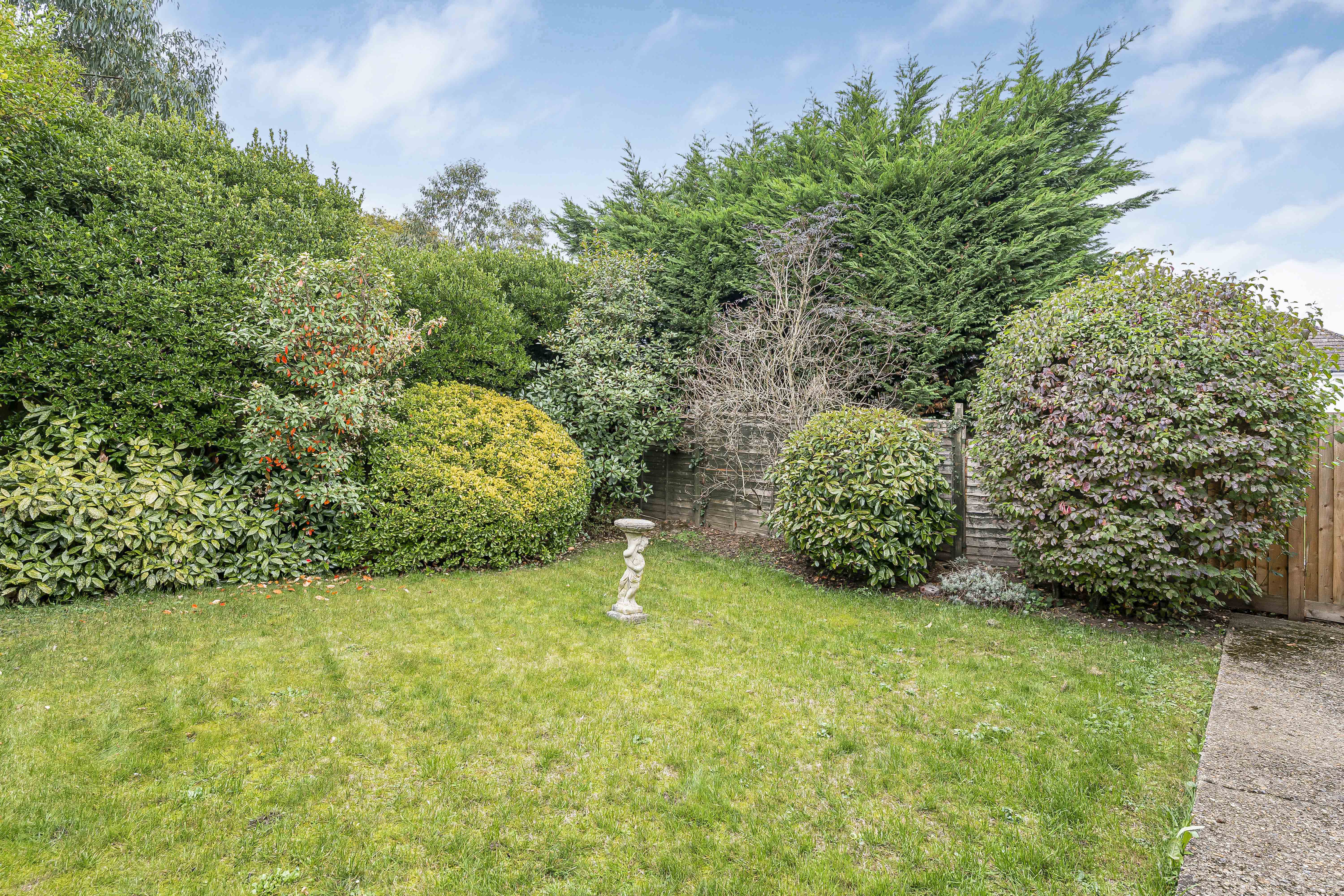 Outside, the south-facing garden is well stocked with mature shrubs and hedging providing an excellent level of privacy, and there is a paved seating area in which to enjoy the sun.