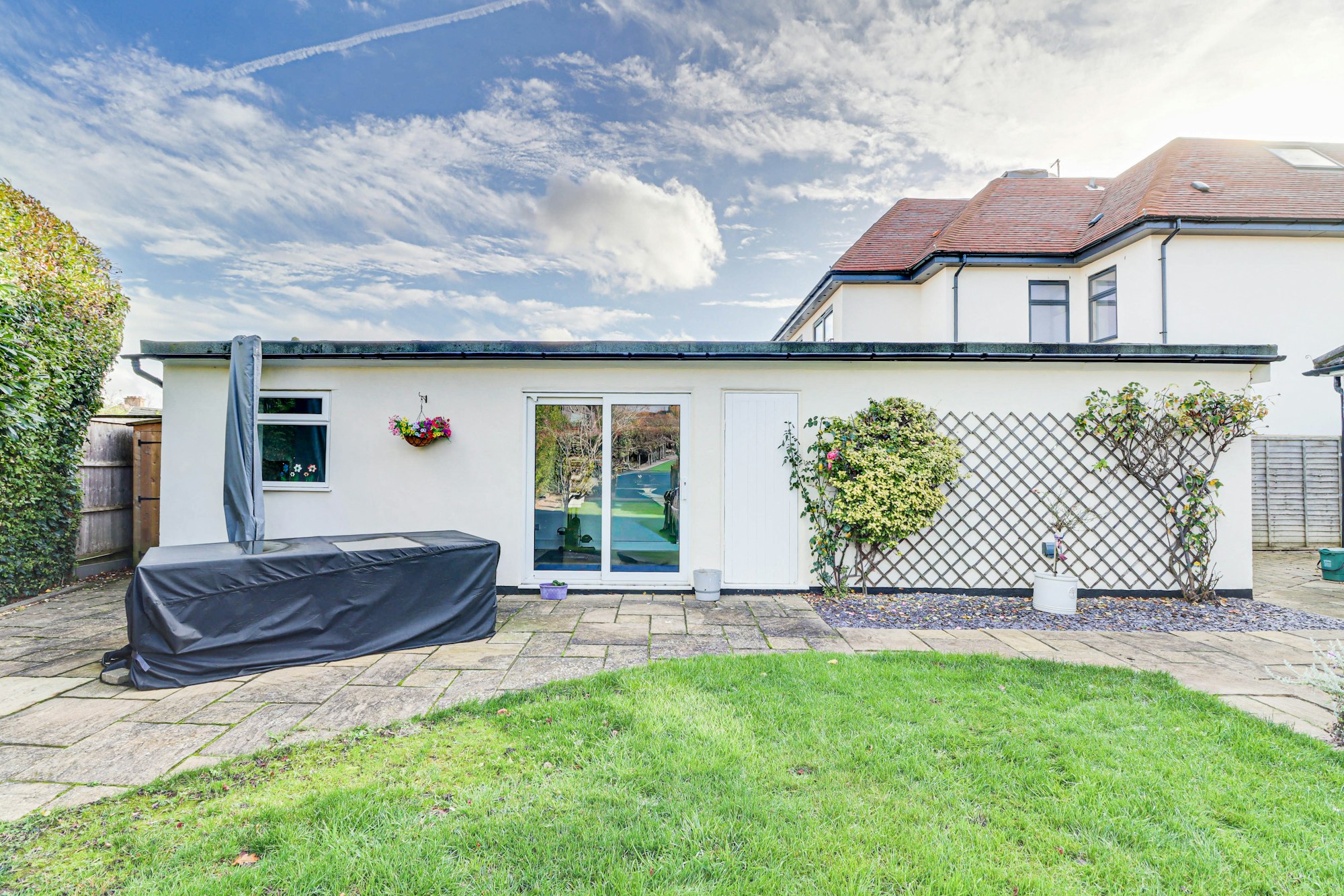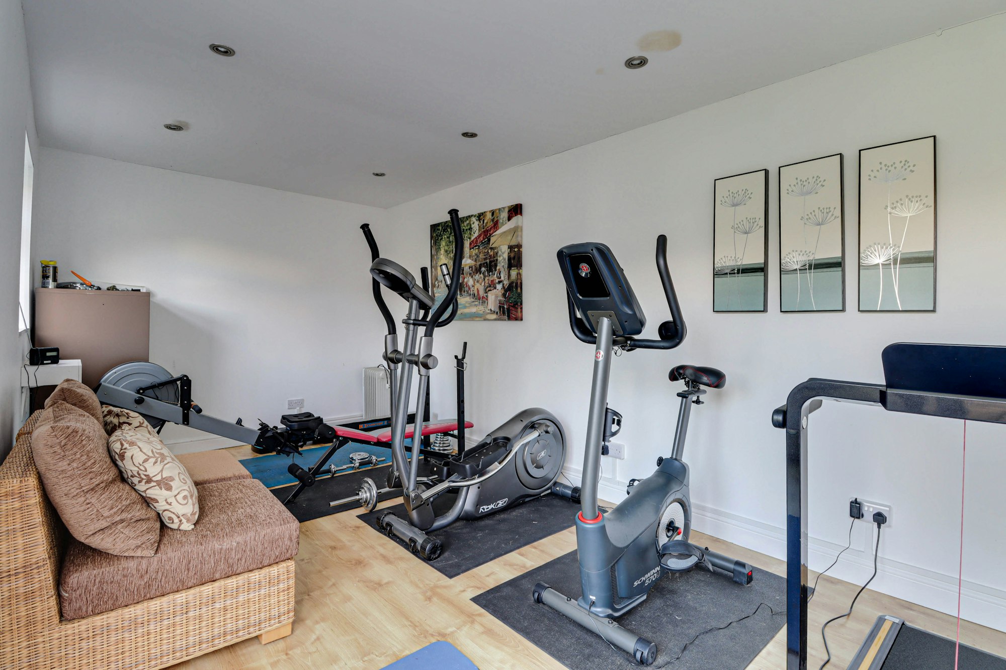 To the front of the property, a smart paved in-and-out driveway offers excellent kerb appeal as well as convenient parking. The rear garden is bordered by mature hedging, creating a wonderfully private and peaceful setting. A single garage, with a useful gym or office space to the rear, further enhances the versatility of this superb home.