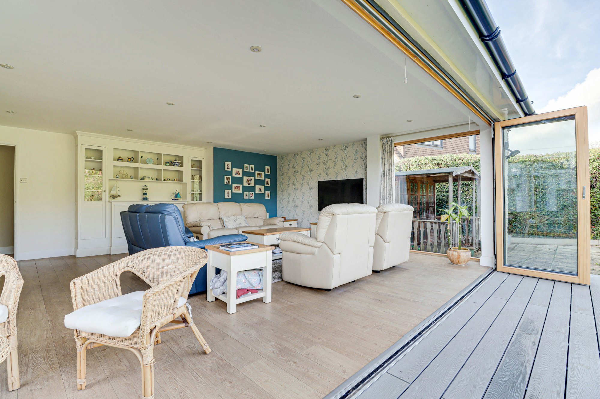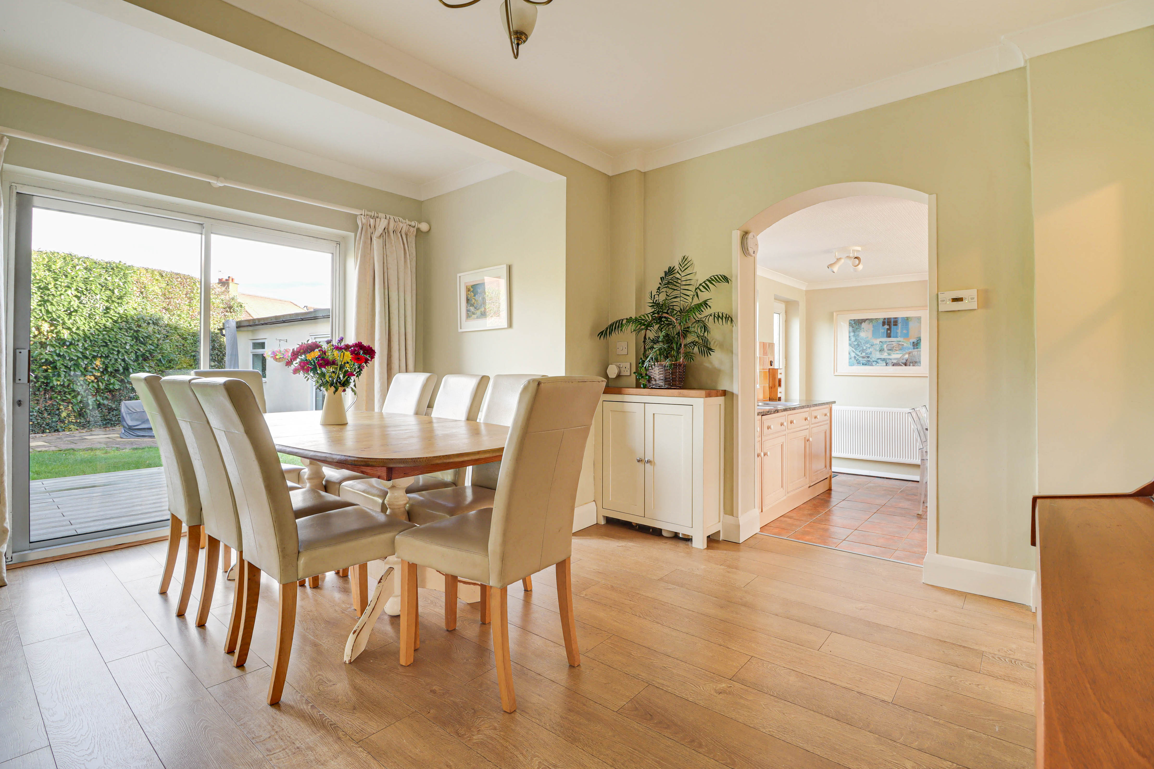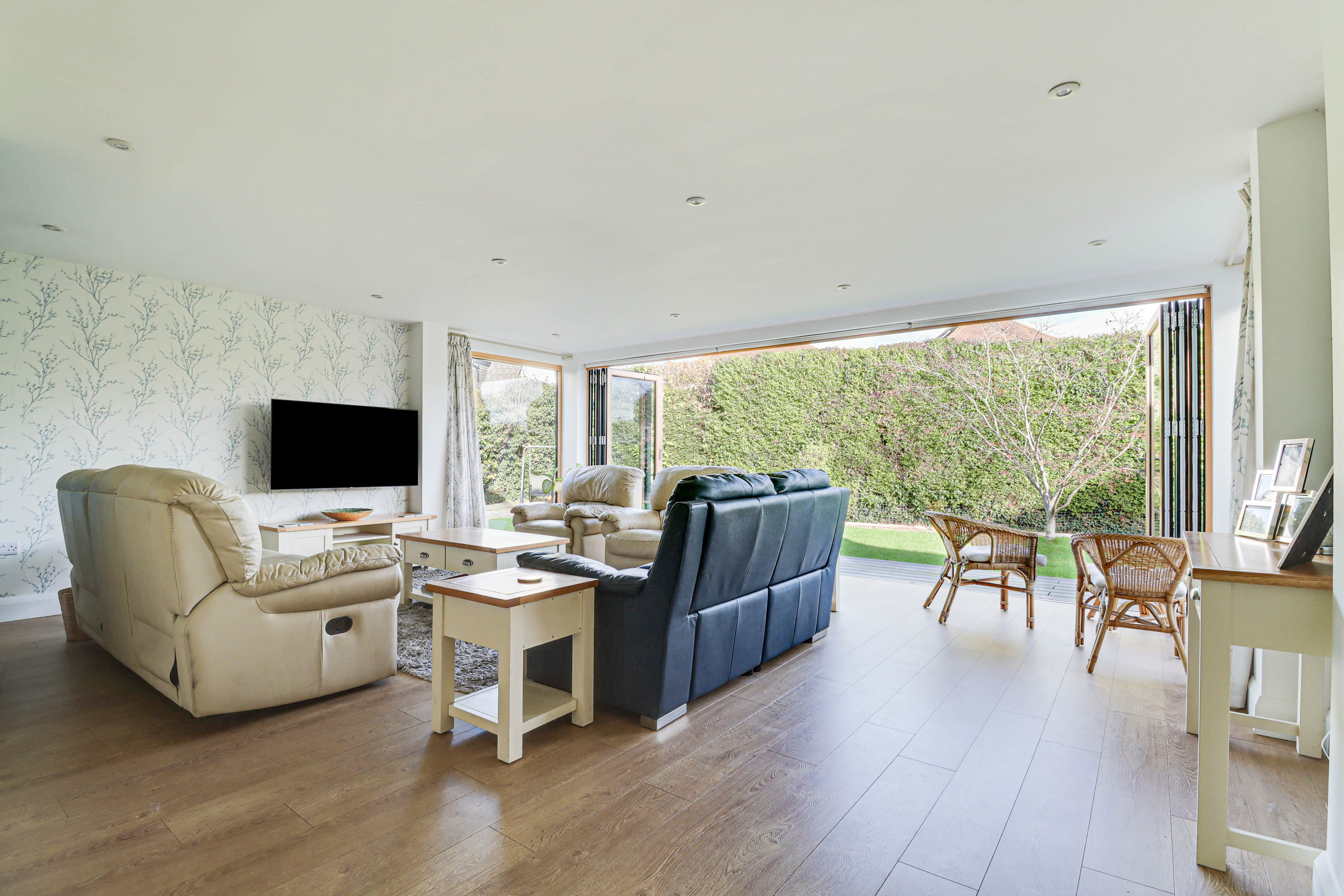 The ground floor features a generous living room, bathed in natural light and enhanced by striking bi-fold doors that open directly onto the rear garden - ideal for effortless indoor–outdoor entertaining. The kitchen/breakfast room, complete with elegant granite worksurfaces, enjoys views to both the front and rear, and flows seamlessly into the dining room, where sliding doors offer further access to the garden. A large family room with an attractive bay window provides an additional flexible space and is currently used as a home office. Two spacious double bedrooms, one with fitted wardrobes, are also located on the ground floor, alongside a well-appointed bathroom and a separate shower room.