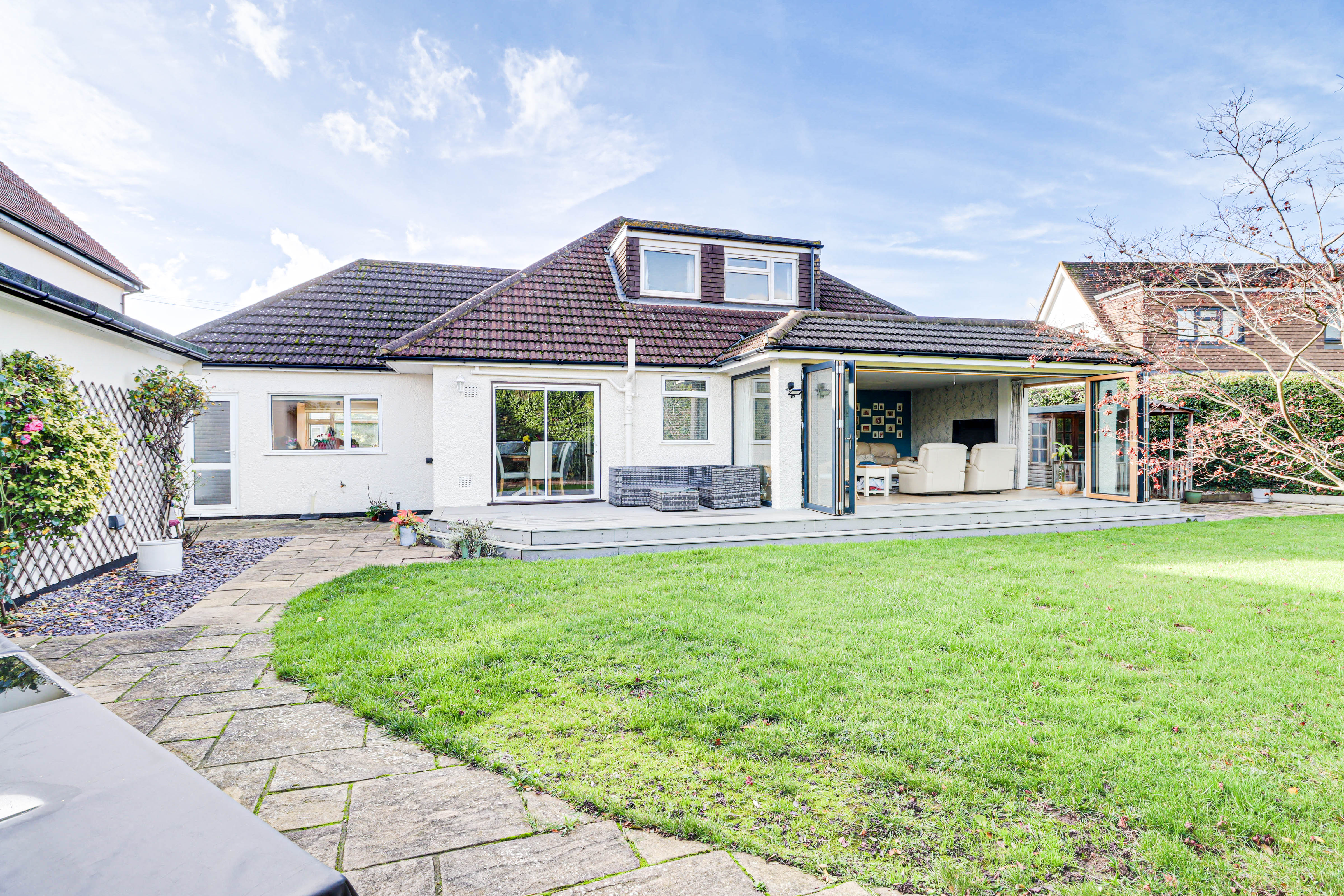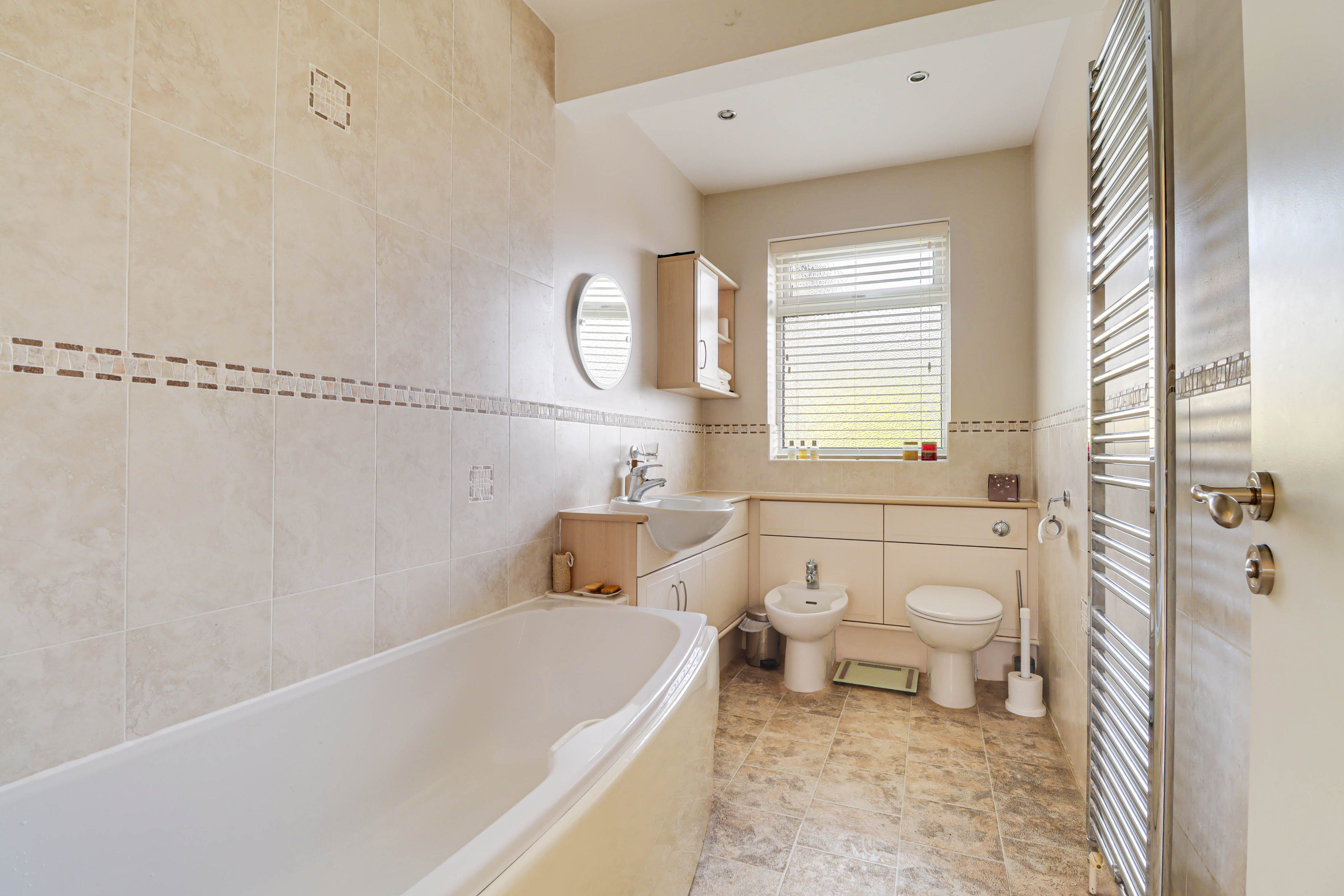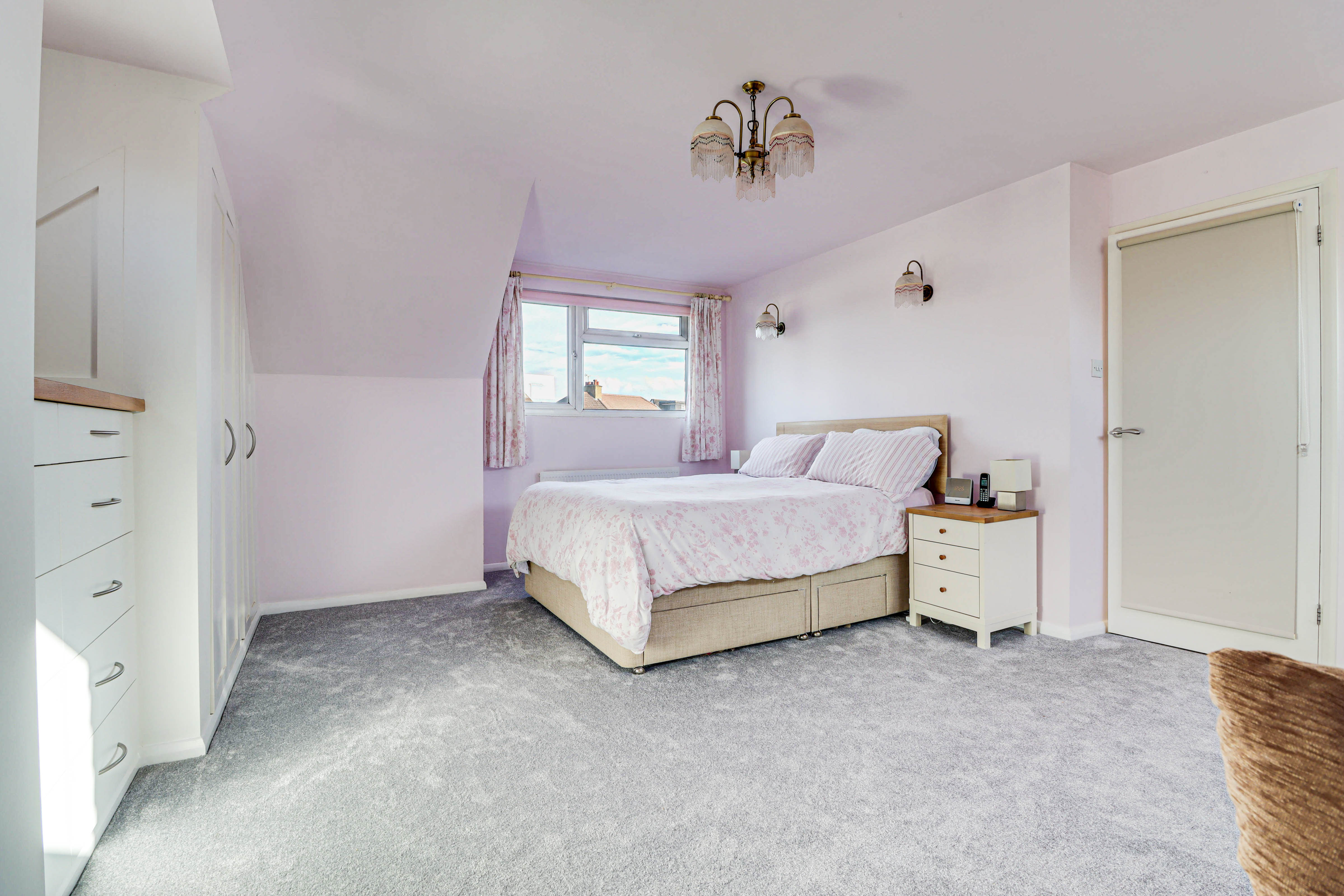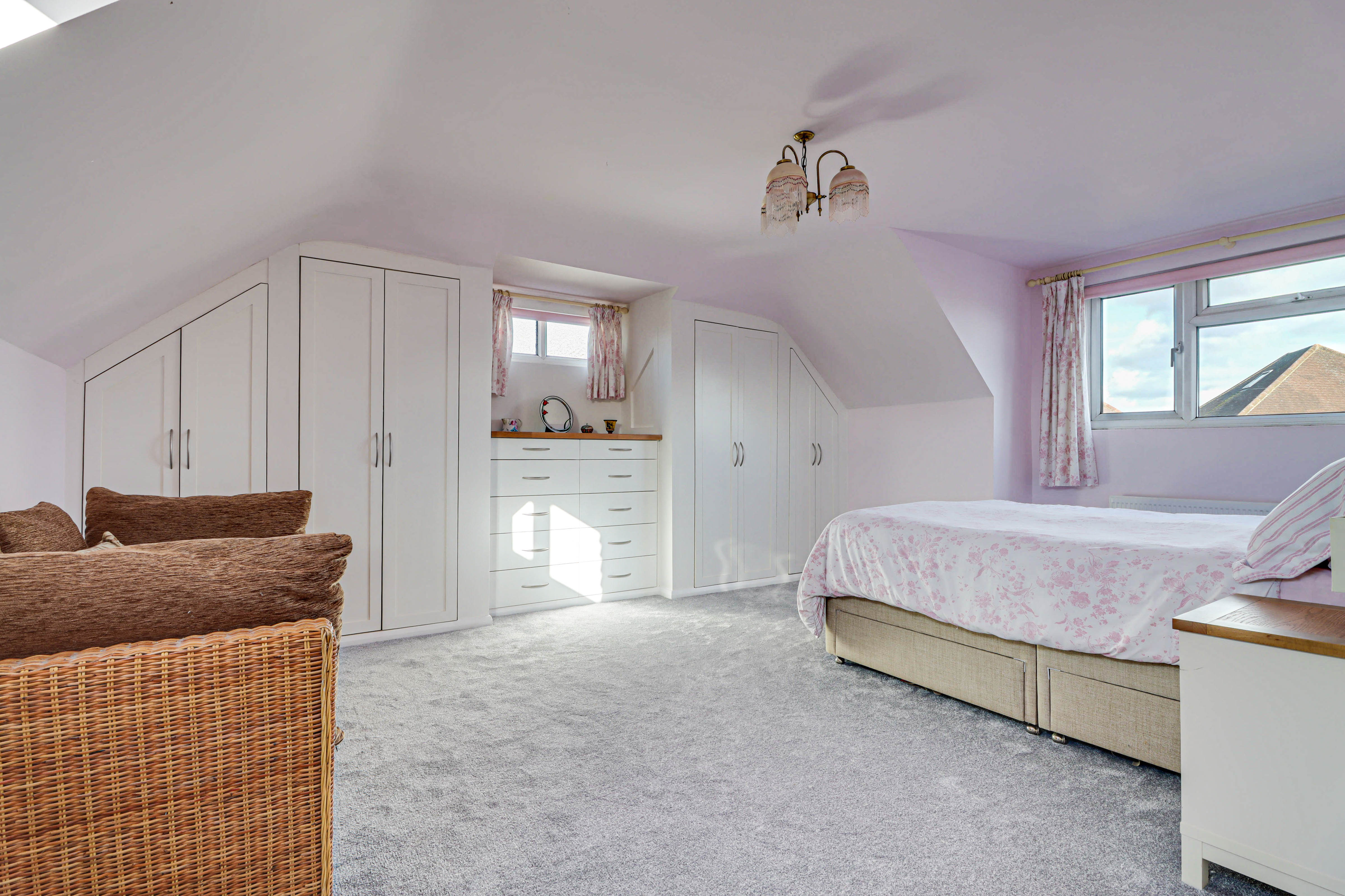 The ground floor features a generous living room, bathed in natural light and enhanced by striking bi-fold doors that open directly onto the rear garden - ideal for effortless indoor–outdoor entertaining. The kitchen/breakfast room, complete with elegant granite worksurfaces, enjoys views to both the front and rear, and flows seamlessly into the dining room, where sliding doors offer further access to the garden. A large family room with an attractive bay window provides an additional flexible space and is currently used as a home office. Two spacious double bedrooms, one with fitted wardrobes, are also located on the ground floor, alongside a well-appointed bathroom and a separate shower room.